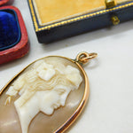 Georgian 9ct Rose Gold Carved Shell Female Classical Cameo Pendant Antique c1800