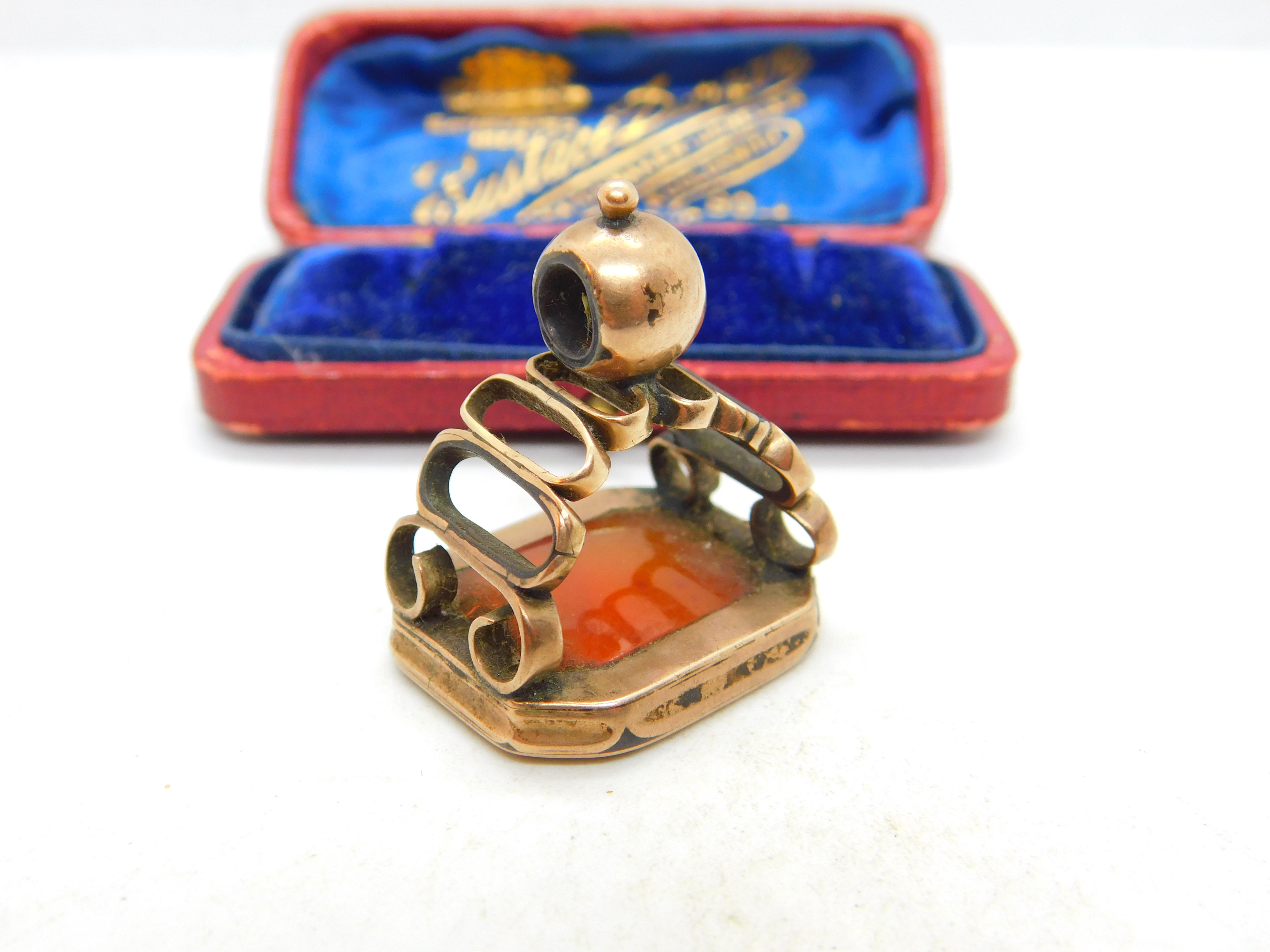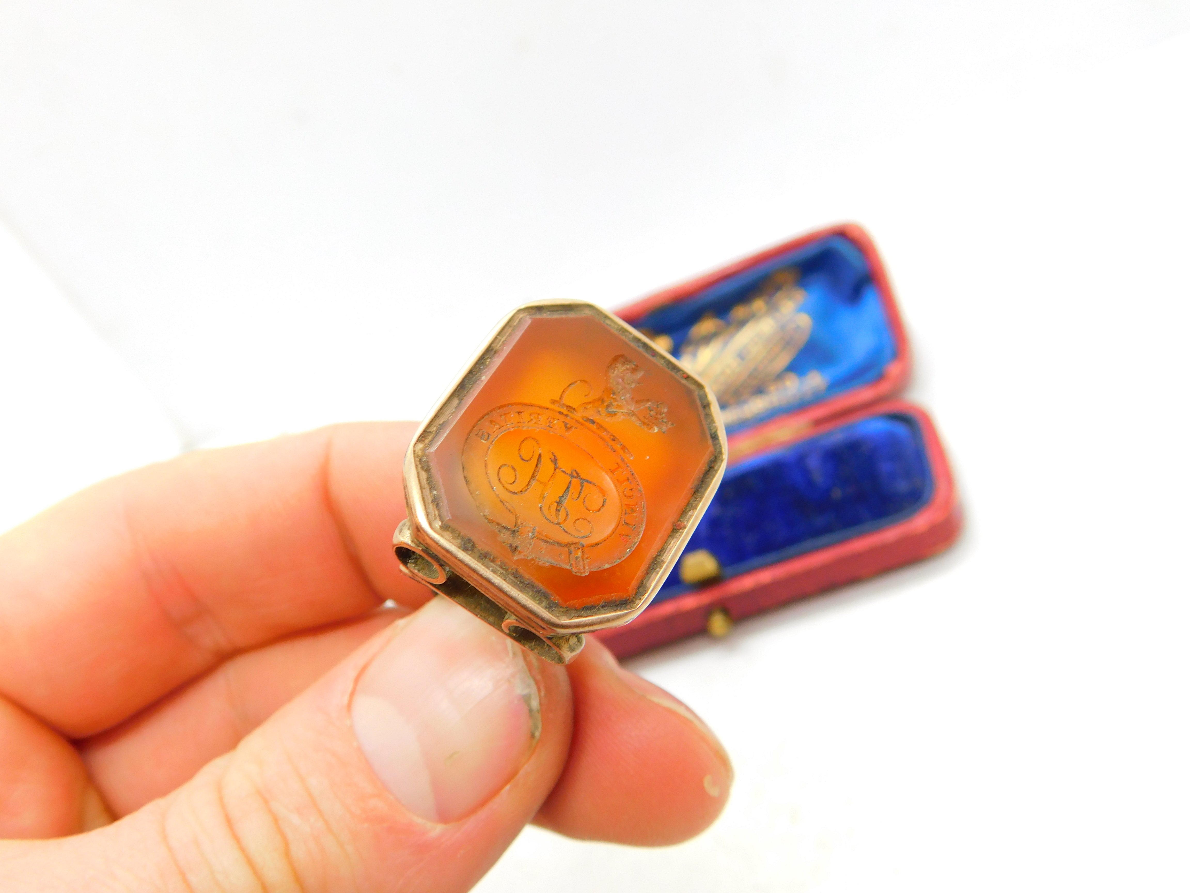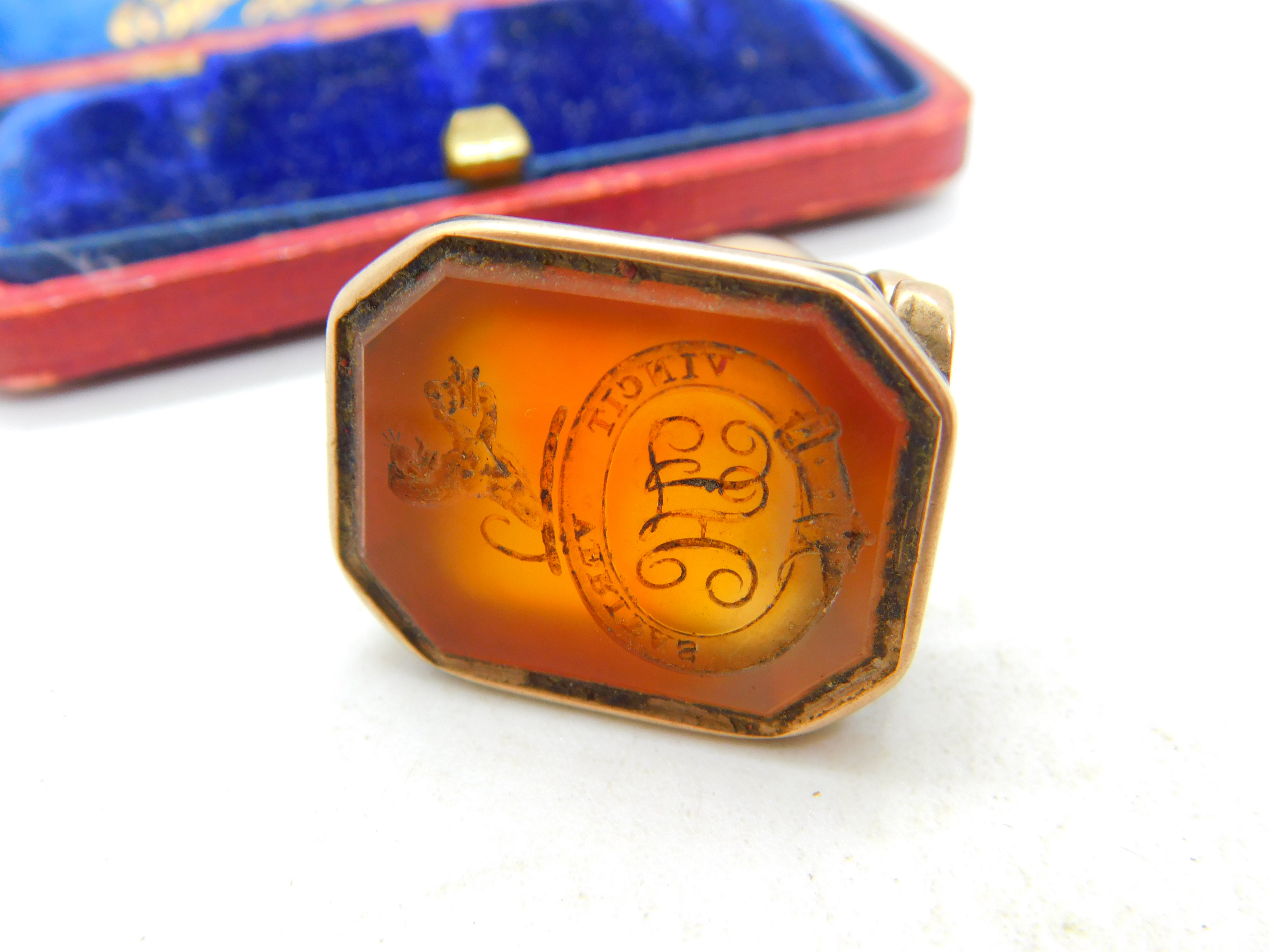 Georgian Pinchbeck Gold & Carnelian 'Vincit Veritas' Heraldic Fob Seal Antique