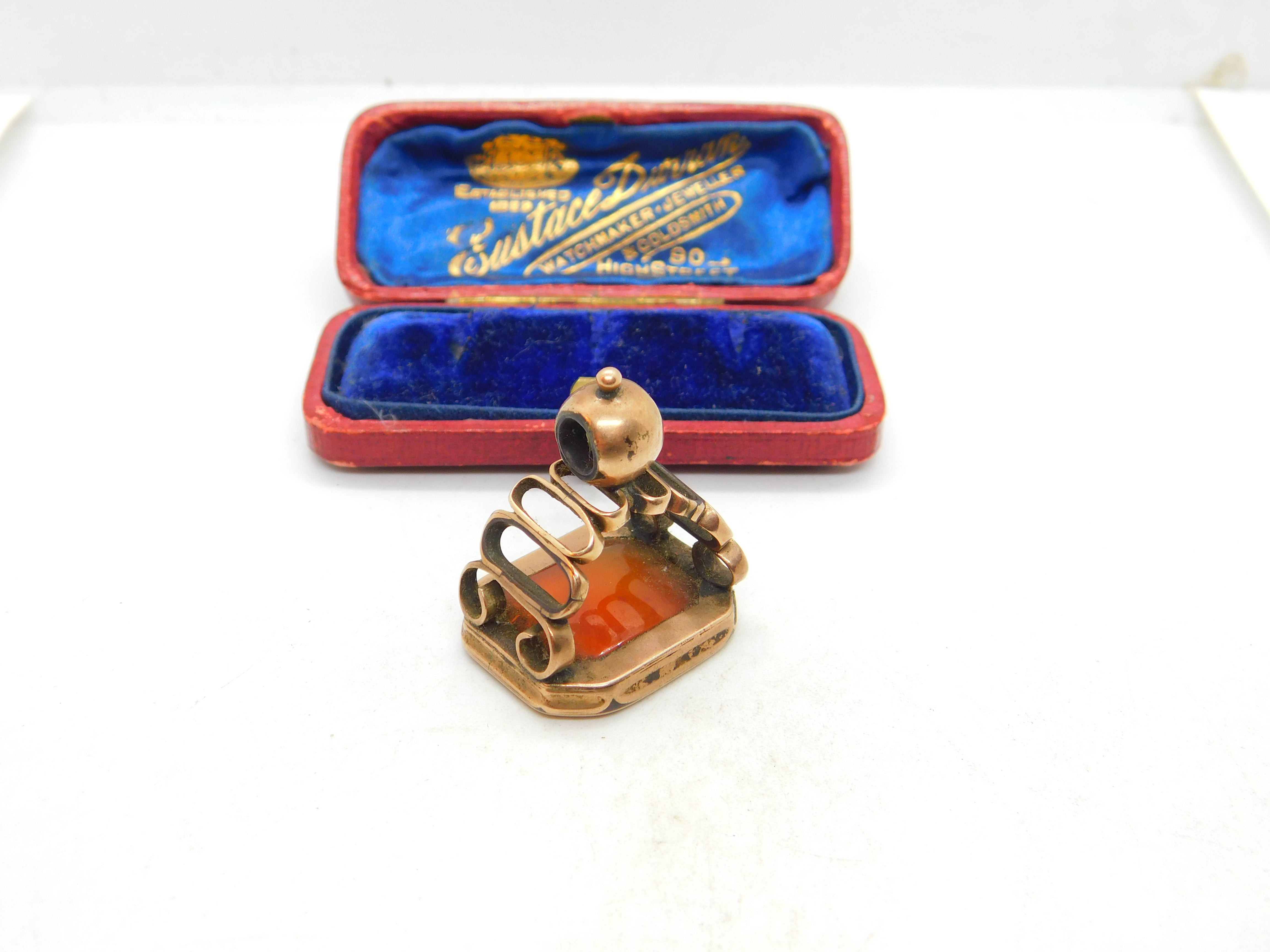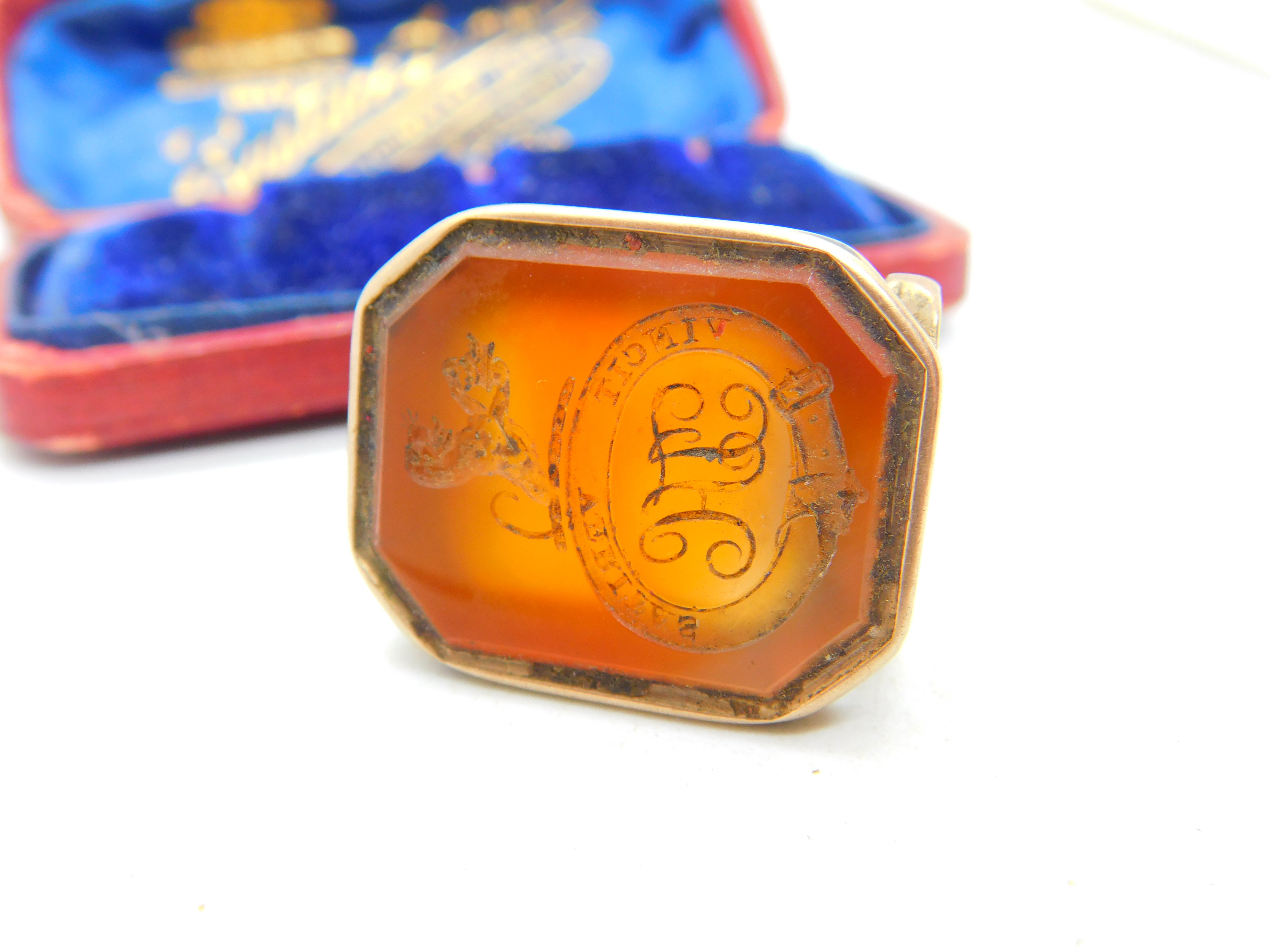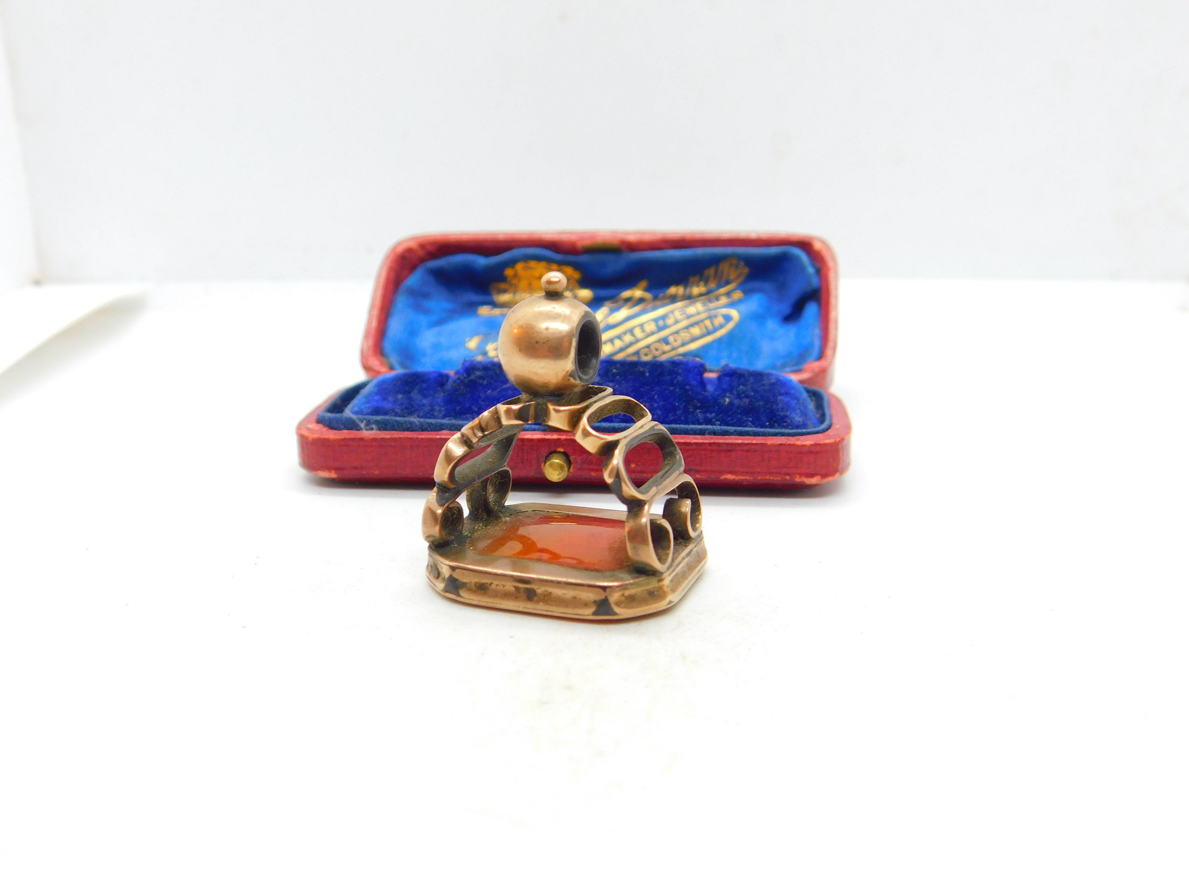 Georgian Pinchbeck Gold & Carnelian 'Vincit Veritas' Heraldic Fob Seal Antique