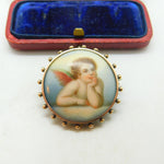 Georgian Sterling Silver Painted Porcelain Raphael's Cherub Brooch Antique c1820