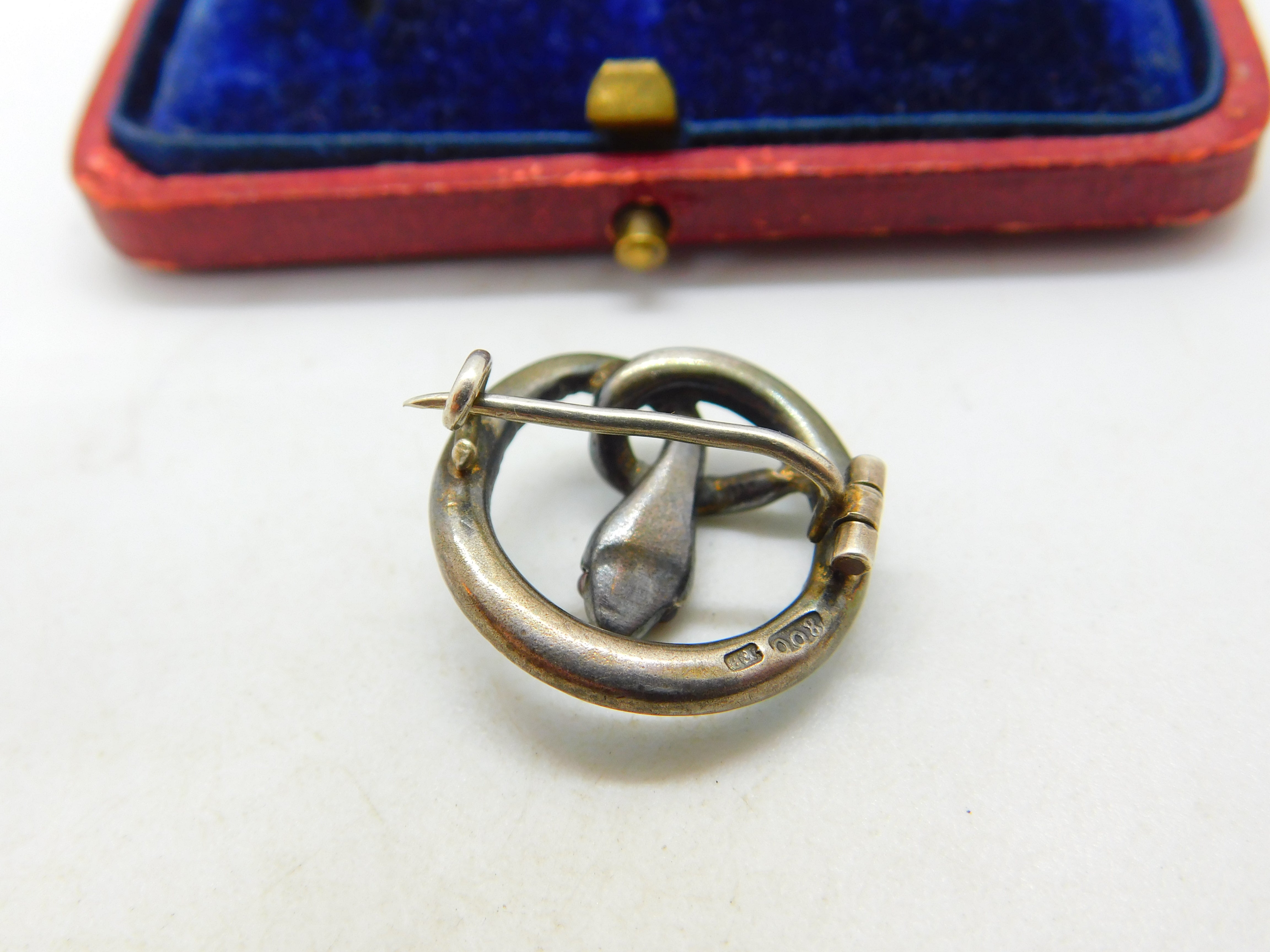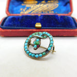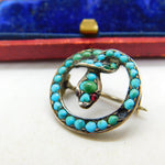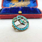 German .800 Silver & Pave Set Turquoise Coiled Snake Brooch Antique c1920 Deco