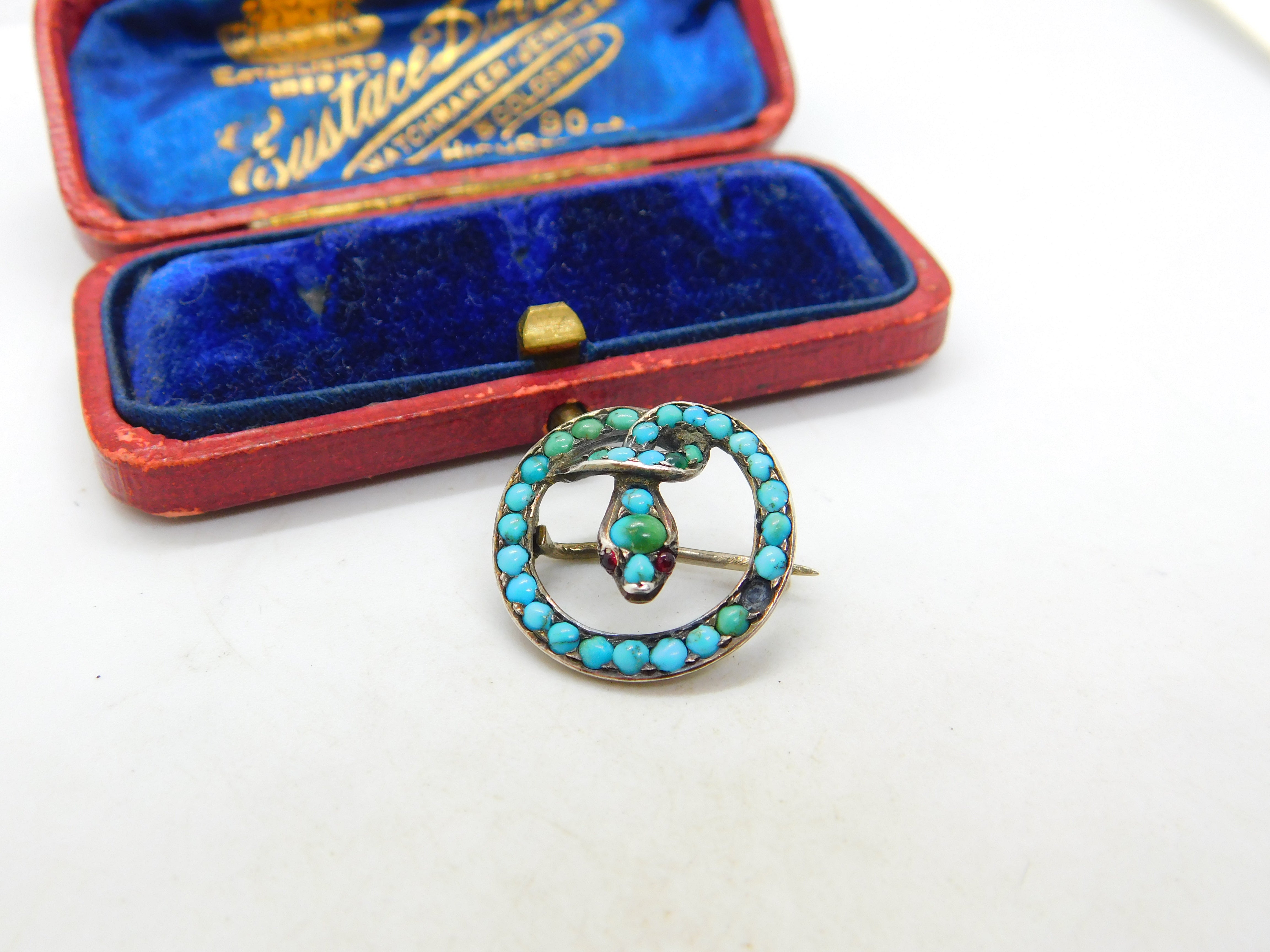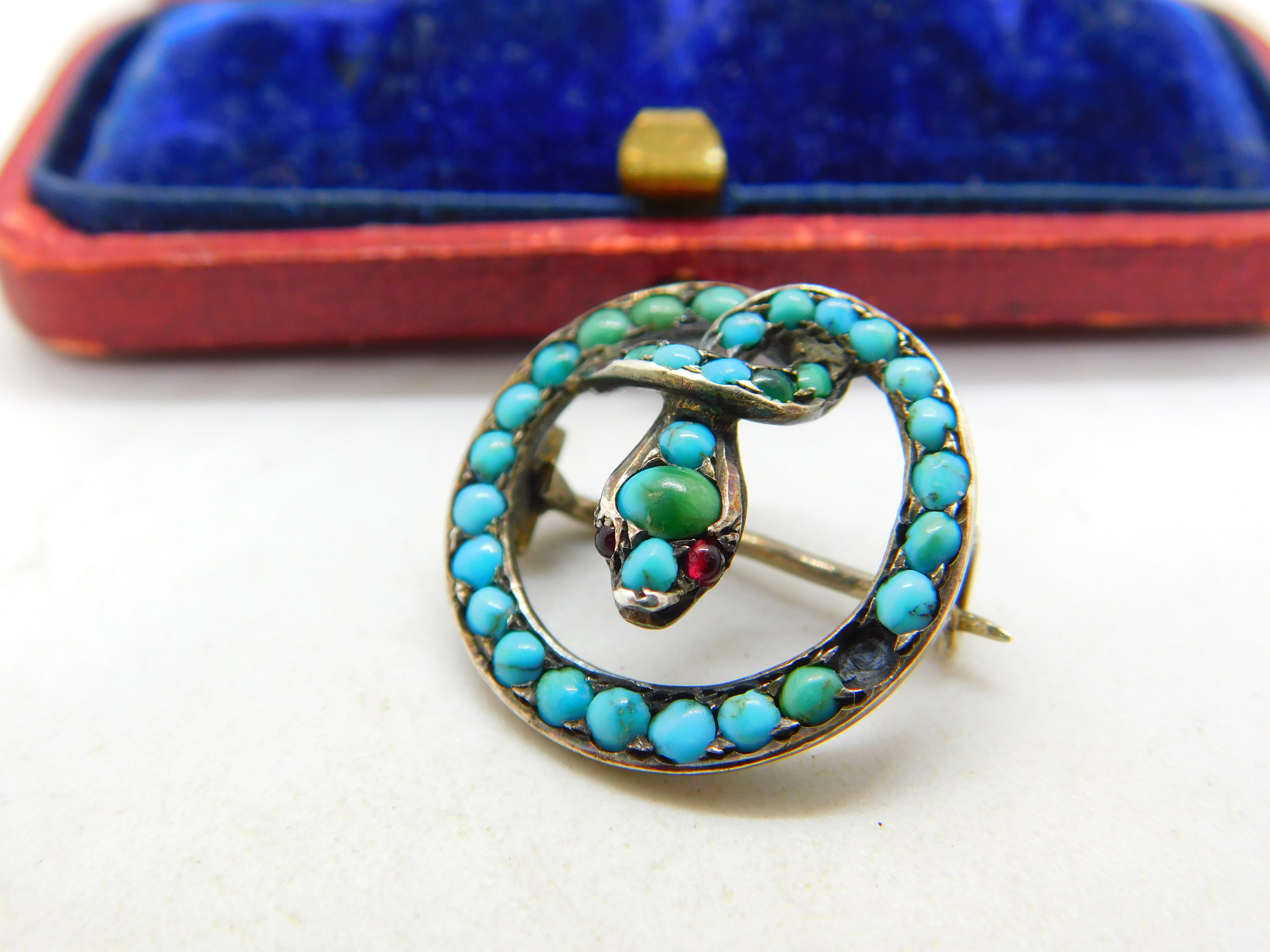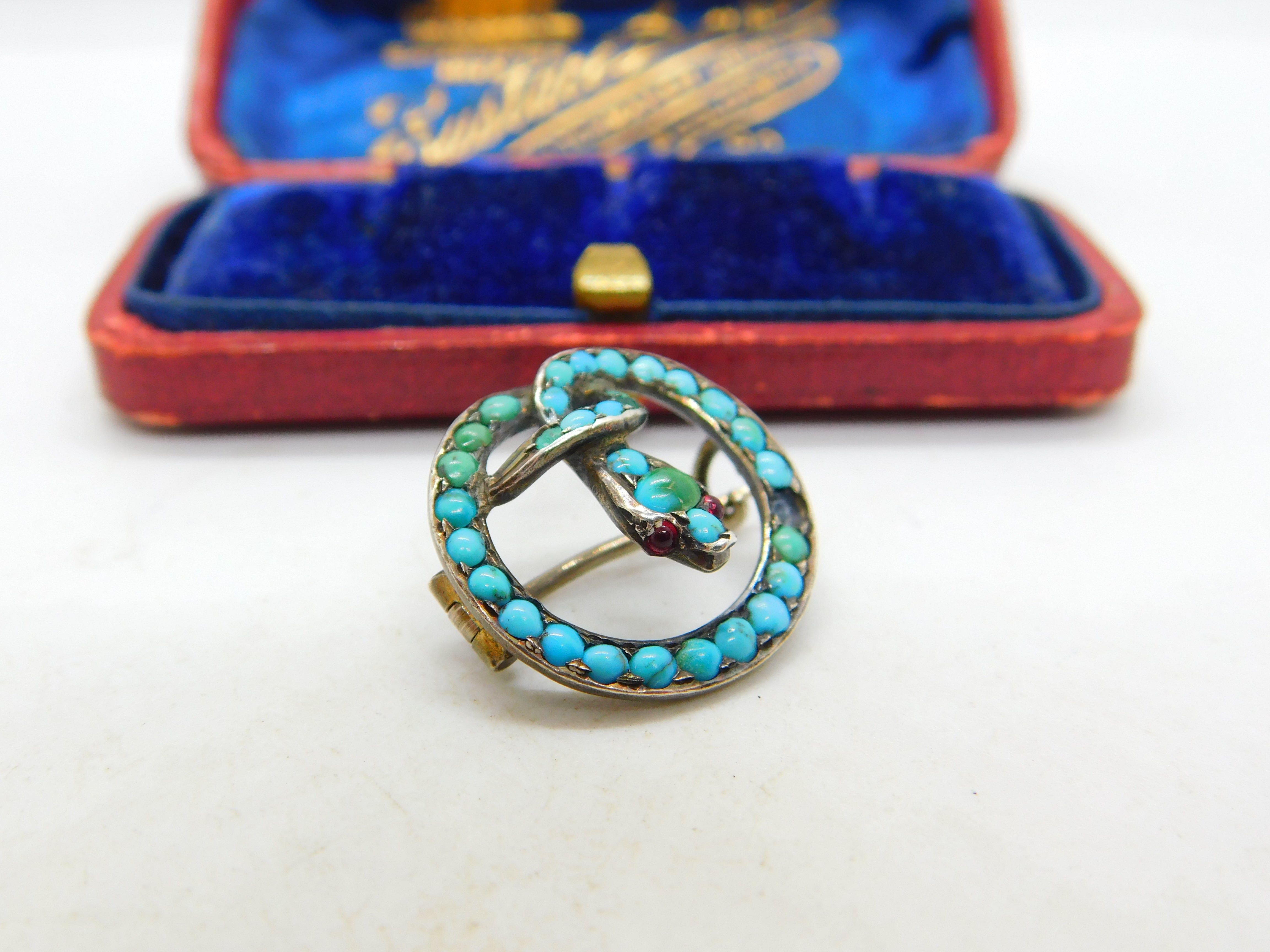 Details: A fantastic and wonderfully designed antique art deco German 800 grade silver brooch in the form of a coiled snake adorned with pave set turquoise stones and garnets to the eyes hallmarked 800 by prestigious makers Franz Bibus to the reverse - one turquoise stone missing please note. This is a wonderful item that would make a perfect gift or addition to any collection. The BOX pictured is for PRESENTATION ONLY and is NOT included in the listings but used to frame the pictures unless specifically stated otherwise.