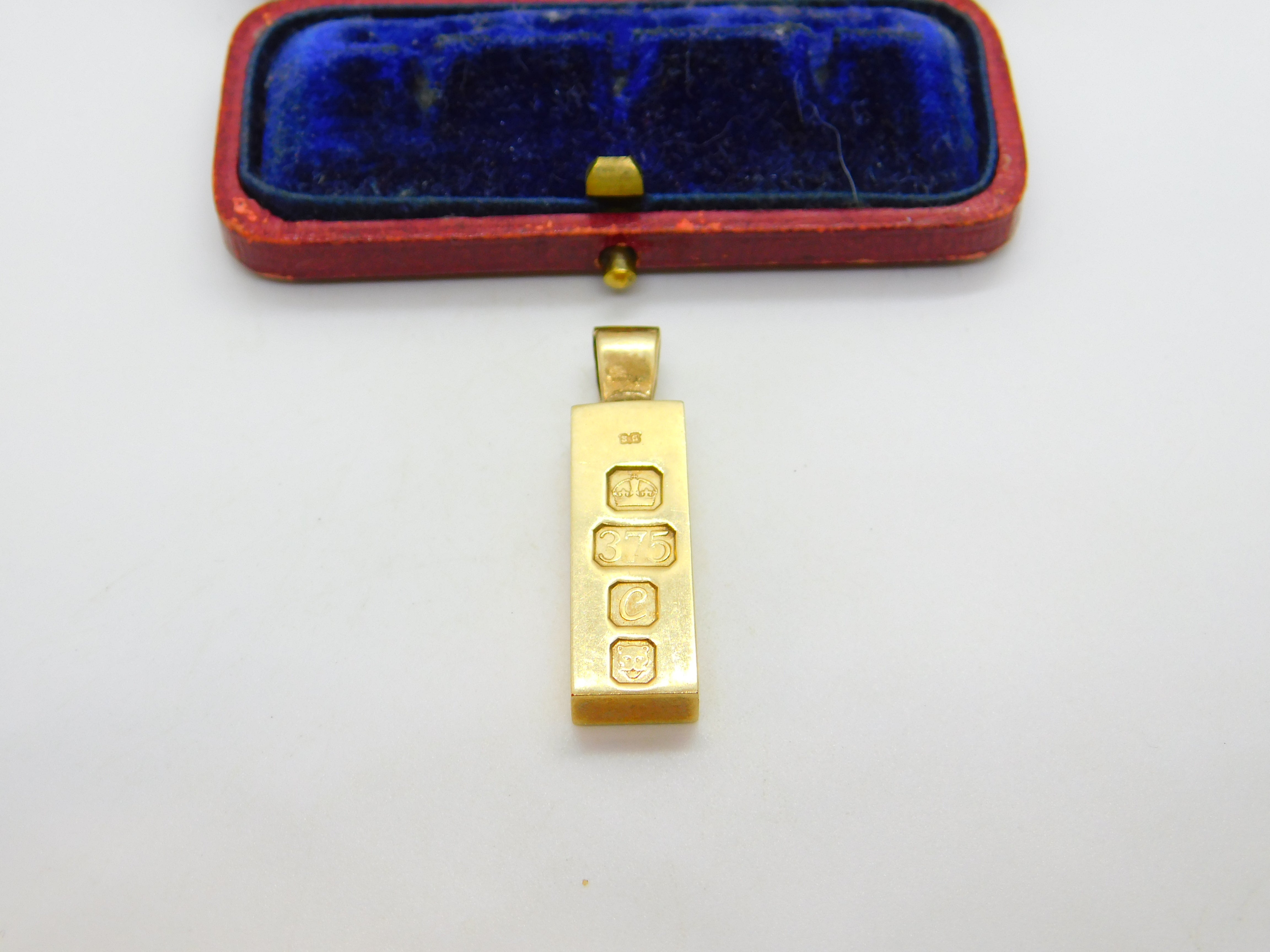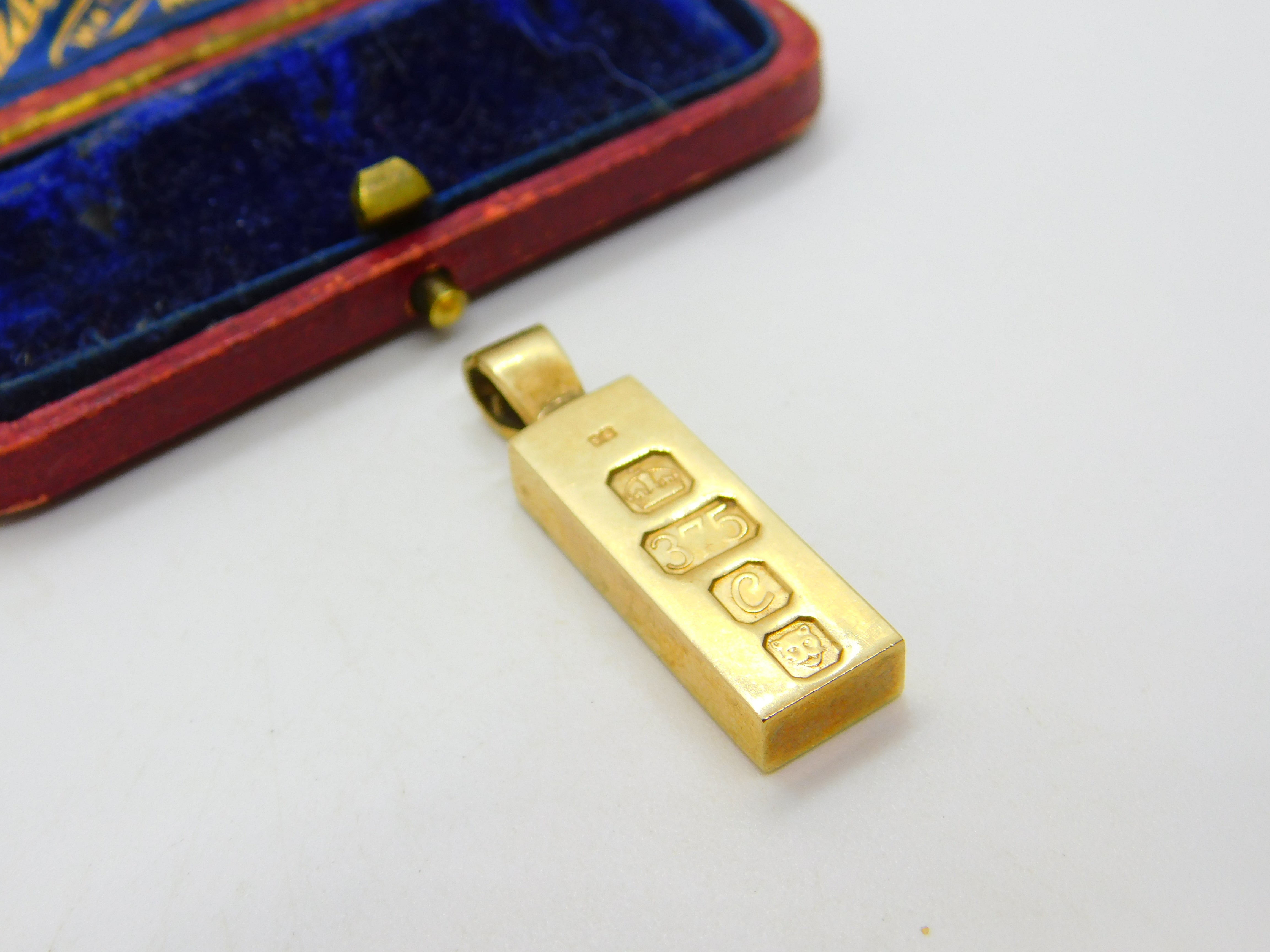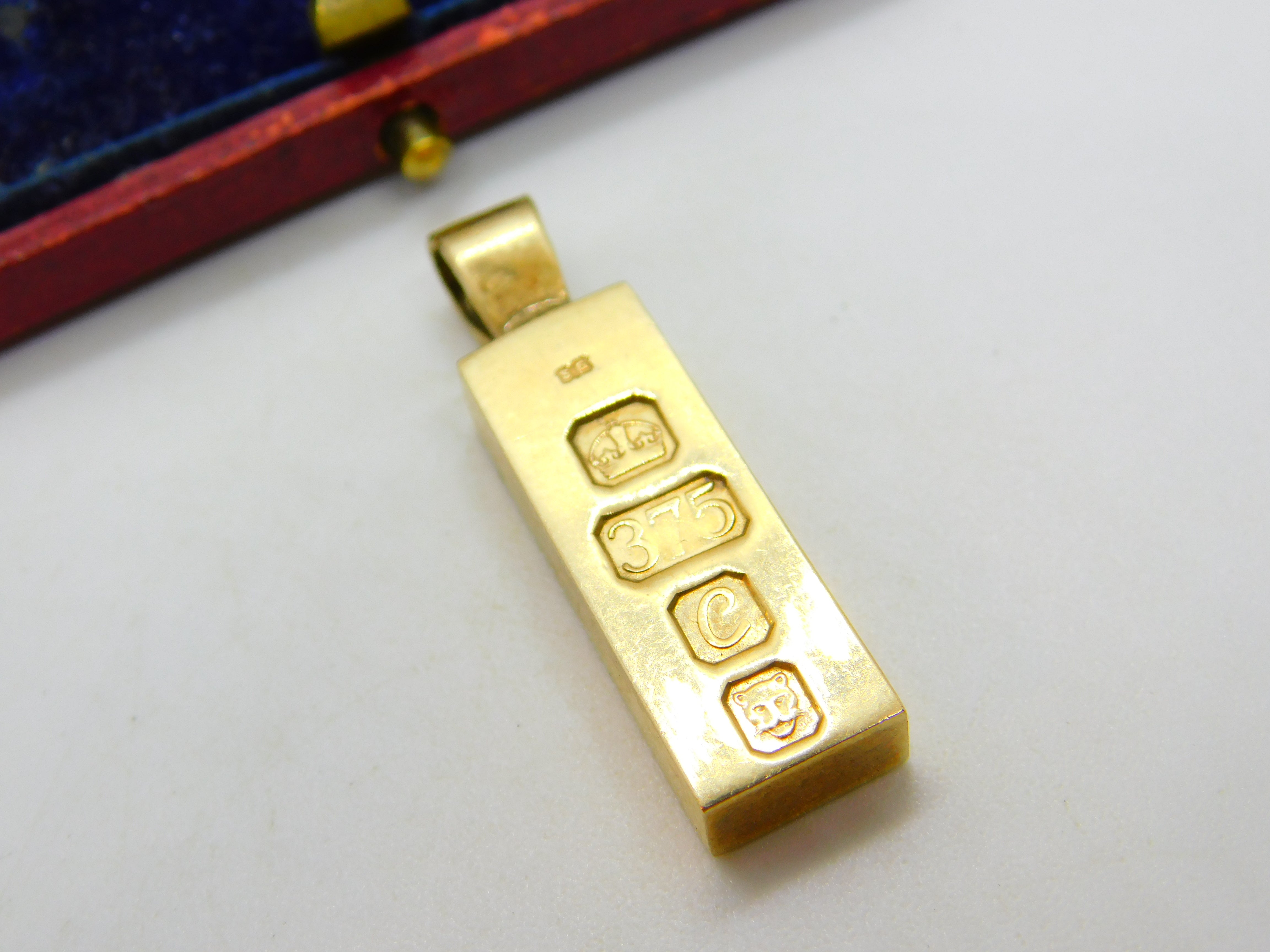 Heavy 1977 9ct Yellow Gold Bullion Bar Ingot Pendant Charm Vintage London