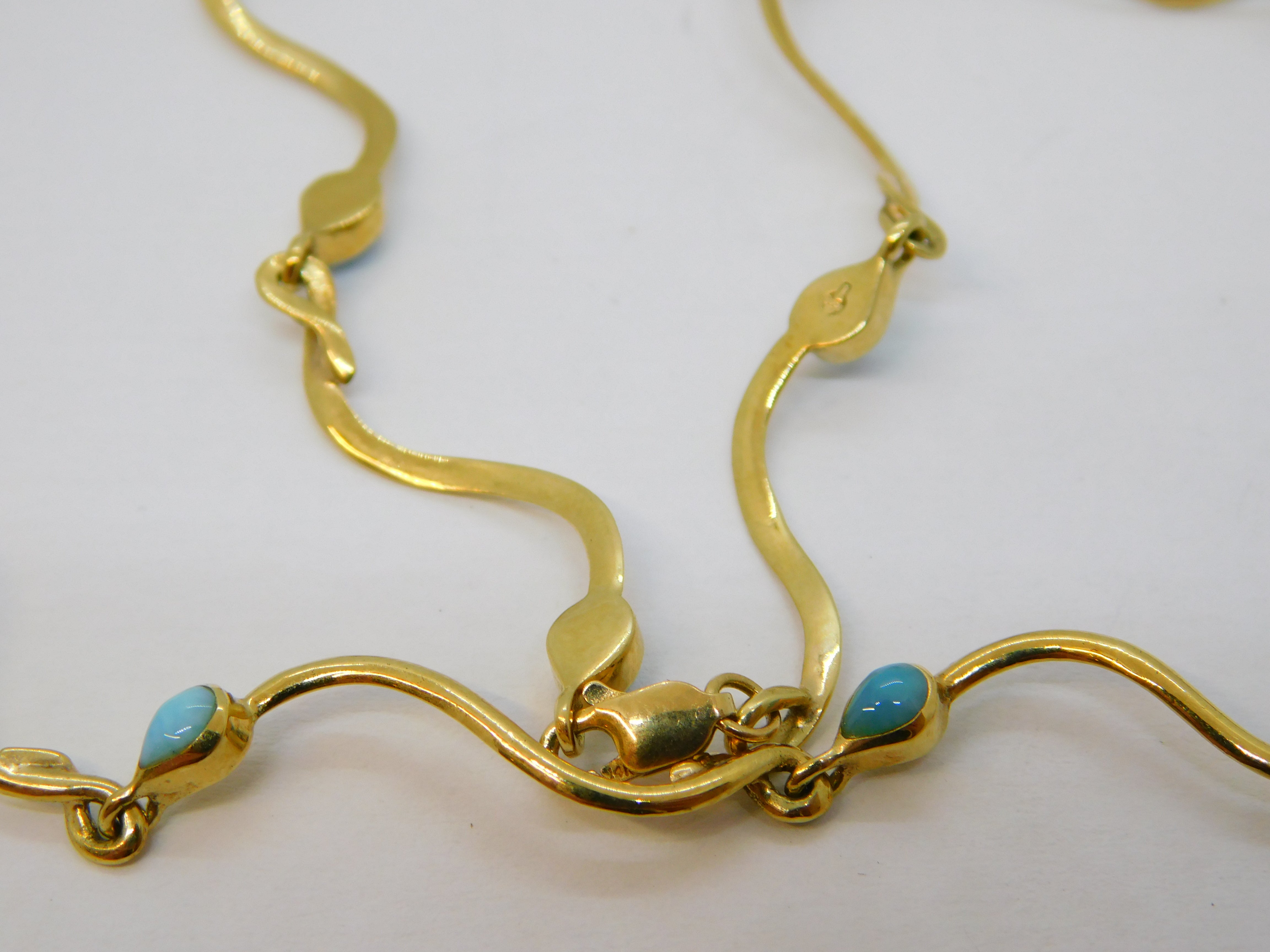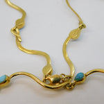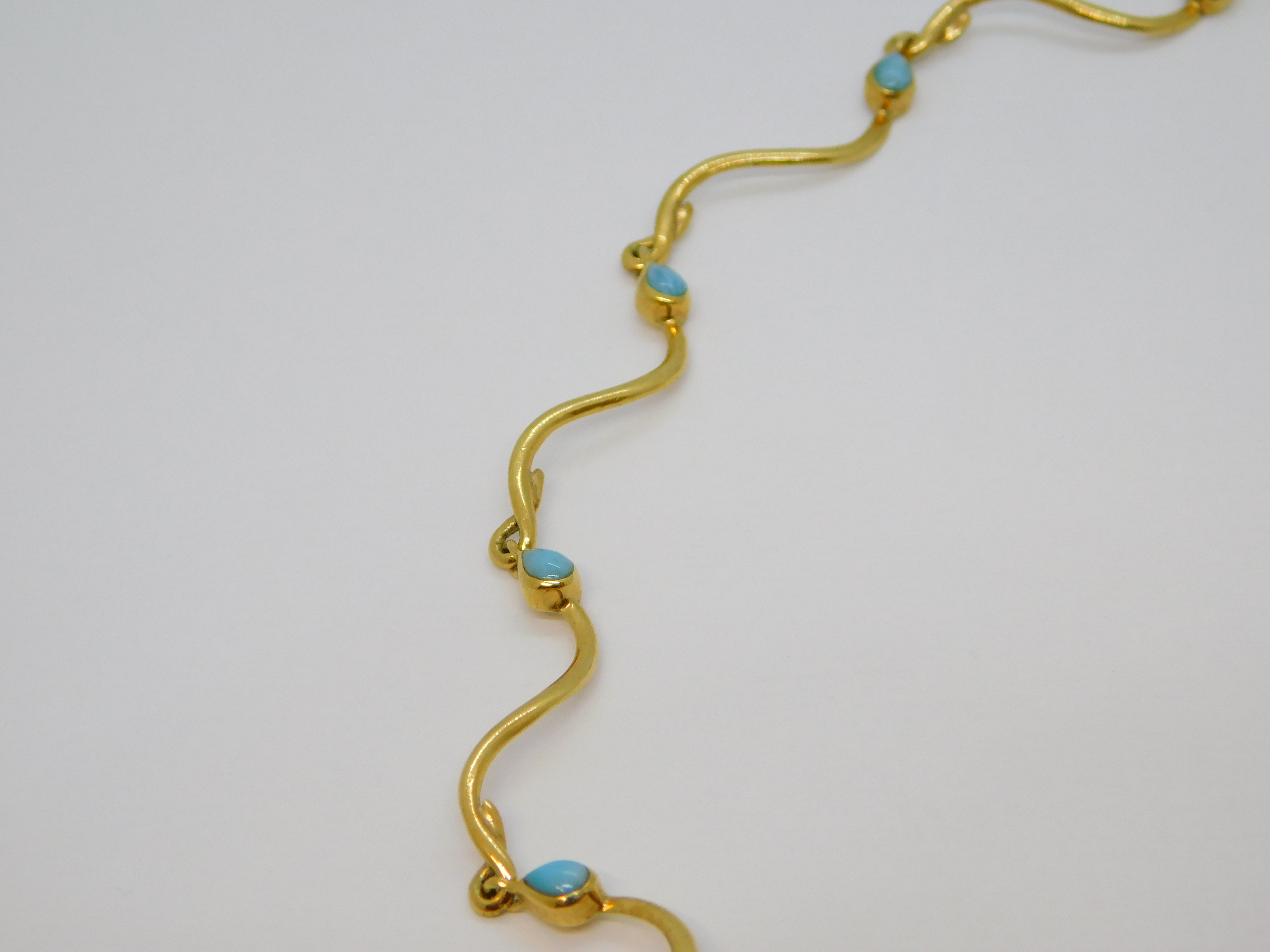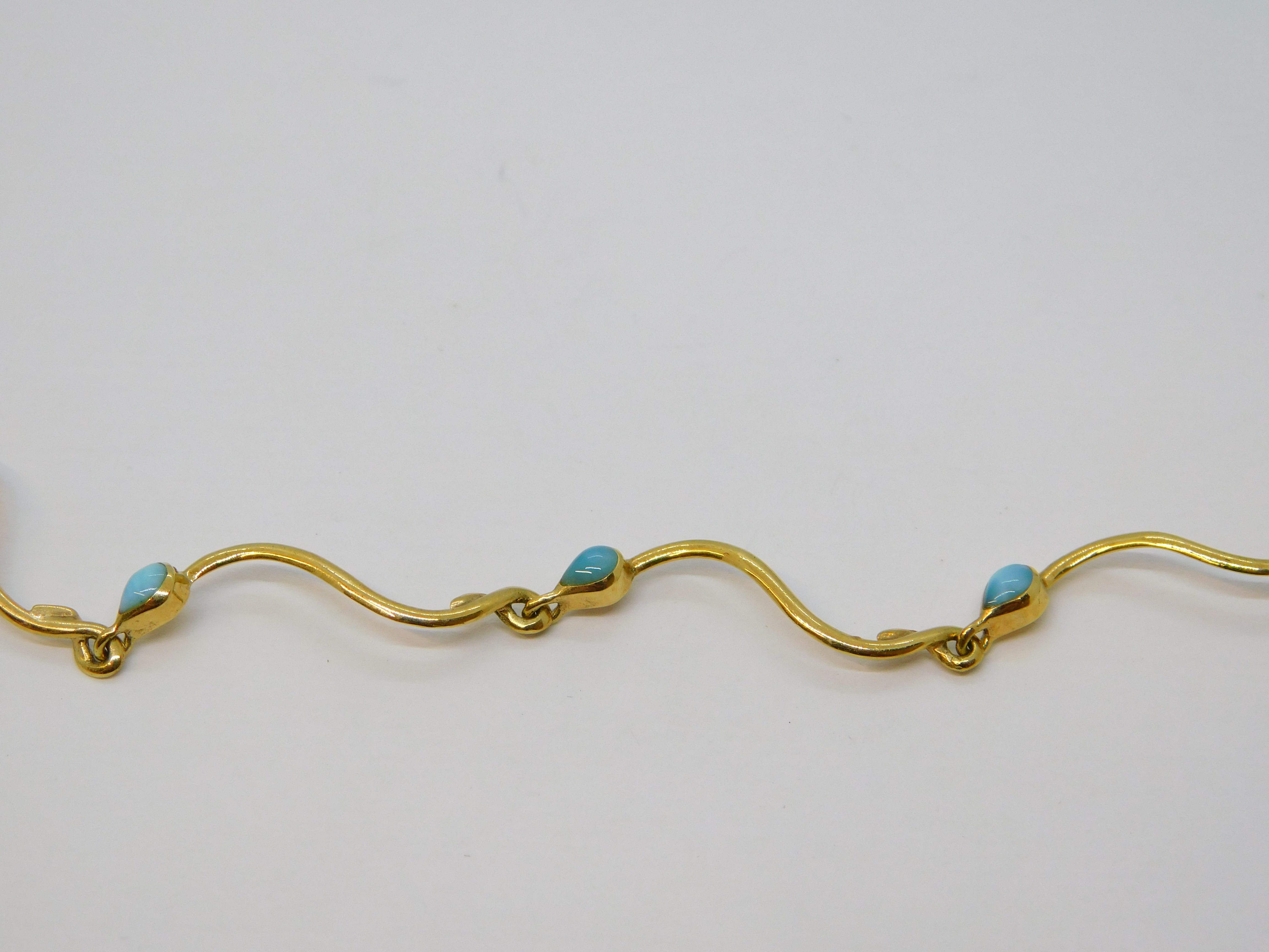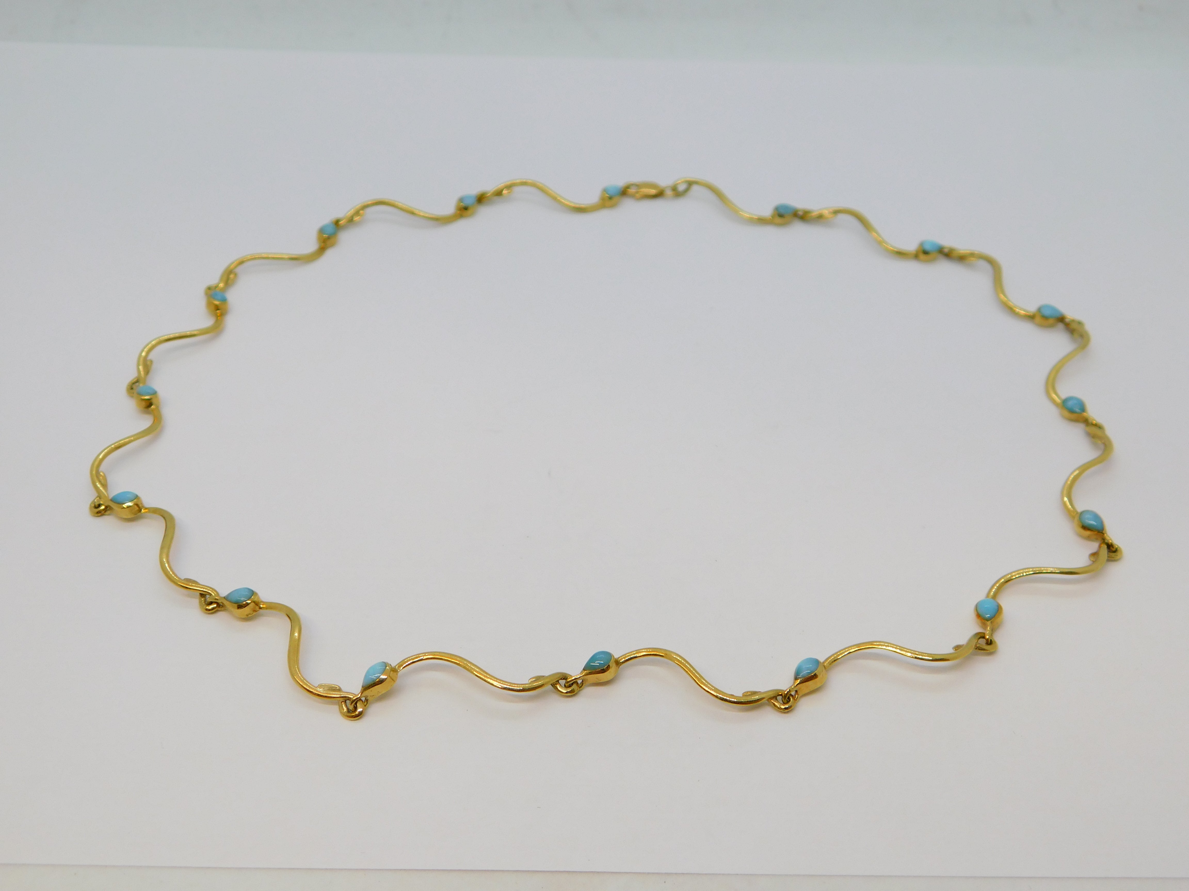 Italian 14ct Yellow Gold & Turquoise Wave Pattern Necklace Vintage c1970