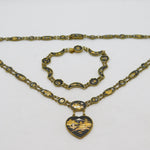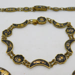 Japanese 24k Gold Shakudo Inlay Gilt Metal Necklace Bracelet Suite Antique c1930