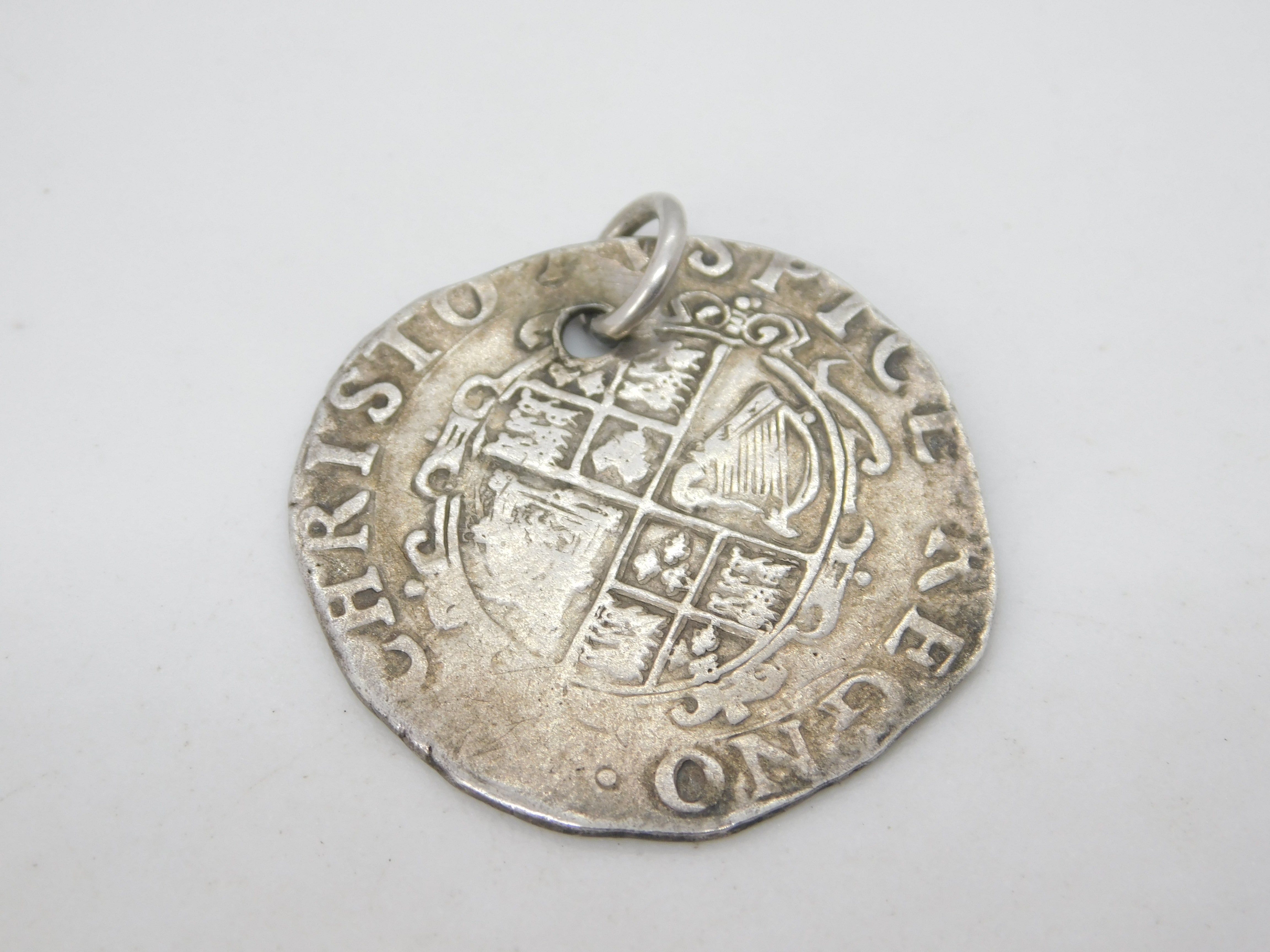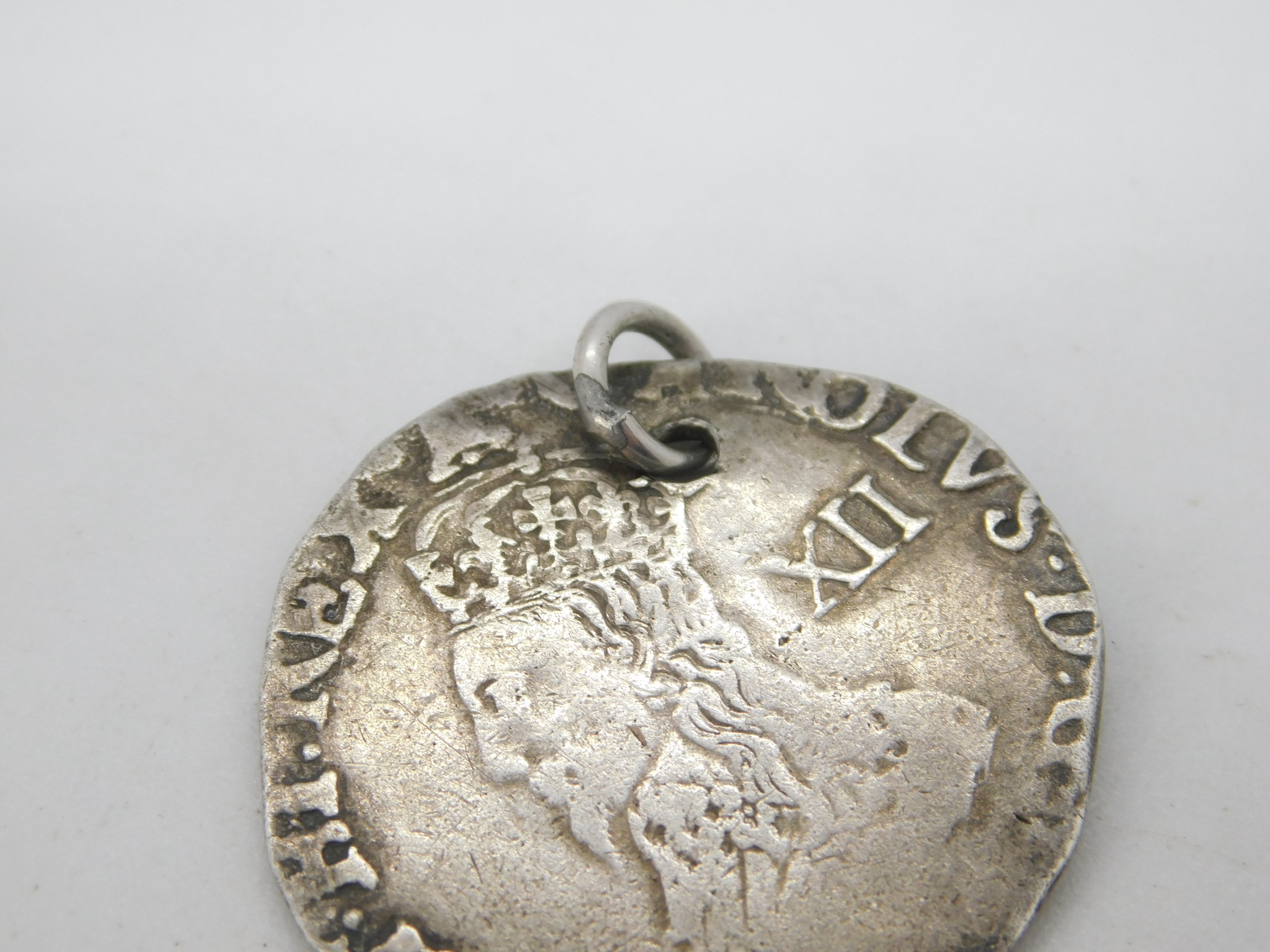 King Charles I .925 Silver York Mint Shilling Coin Fob Pendant Antique 1643-44