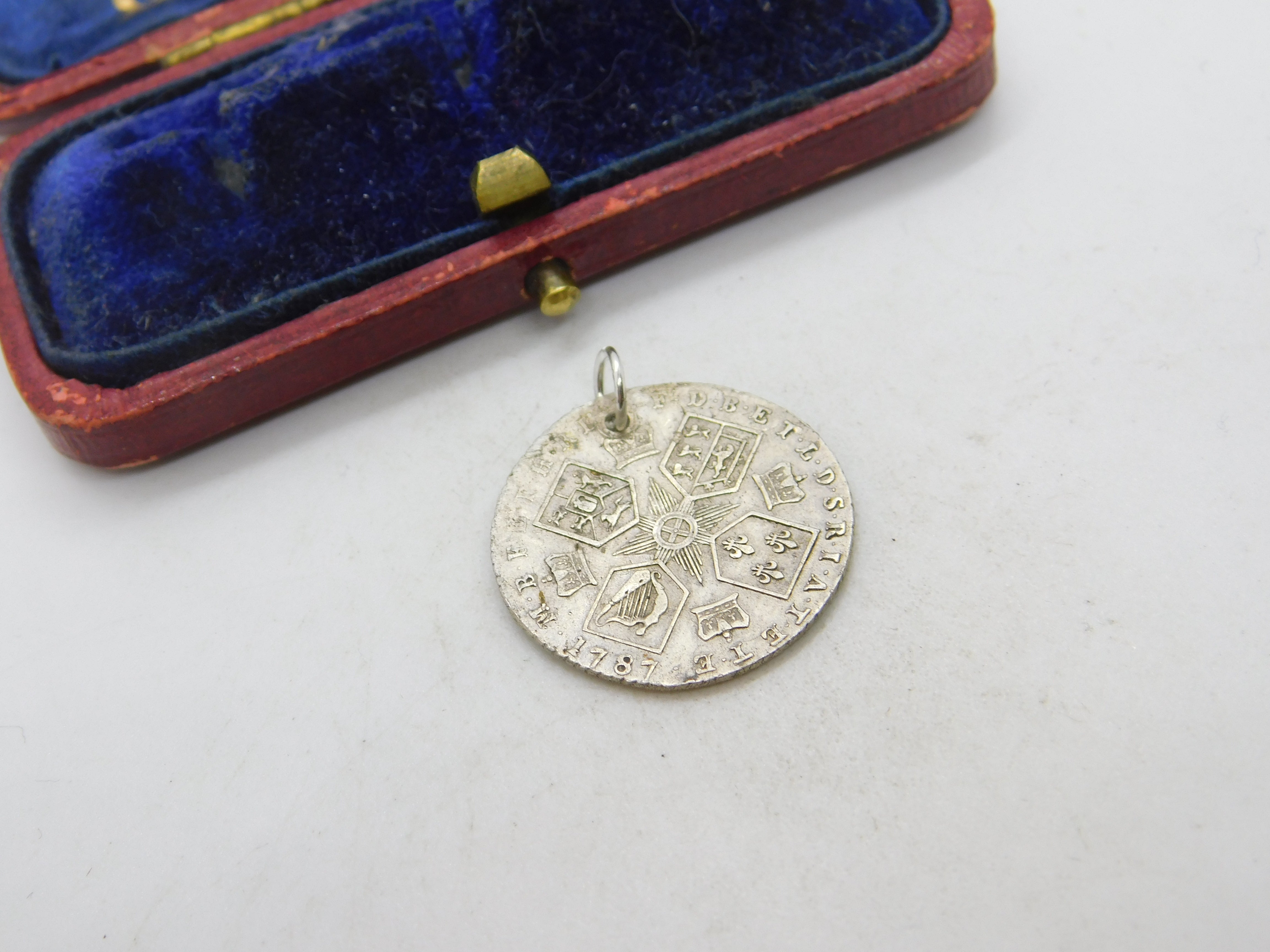 King George III Silver Sixpence Coin Charm or Pendant 1787 Fine Condition
