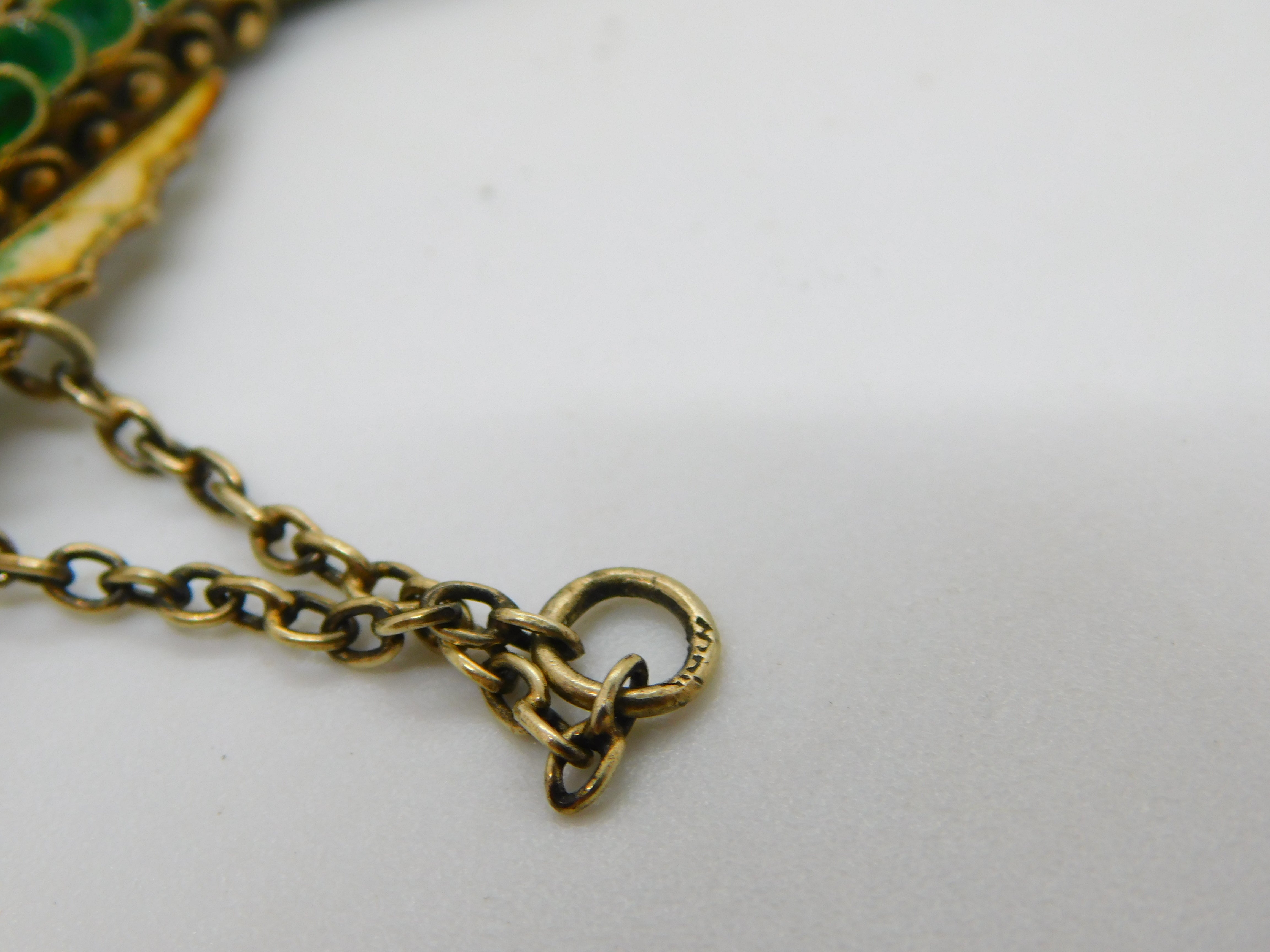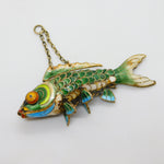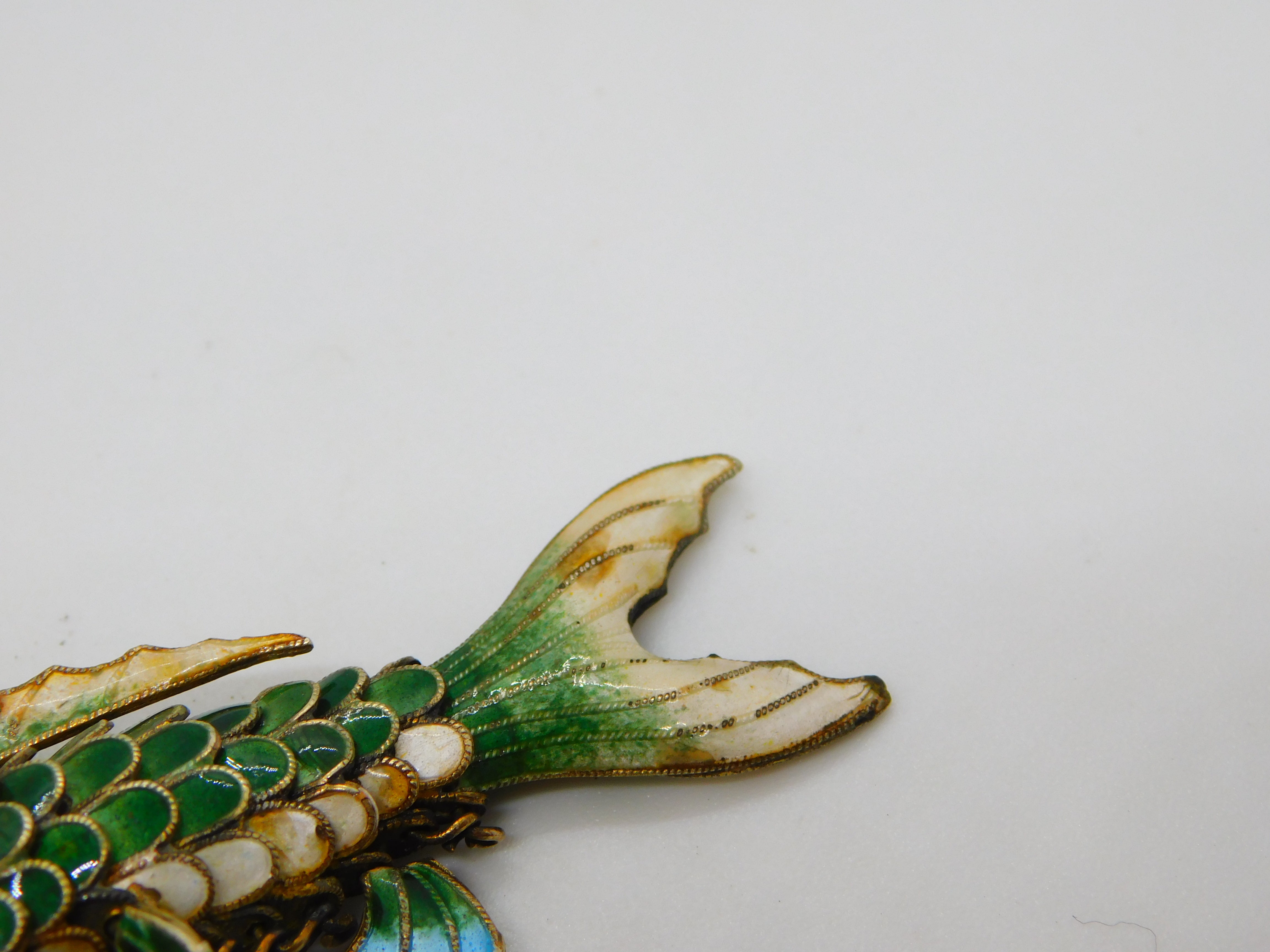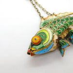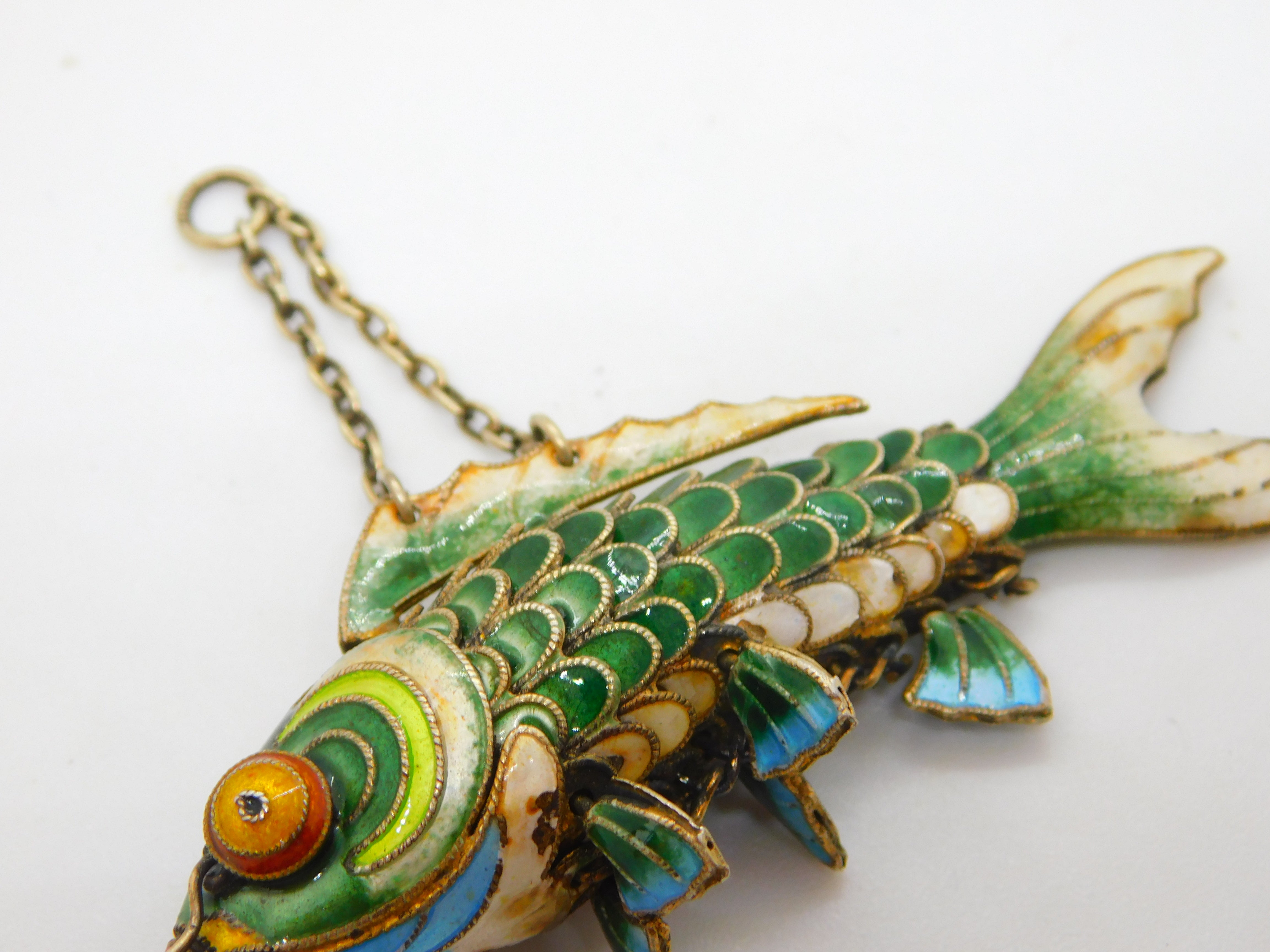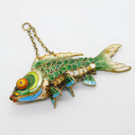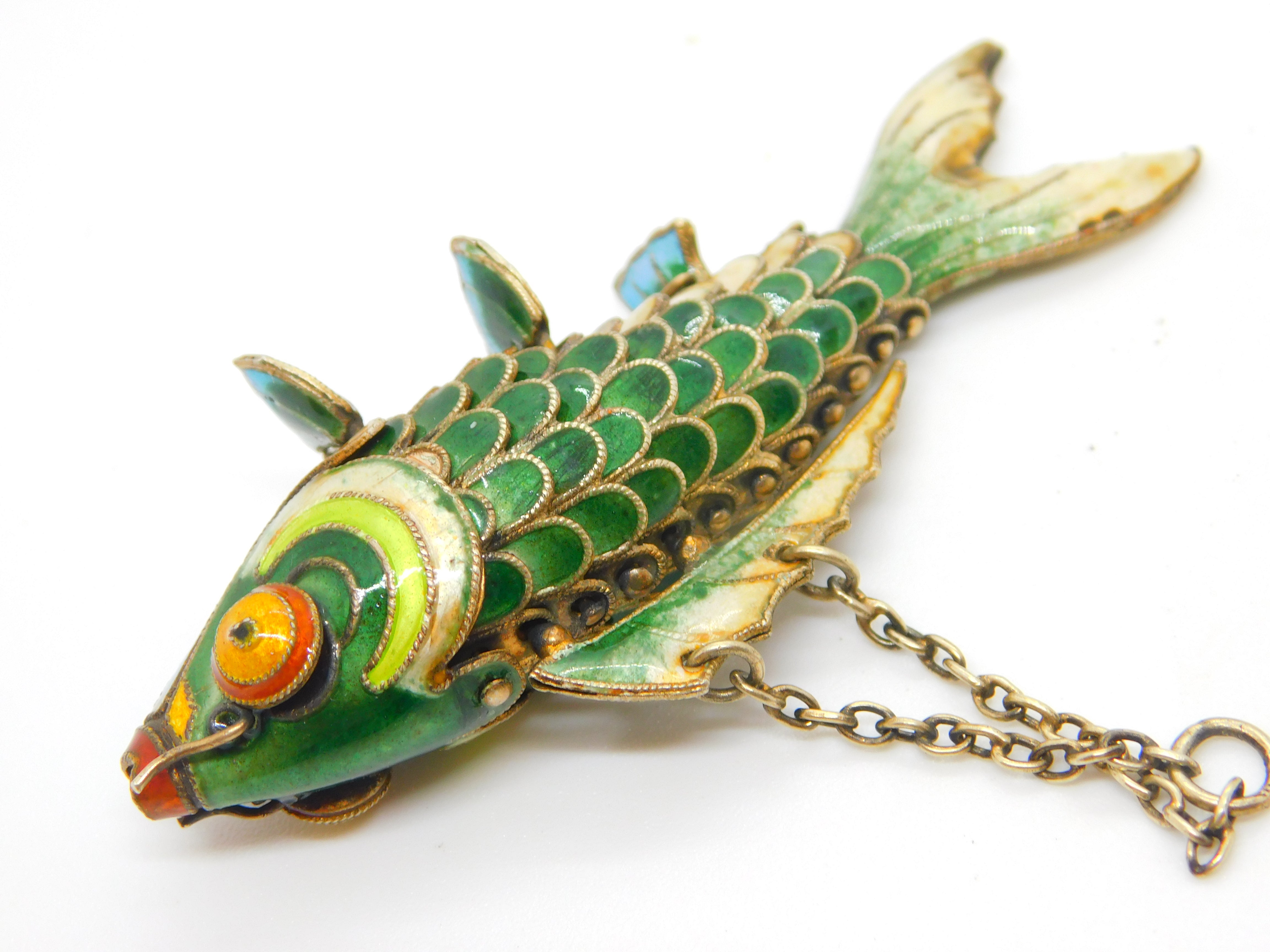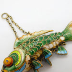 Large Chinese Export Sterling Silver Gilt Enamel Articulated Koi Fish Pendant Antique Art Deco