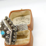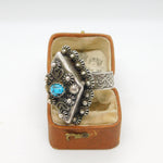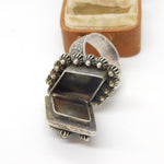 Large Egyptian .900 Silver Turquoise Set Poison Locket Ring Antique c1940 Deco
