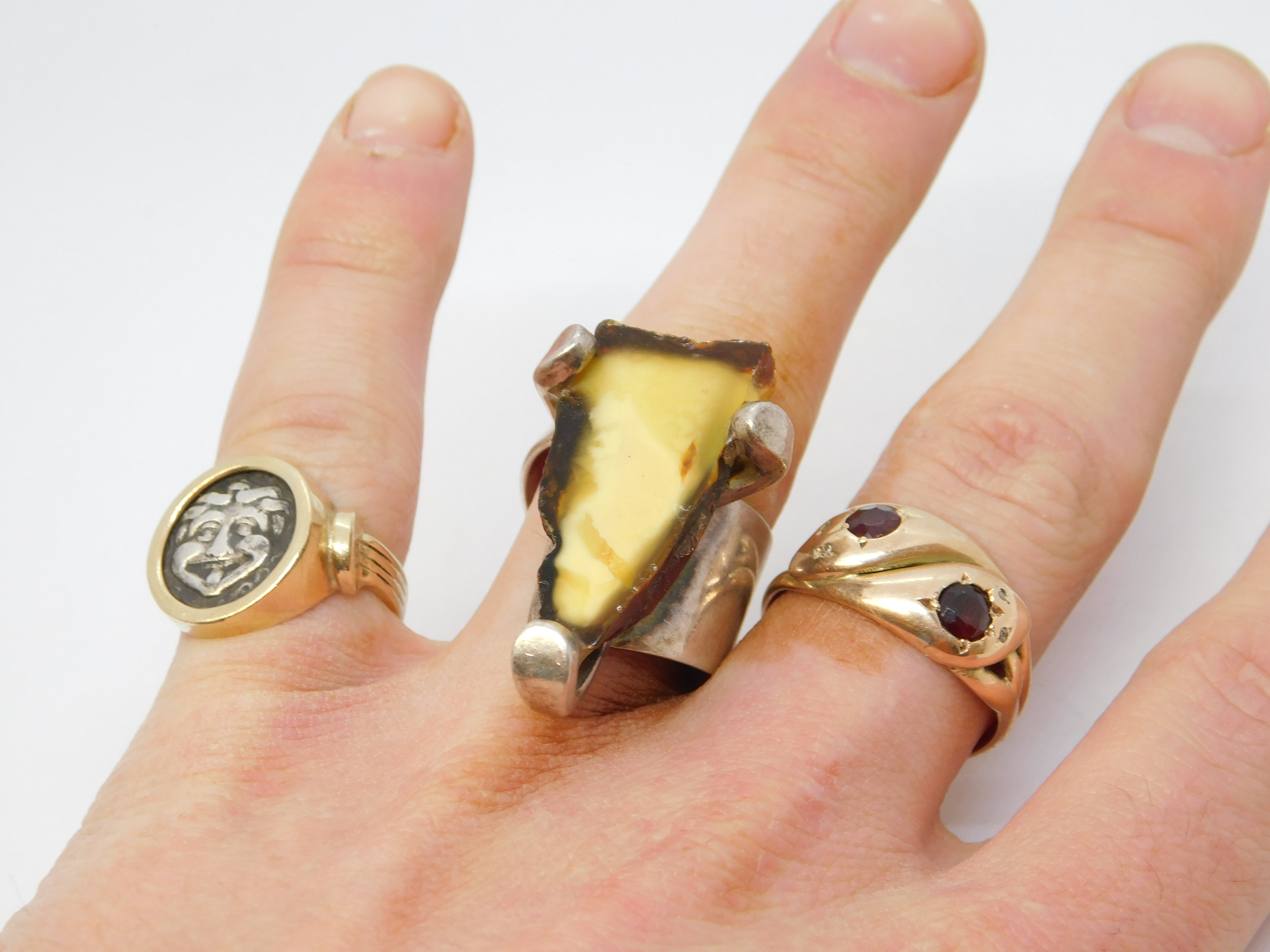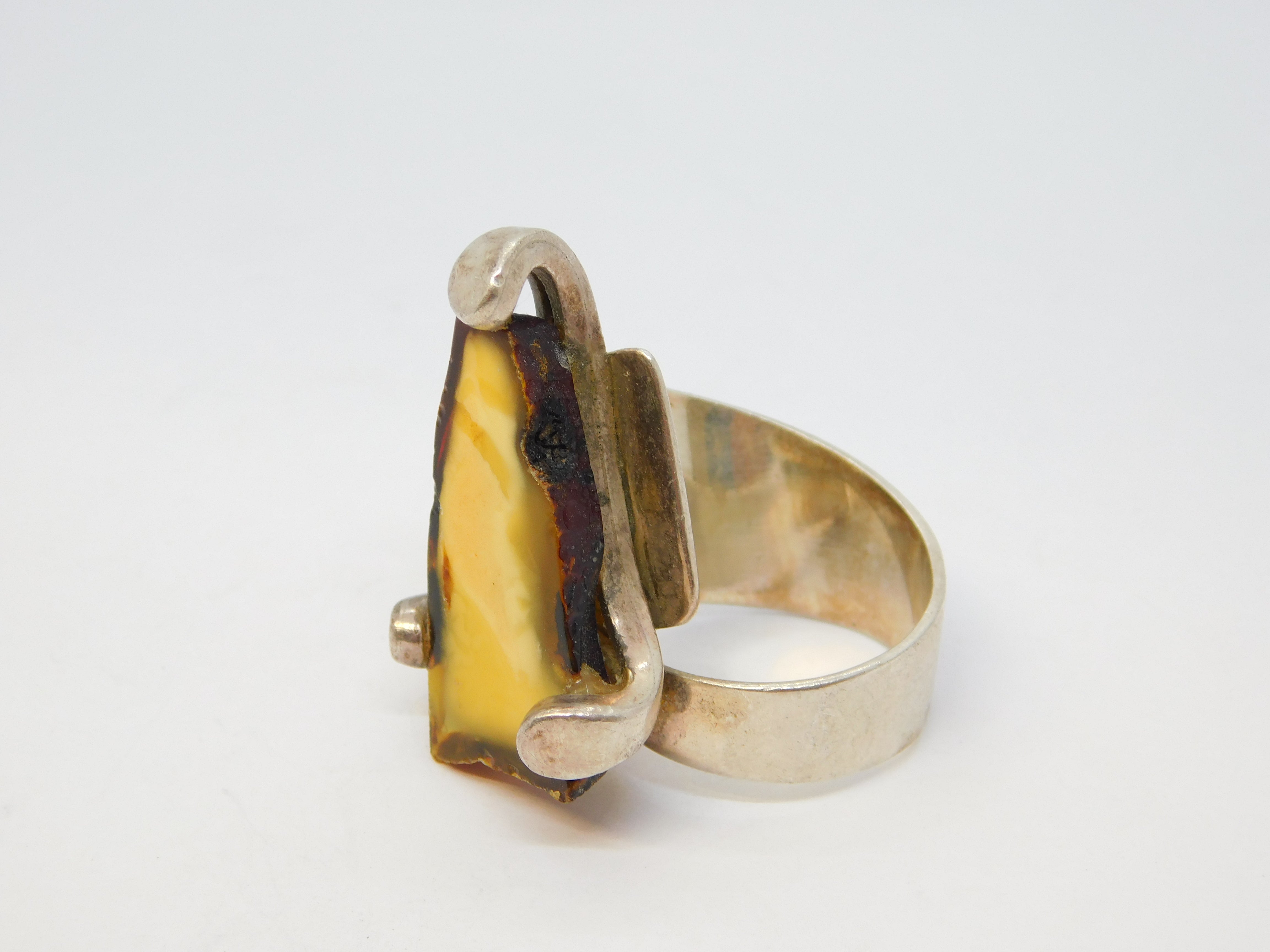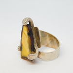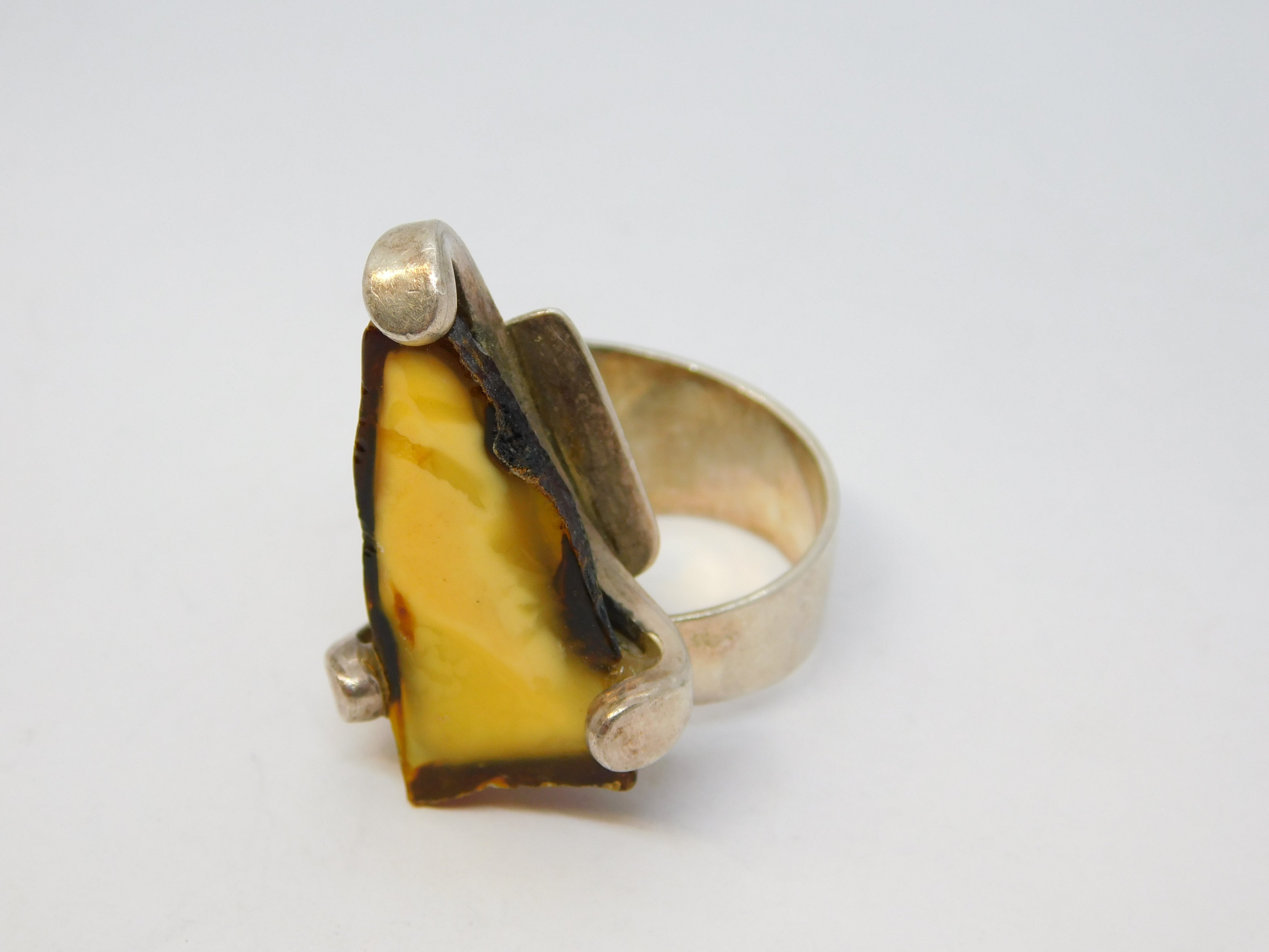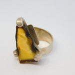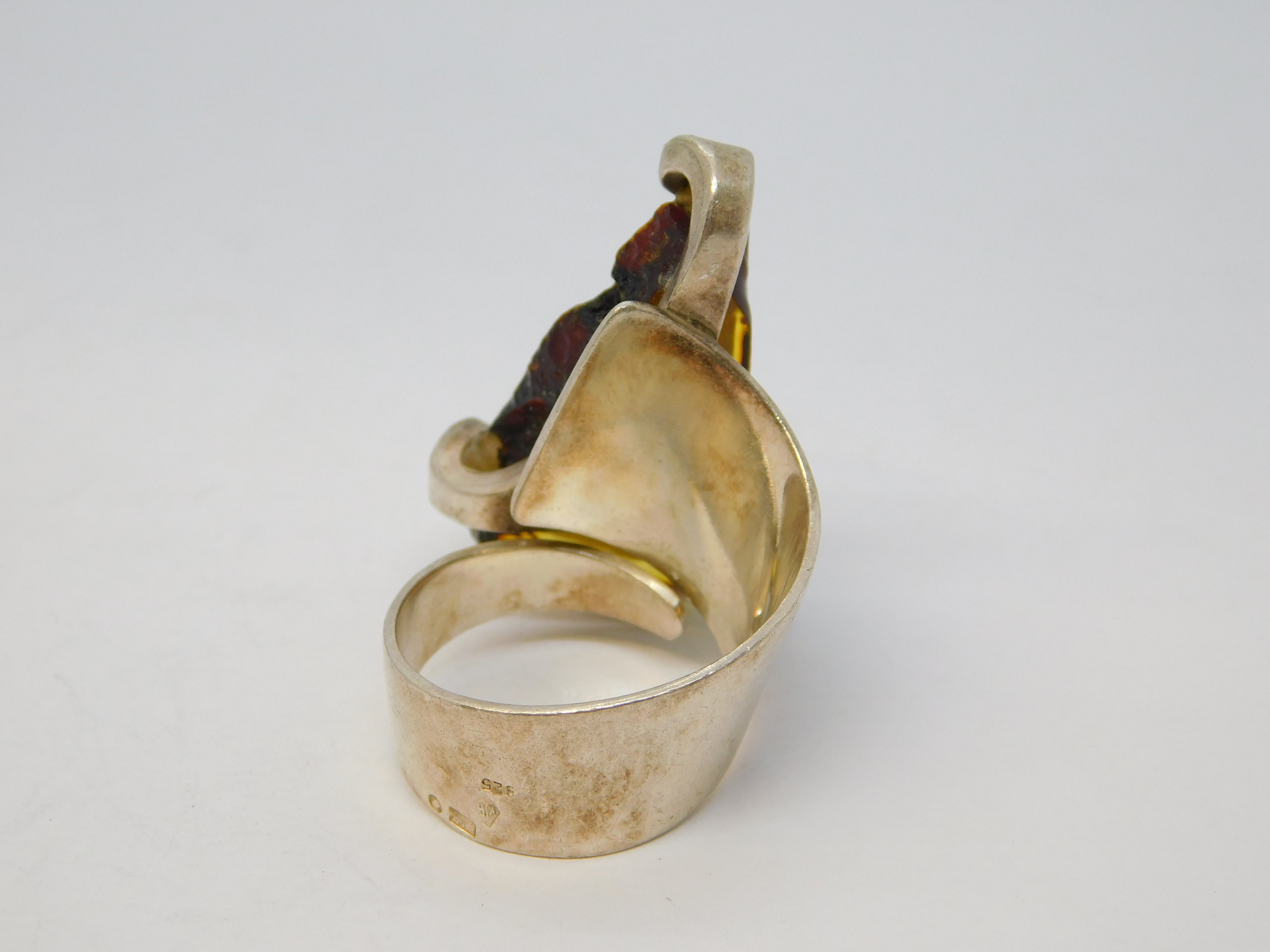 Large Sterling Silver & Baltic Amber Specimen Set Statement Ring Vintage c1980