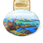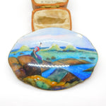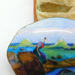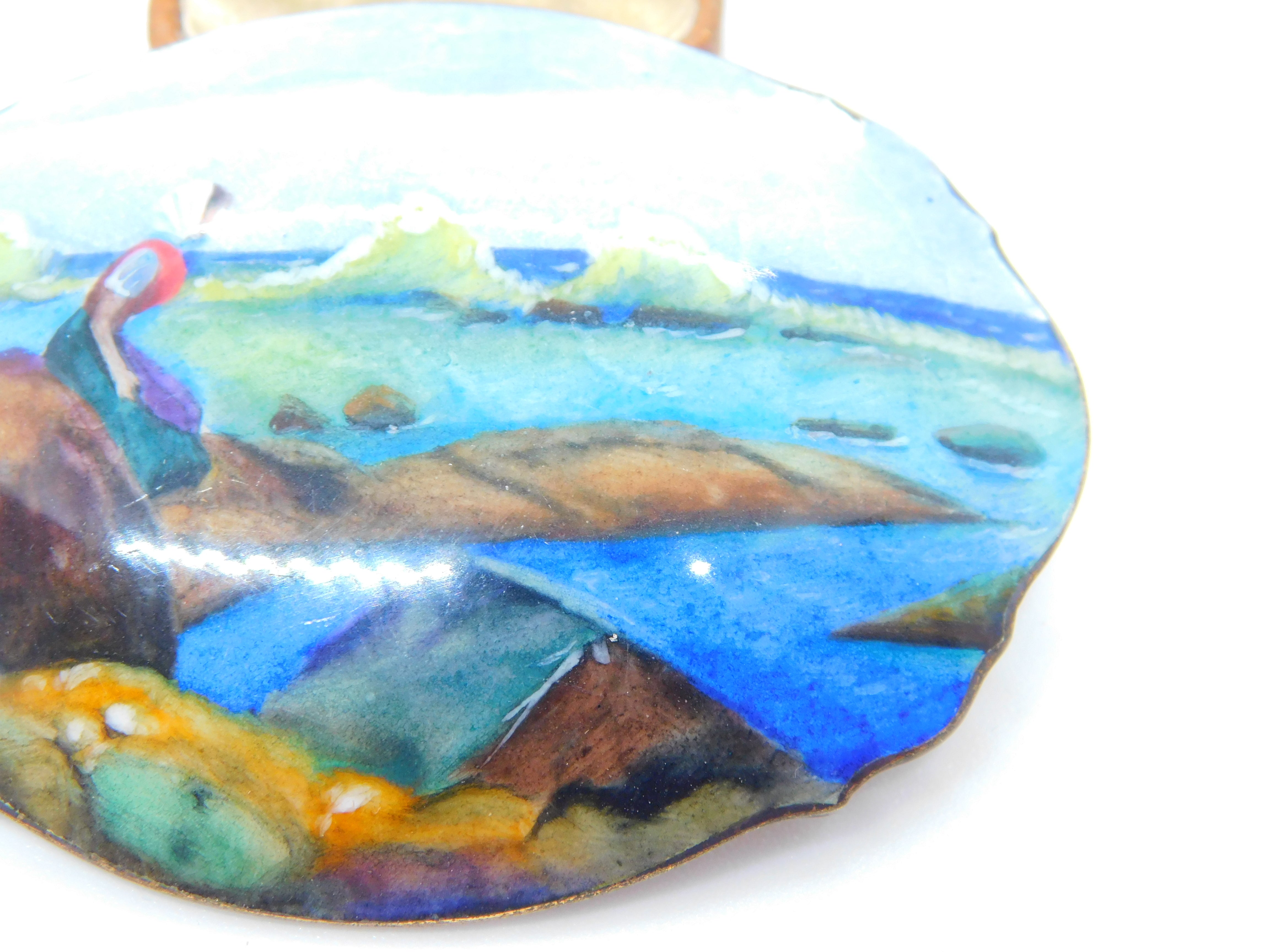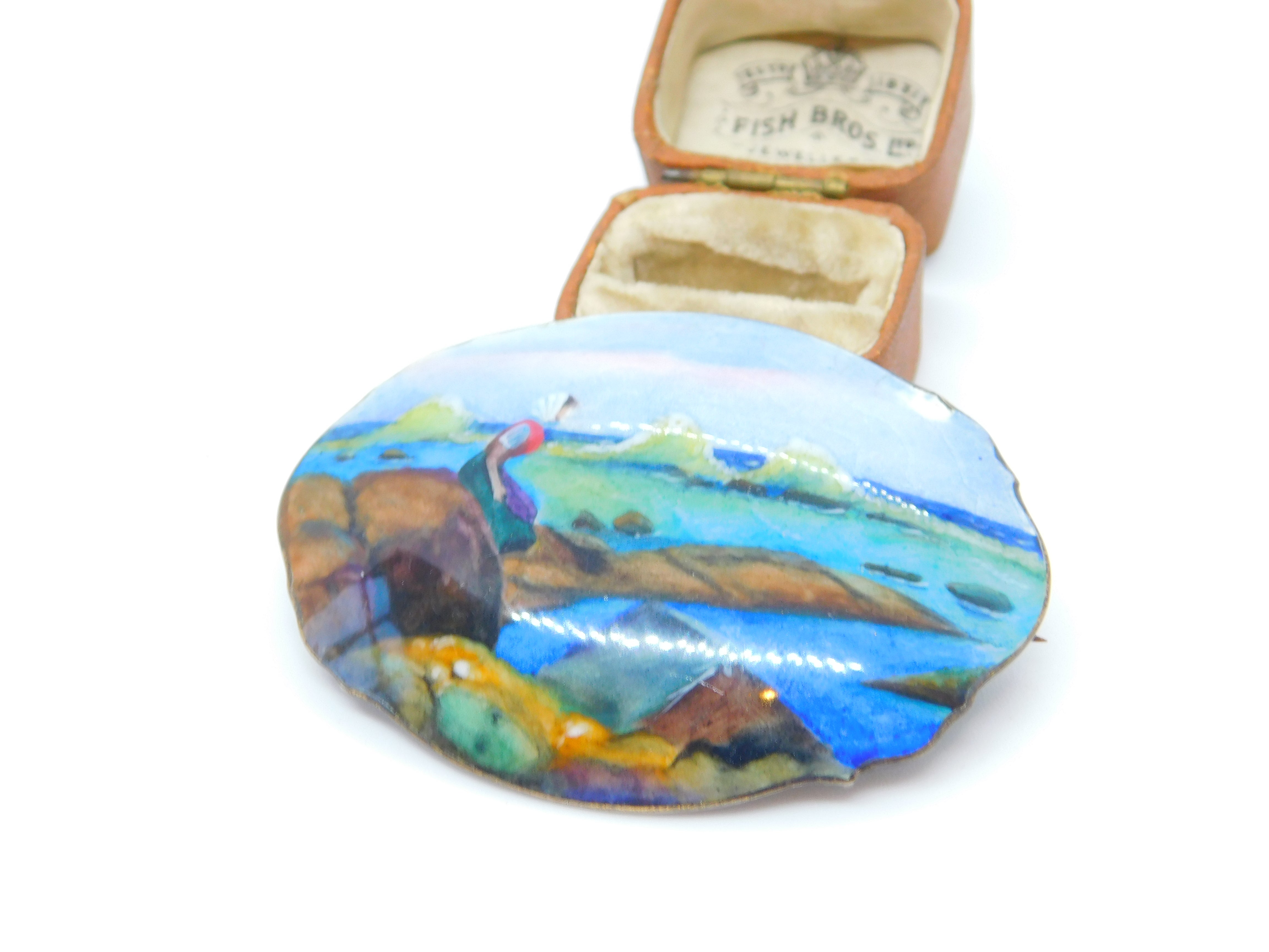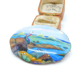 Large Sterling Silver Guilloche Enamel Coastal View Brooch c1920 Antique Deco