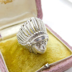 Large Sterling Silver Native American Chief Statement Ring Vintage c1970