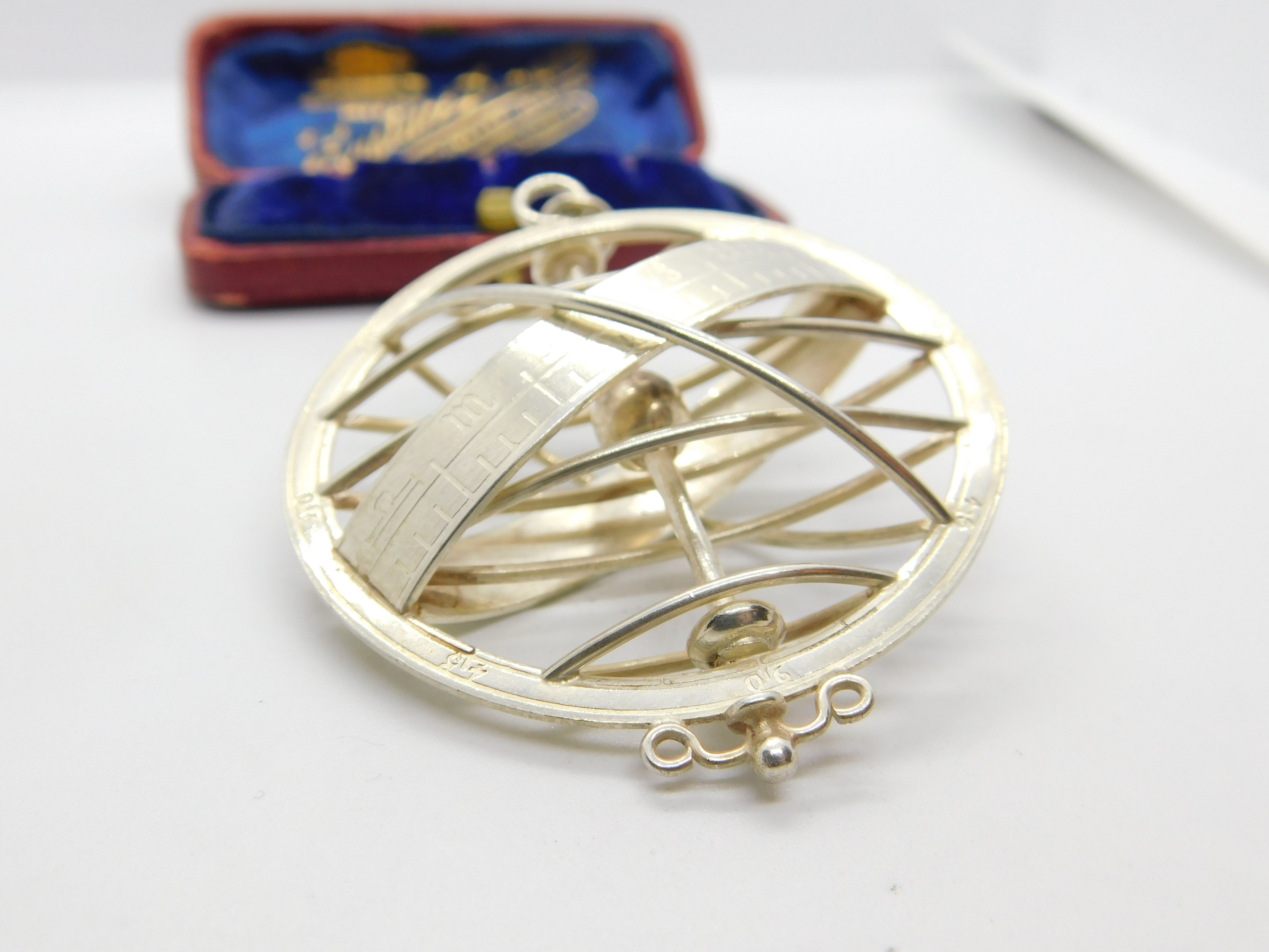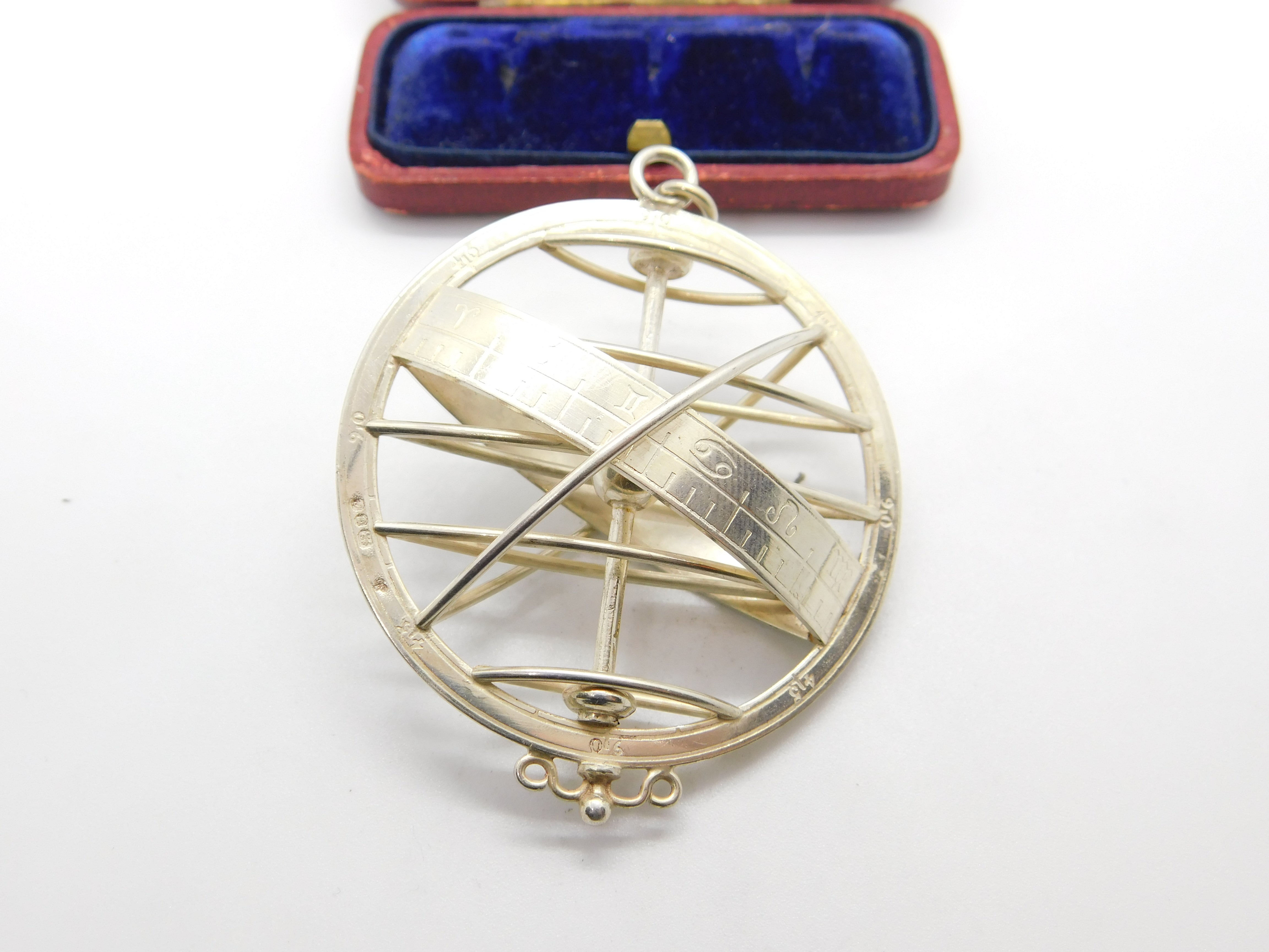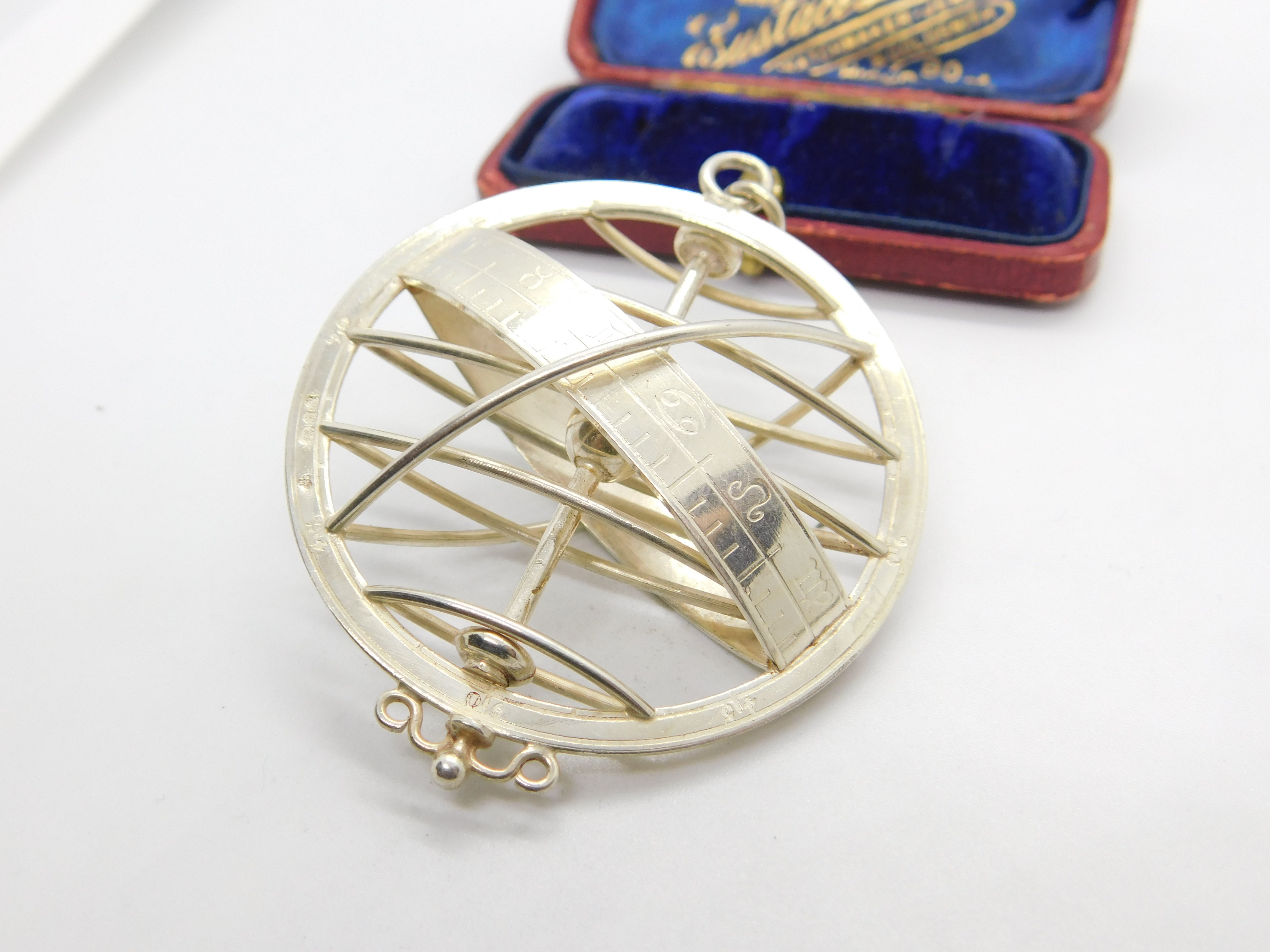 Large Sterling Silver Zodiac Astrological Sundial Pendant Vintage 1977 London
