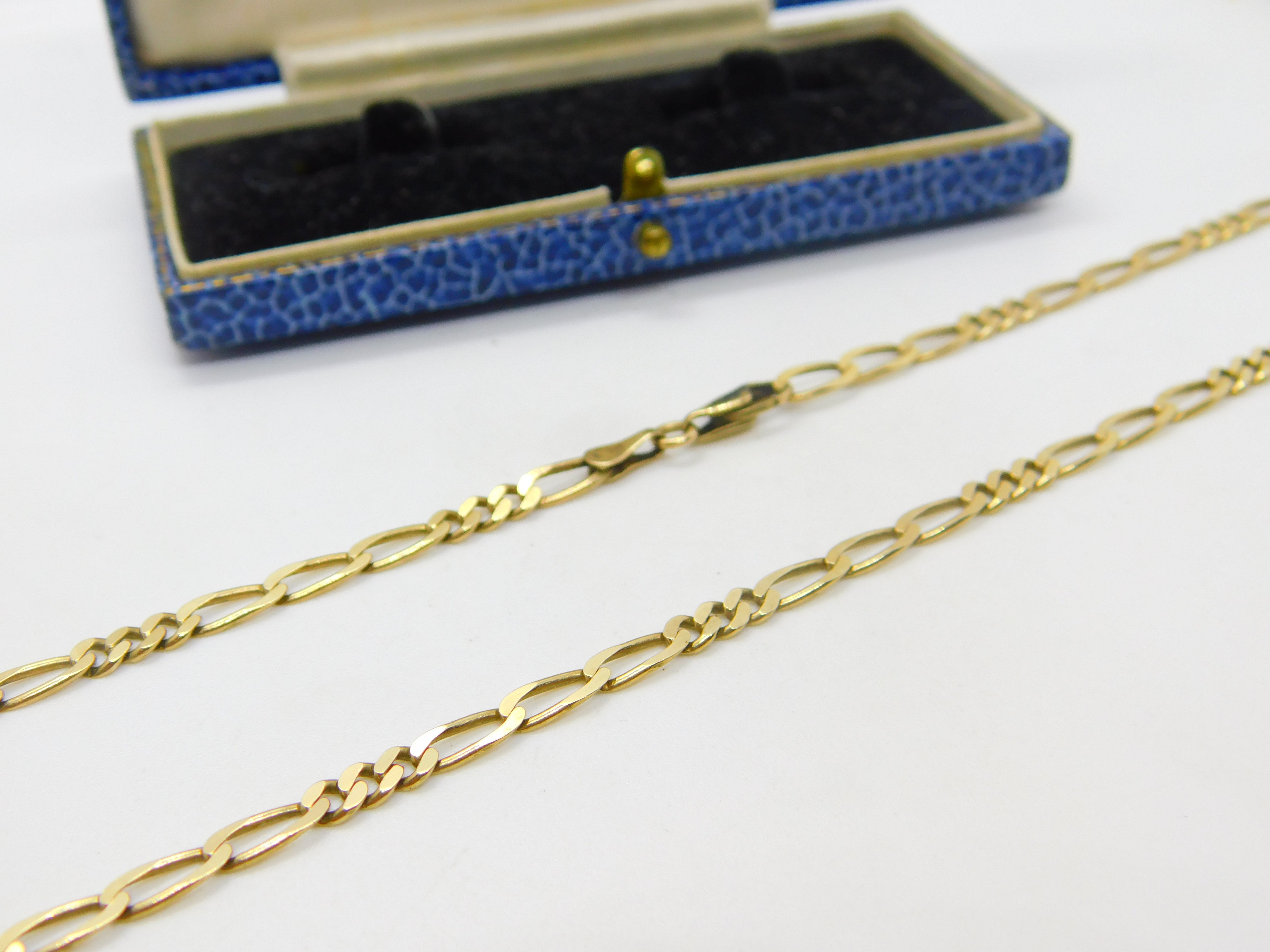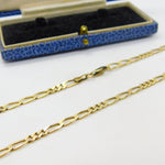 Long 9ct Yellow Gold Figaro Link Chain Necklace 30" Length Vintage c1970