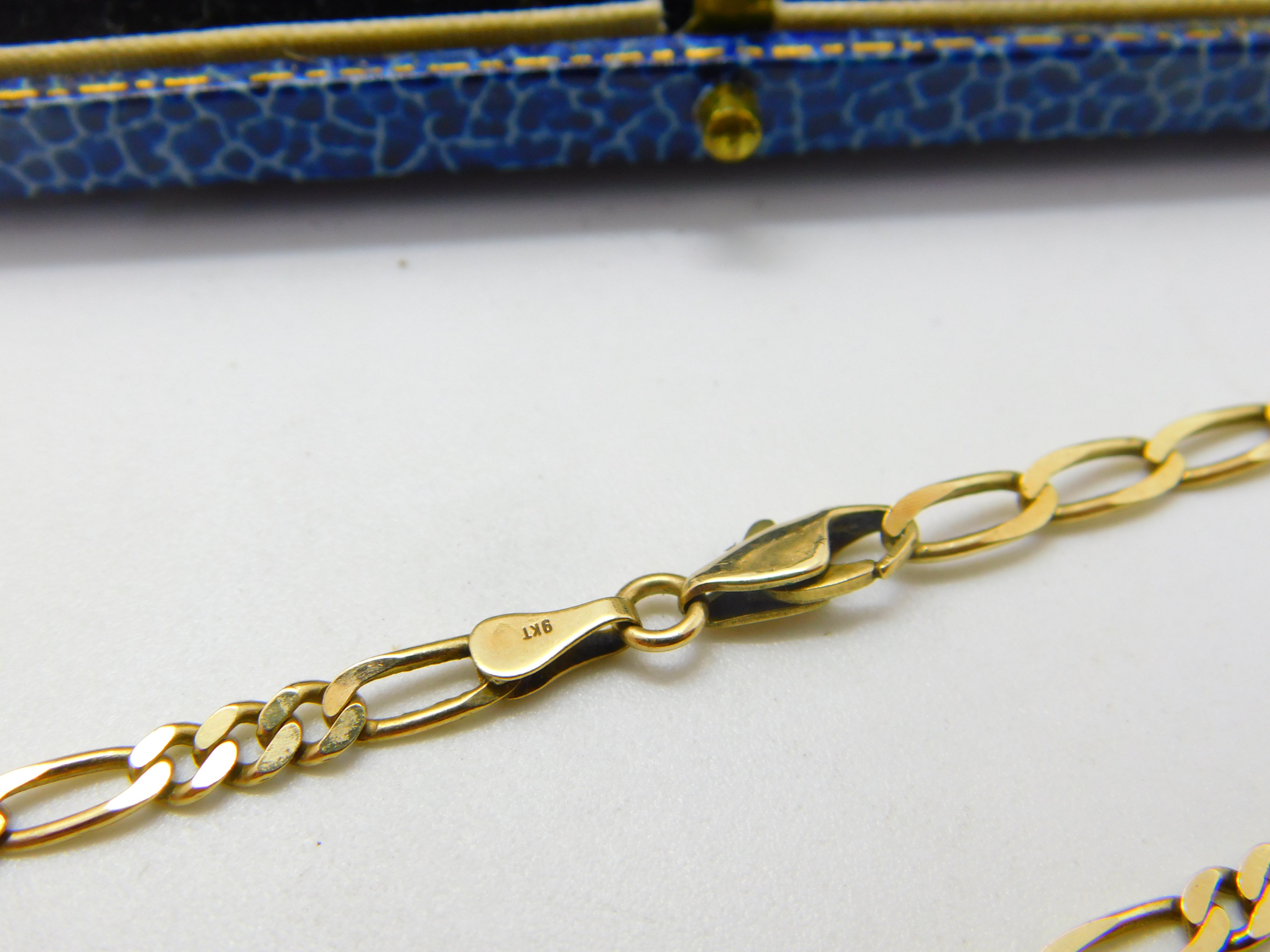Details: A fantastic and wonderfully designed vintage 9ct yellow gold figaro link chain necklace with lovely detailing hallmarked to the bale c1970. This is a wonderful item that would make a perfect gift or addition to any collection. The BOX pictured is for PRESENTATION ONLY and is NOT included in the listings but used to frame the pictures unless specifically stated otherwise.