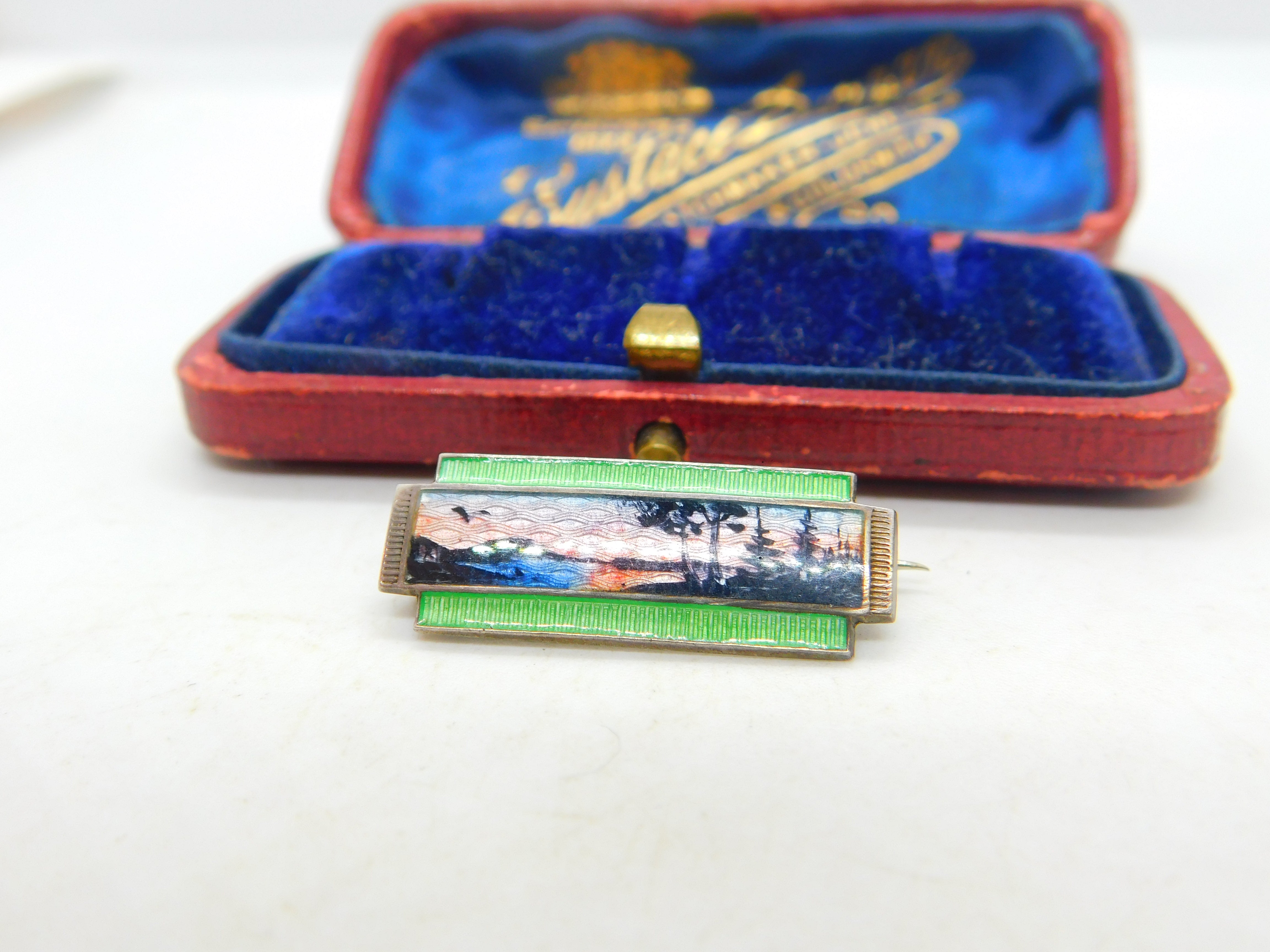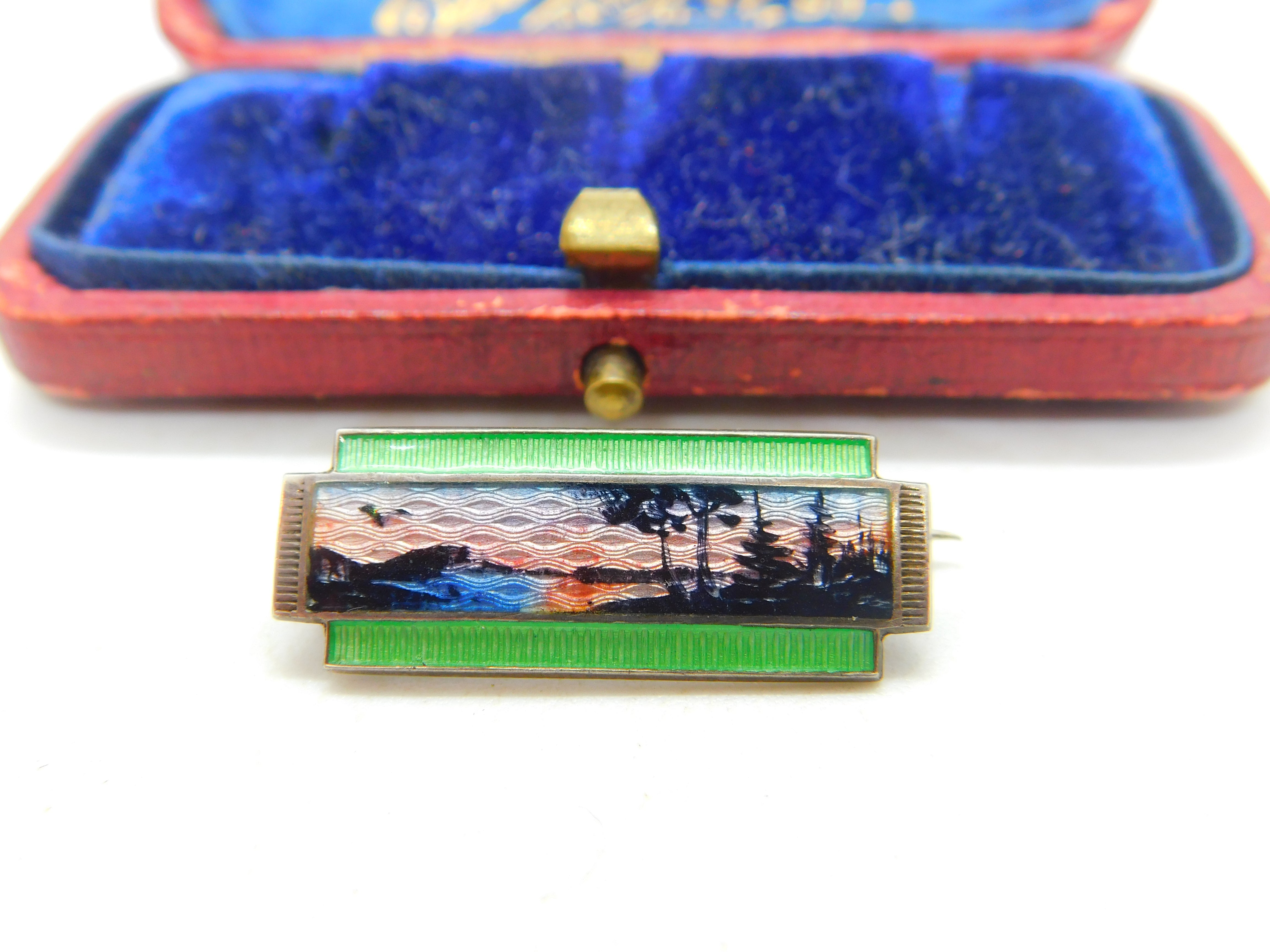 Details: A fantastic and wonderfully designed antique art deco sterling silver & colourful enamel including and unusual green aspect brooch depicting a winter scene hallmarked by Marius Hammer c1920 Norway. This is a wonderful item that would make a perfect gift or addition to any collection. The BOX pictured is for PRESENTATION ONLY and is NOT included in the listings but used to frame the pictures unless specifically stated otherwise.