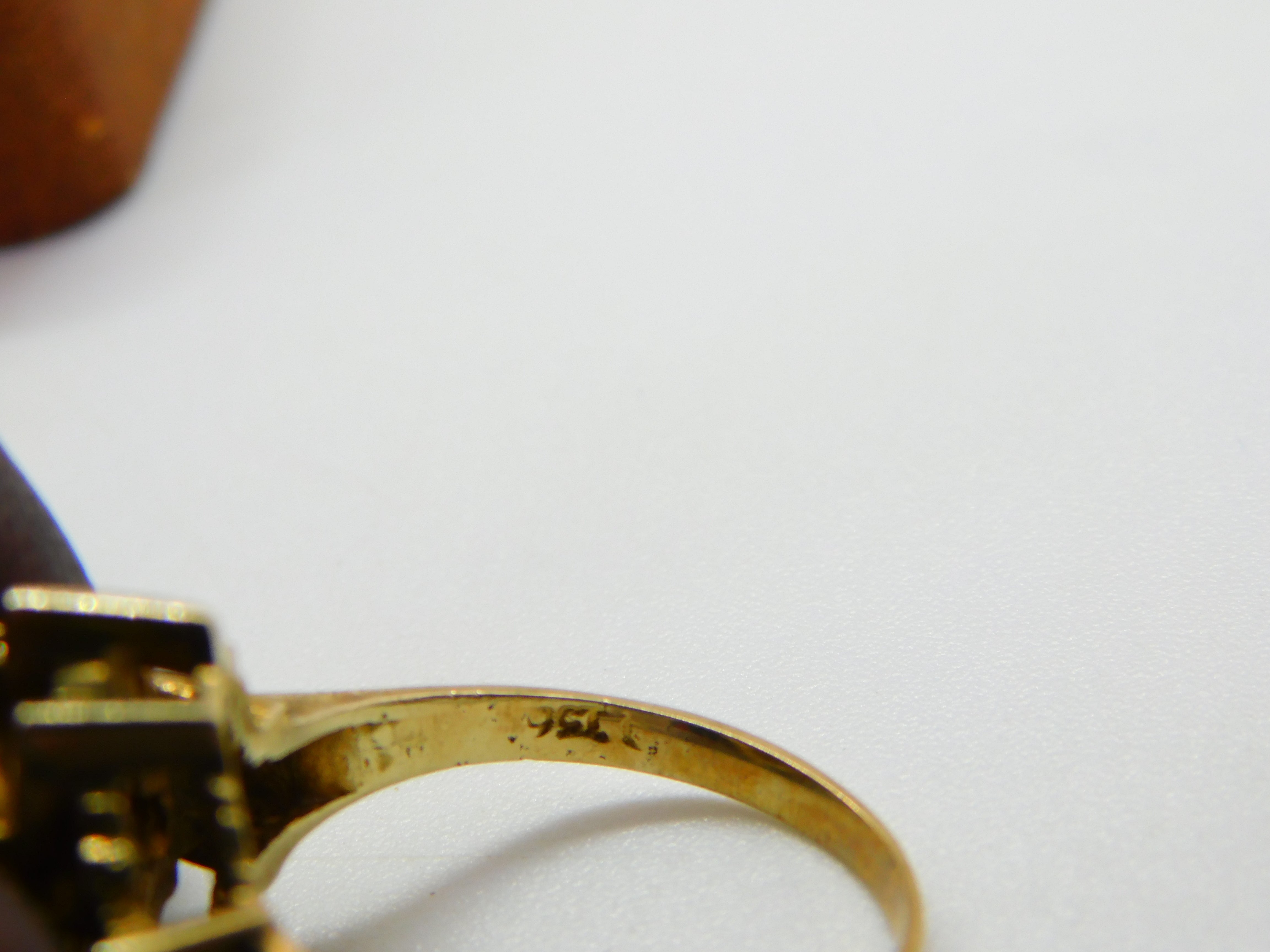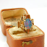 Modernist 9ct Gold, Cabochon Opal & Spinel Set Statement Ring Vintage c1960