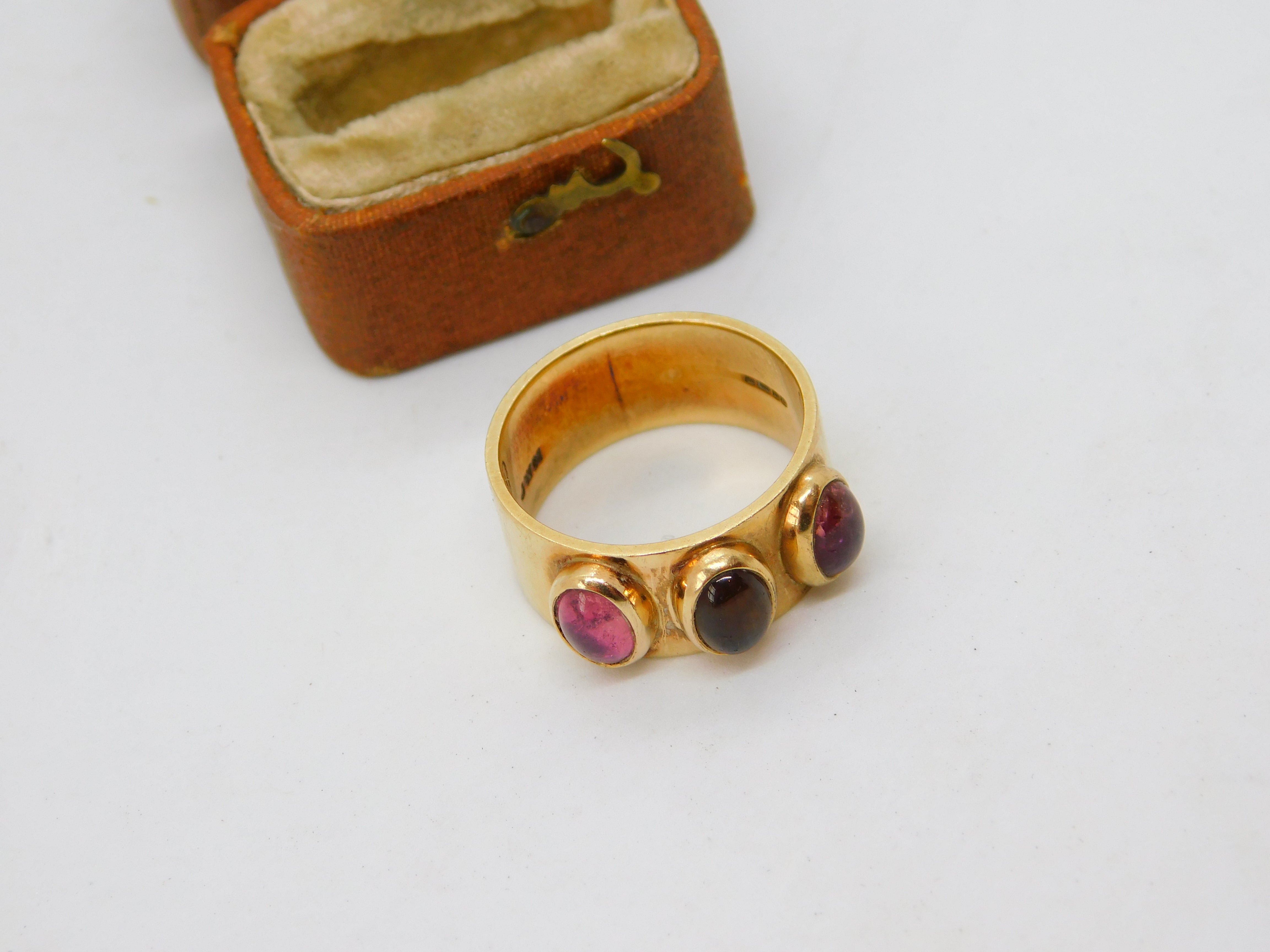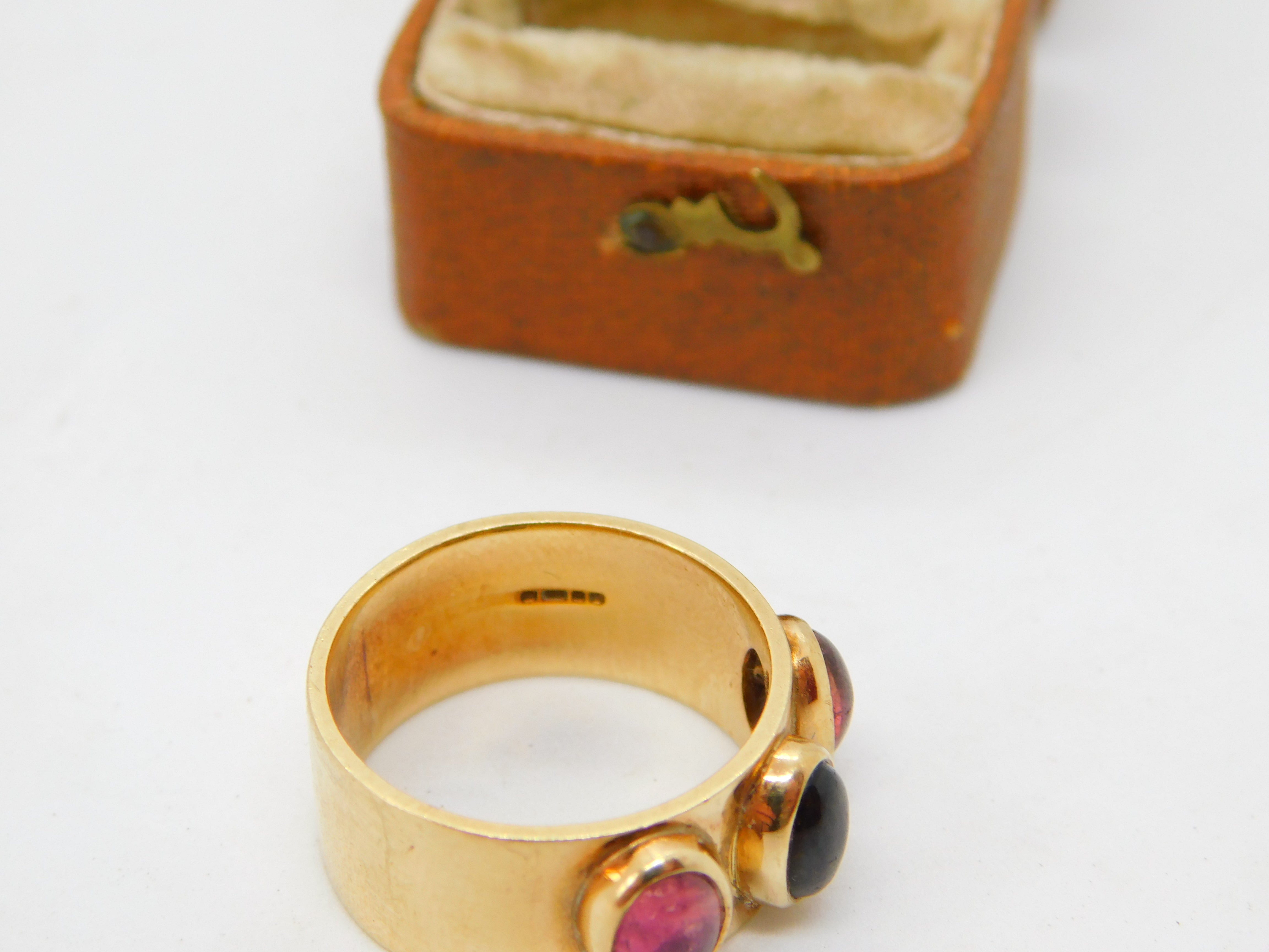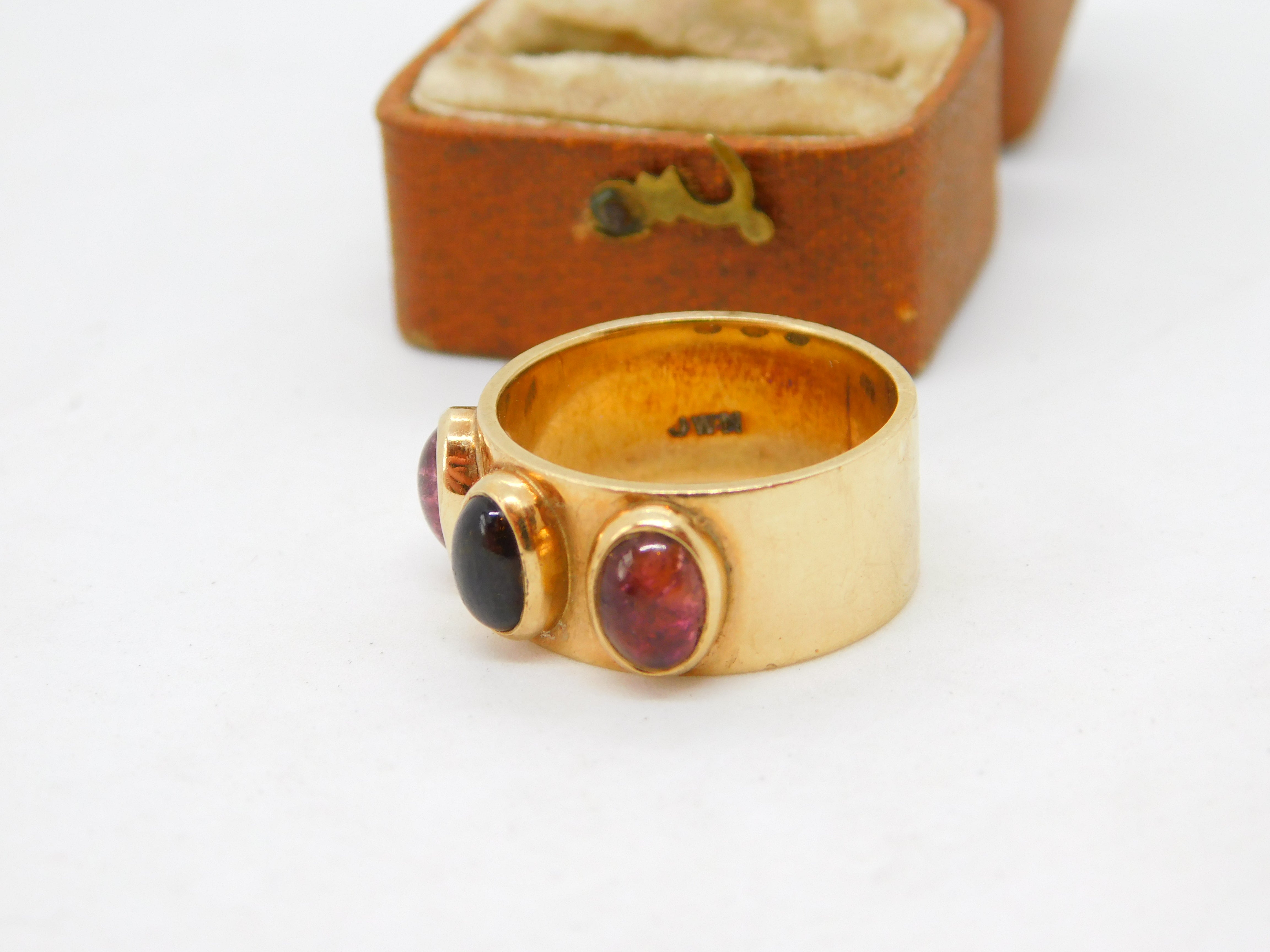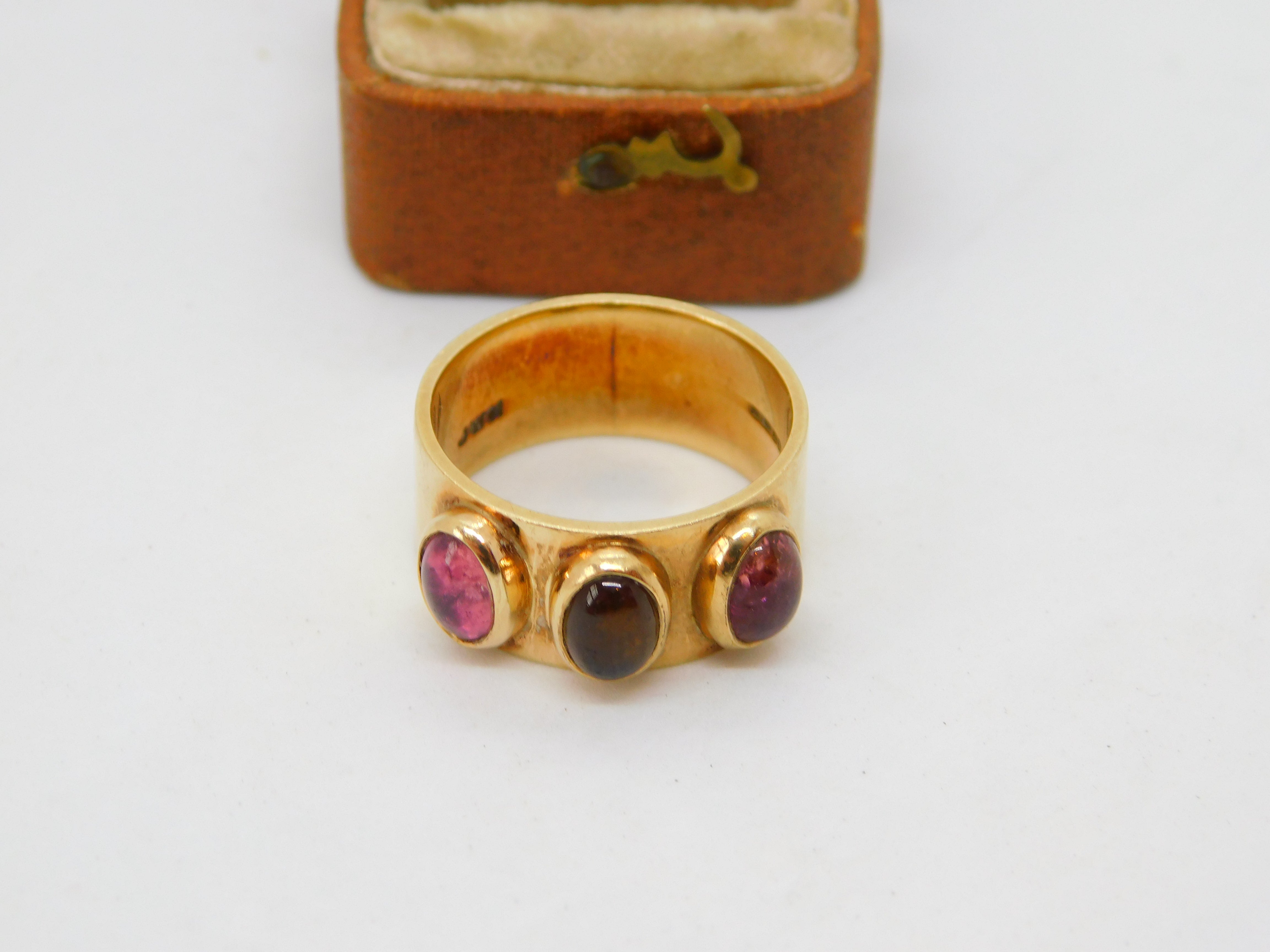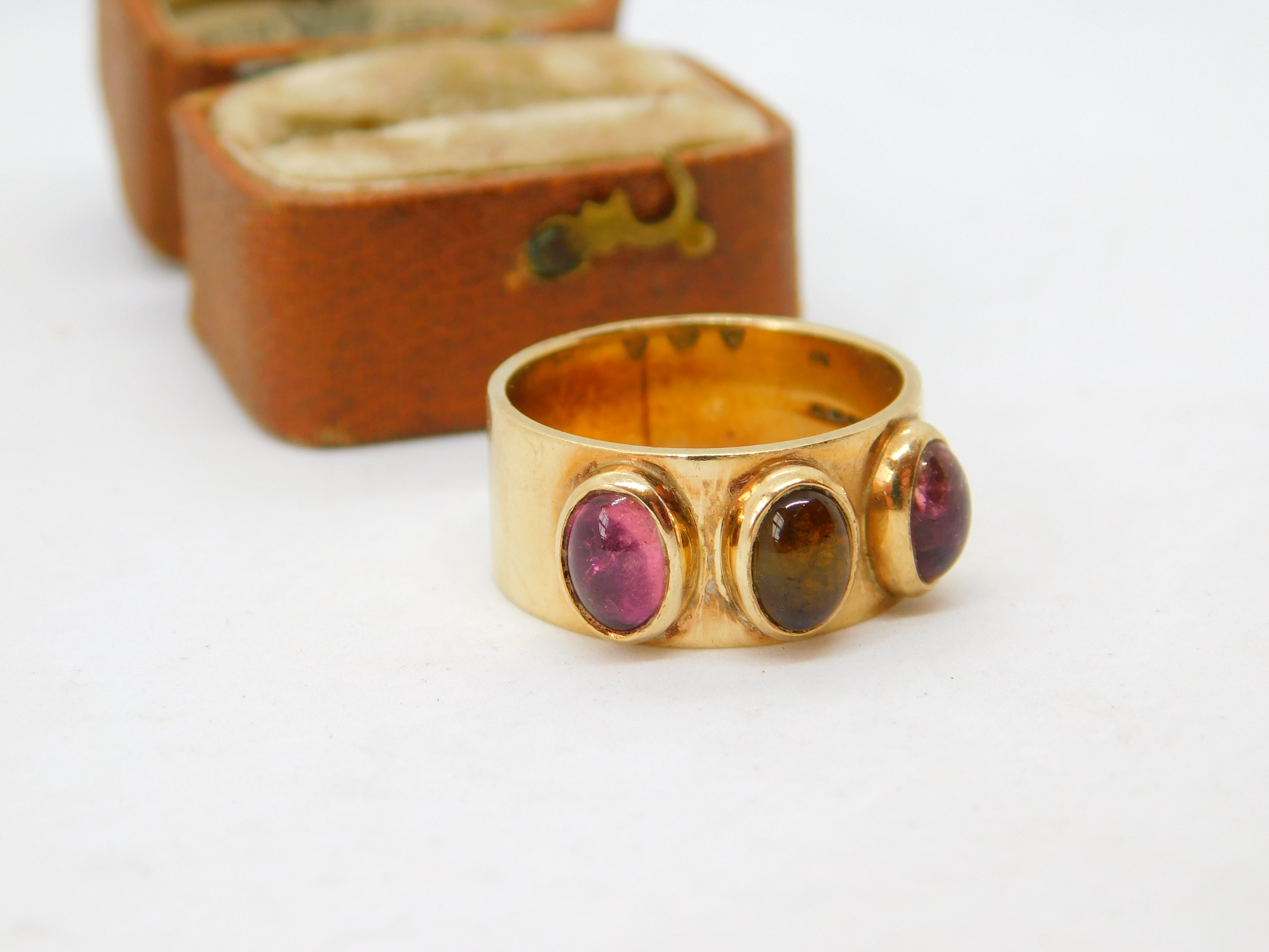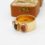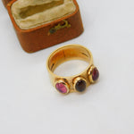 Modernist 9ct Yellow Gold Cabochon Amethyst & Citrine Band Ring 2002 London