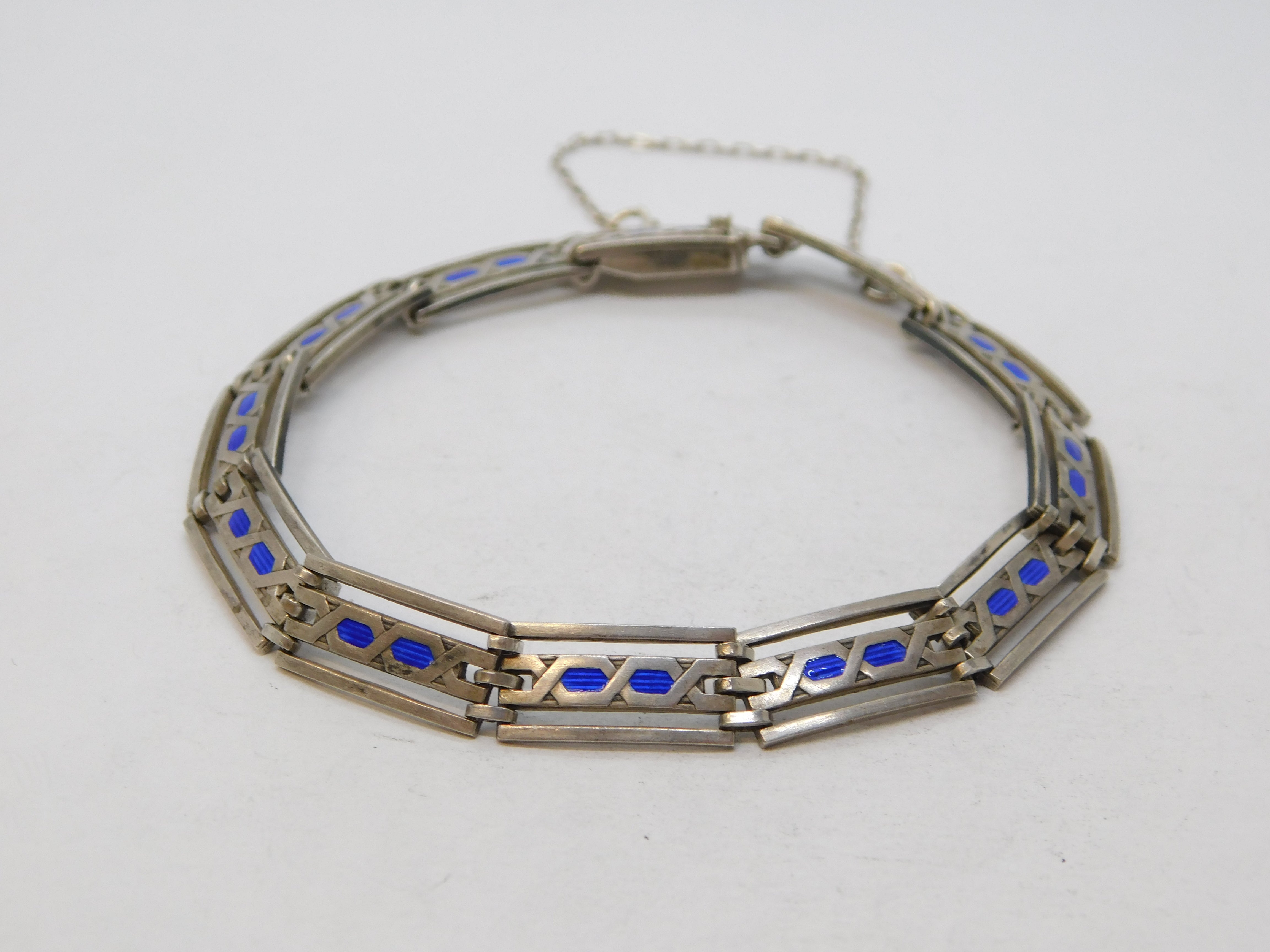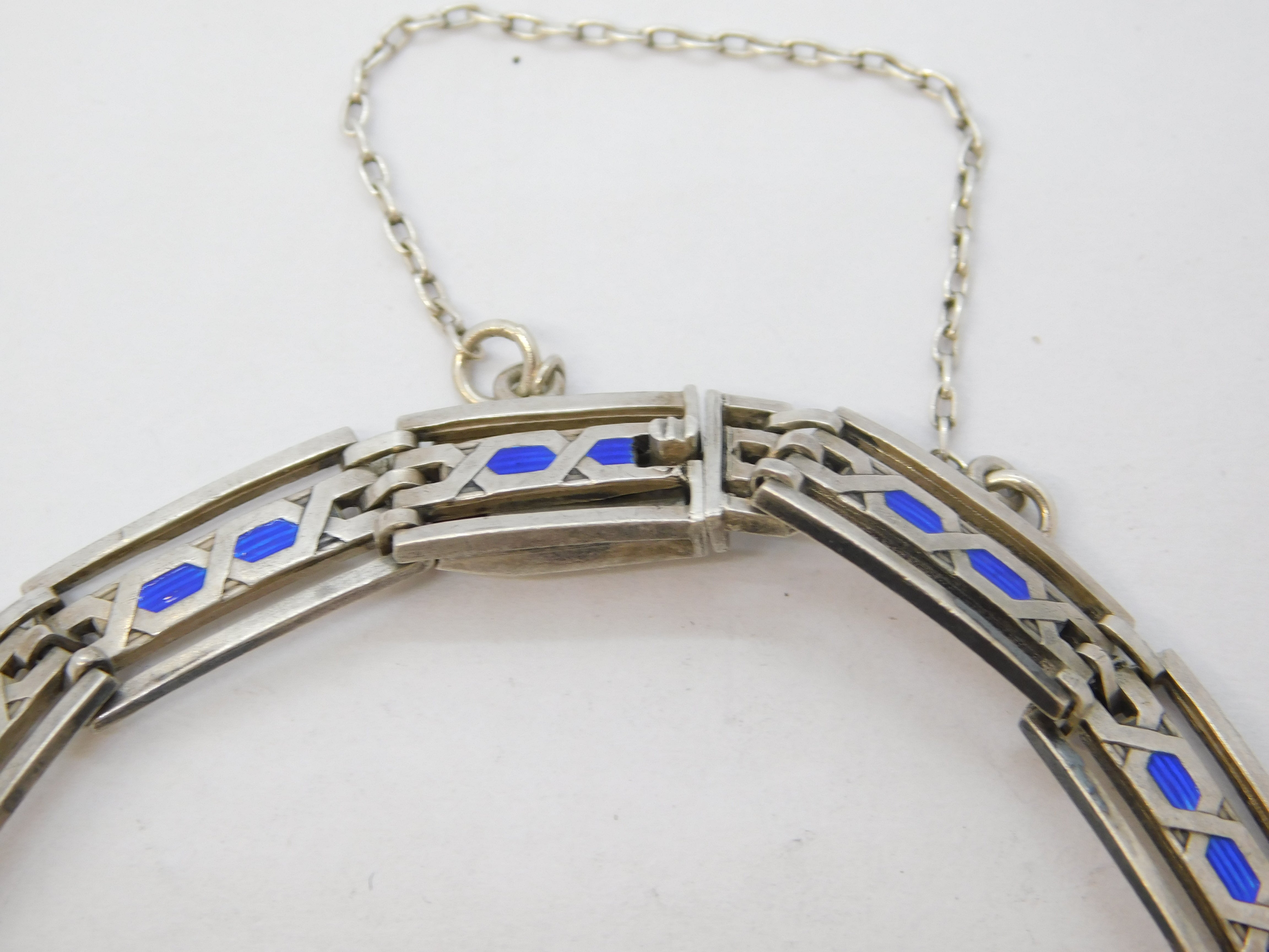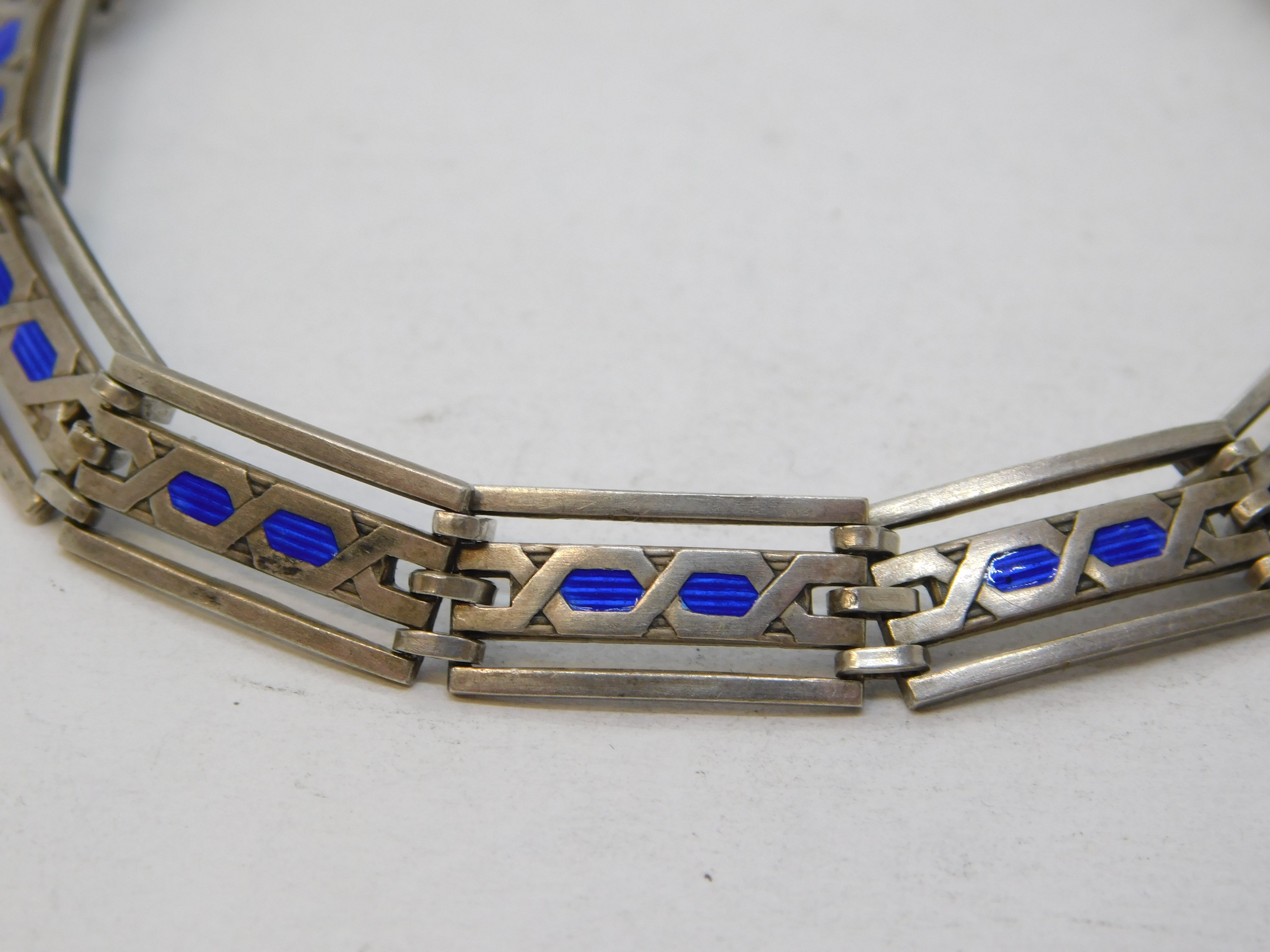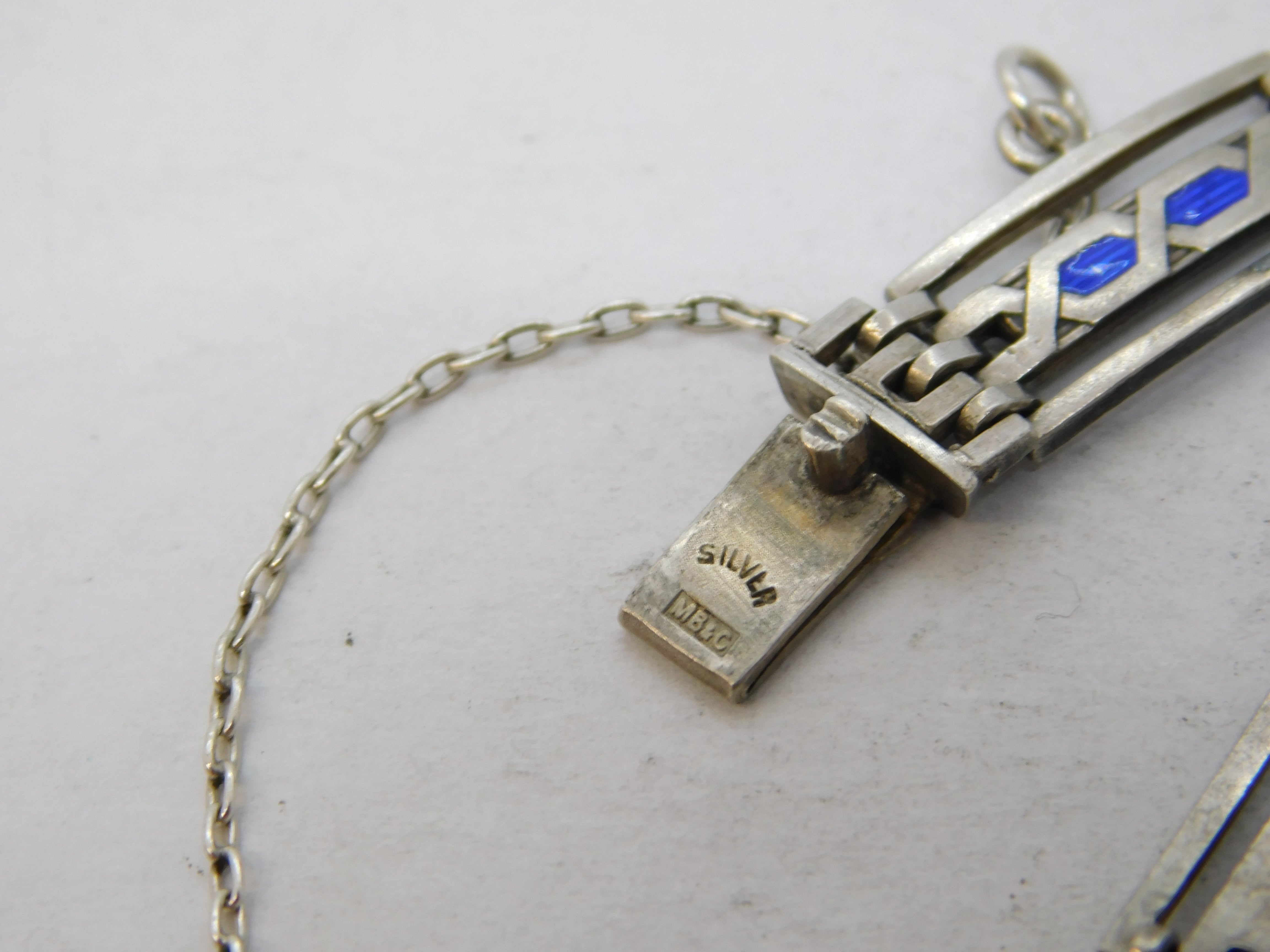 Murrle Bennett & Co Sterling Silver Blue Enamel Panel Bracelet Antique c1910