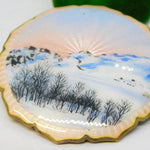 Norwegian Large Sterling Silver Guilloche Enamel Mountain Scene Brooch Antique