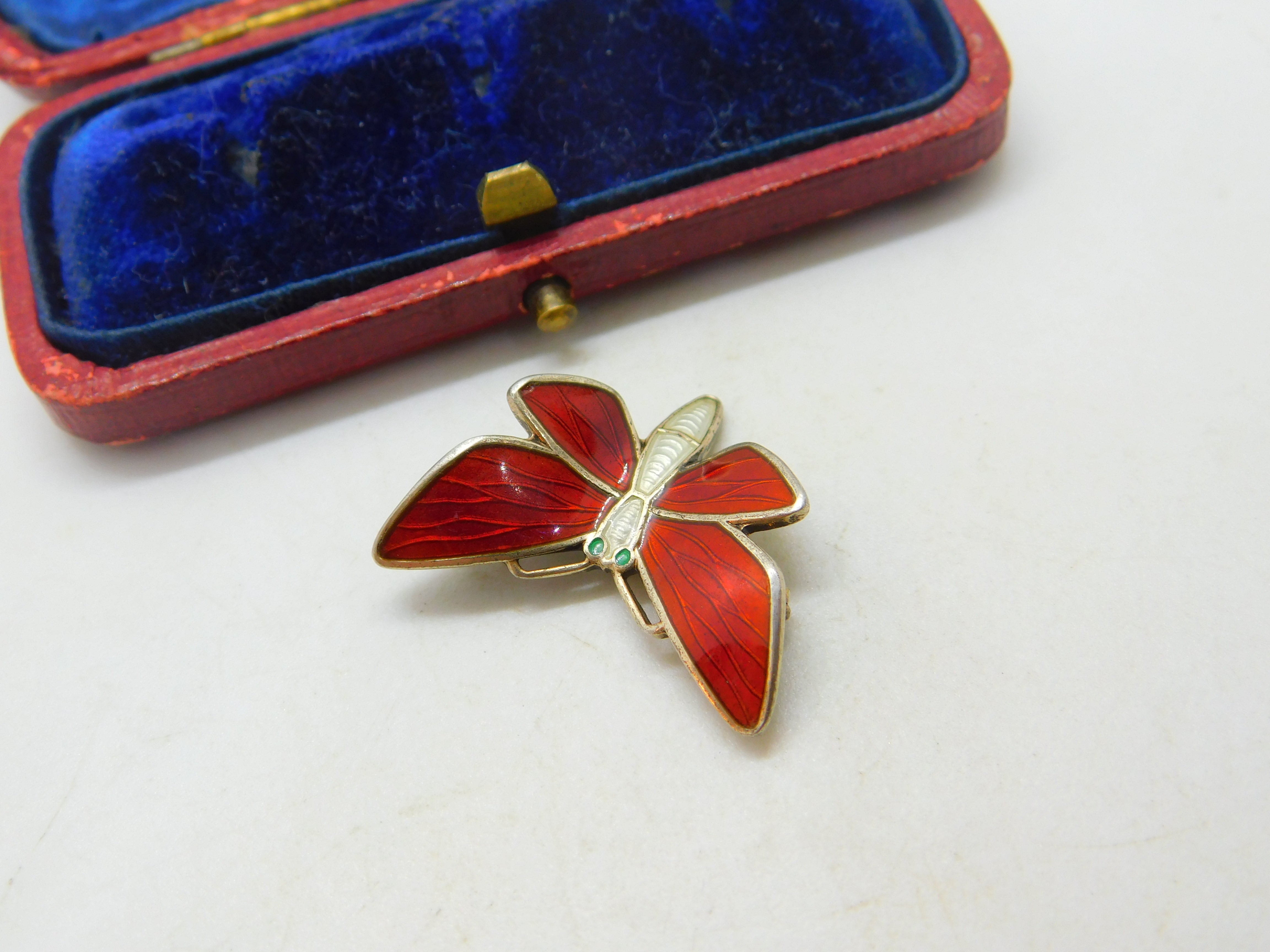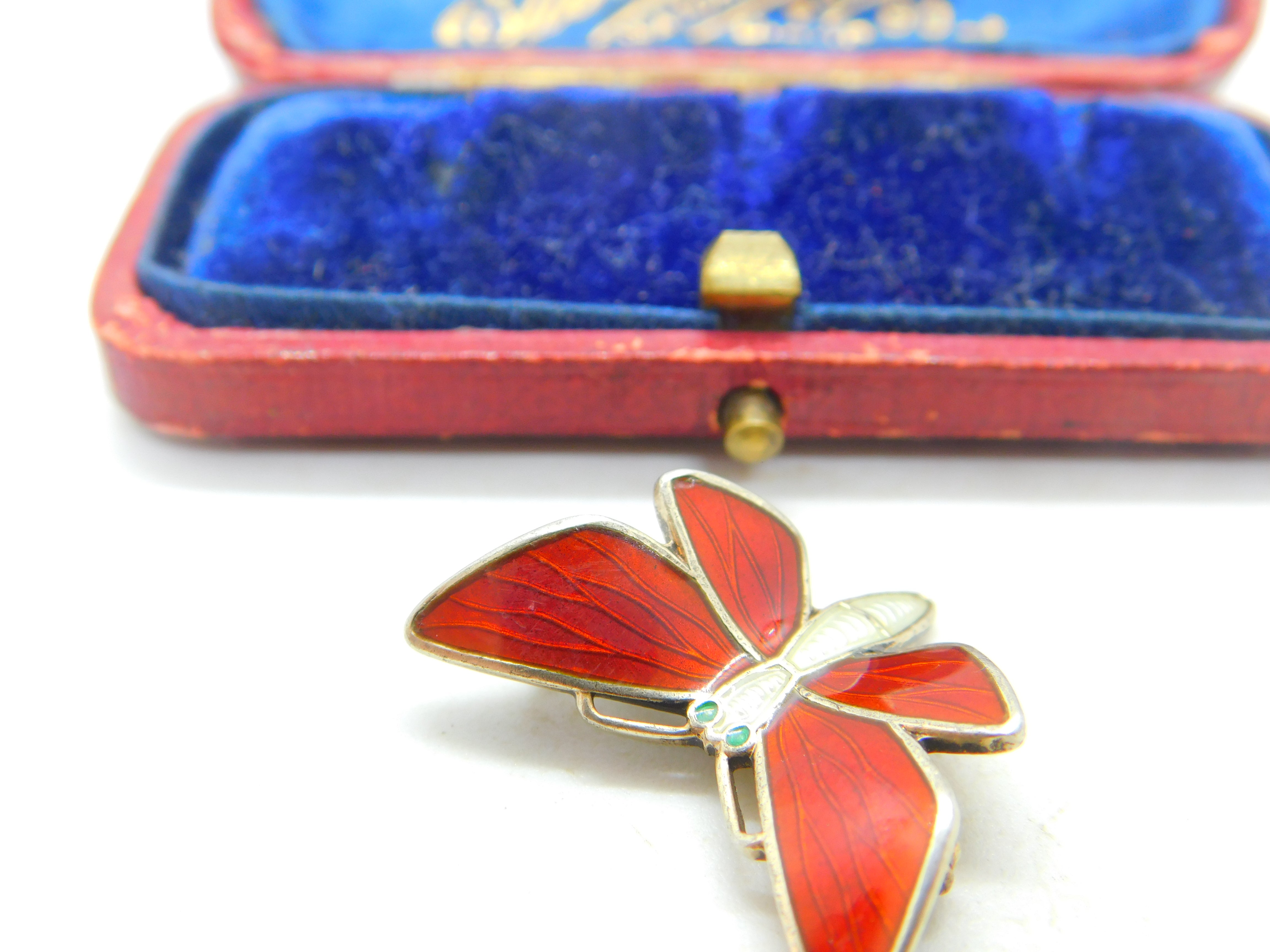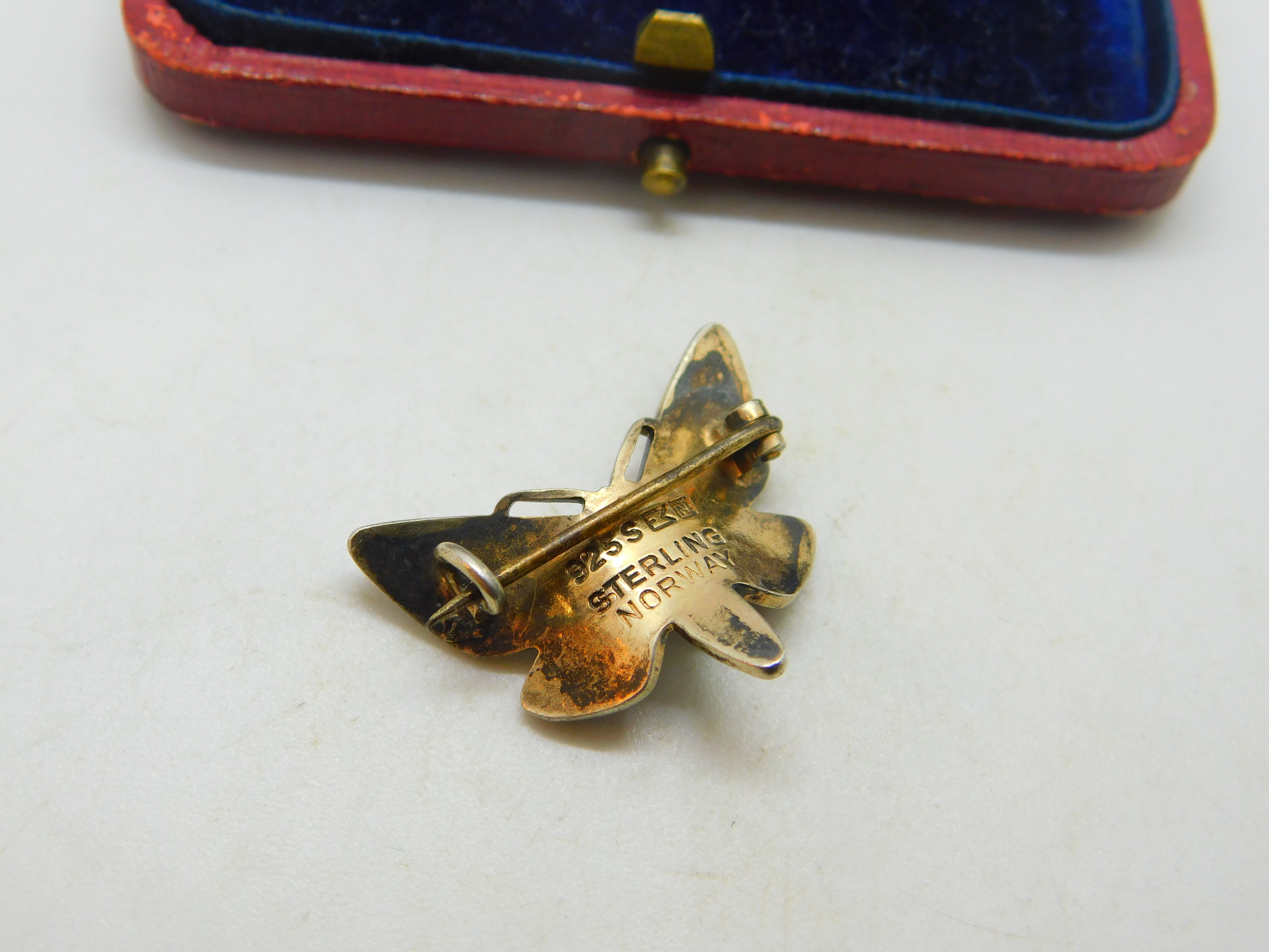 Norwegian Sterling Silver & Enamel Butterfly Dragonfly Brooch Mid-Century c1950