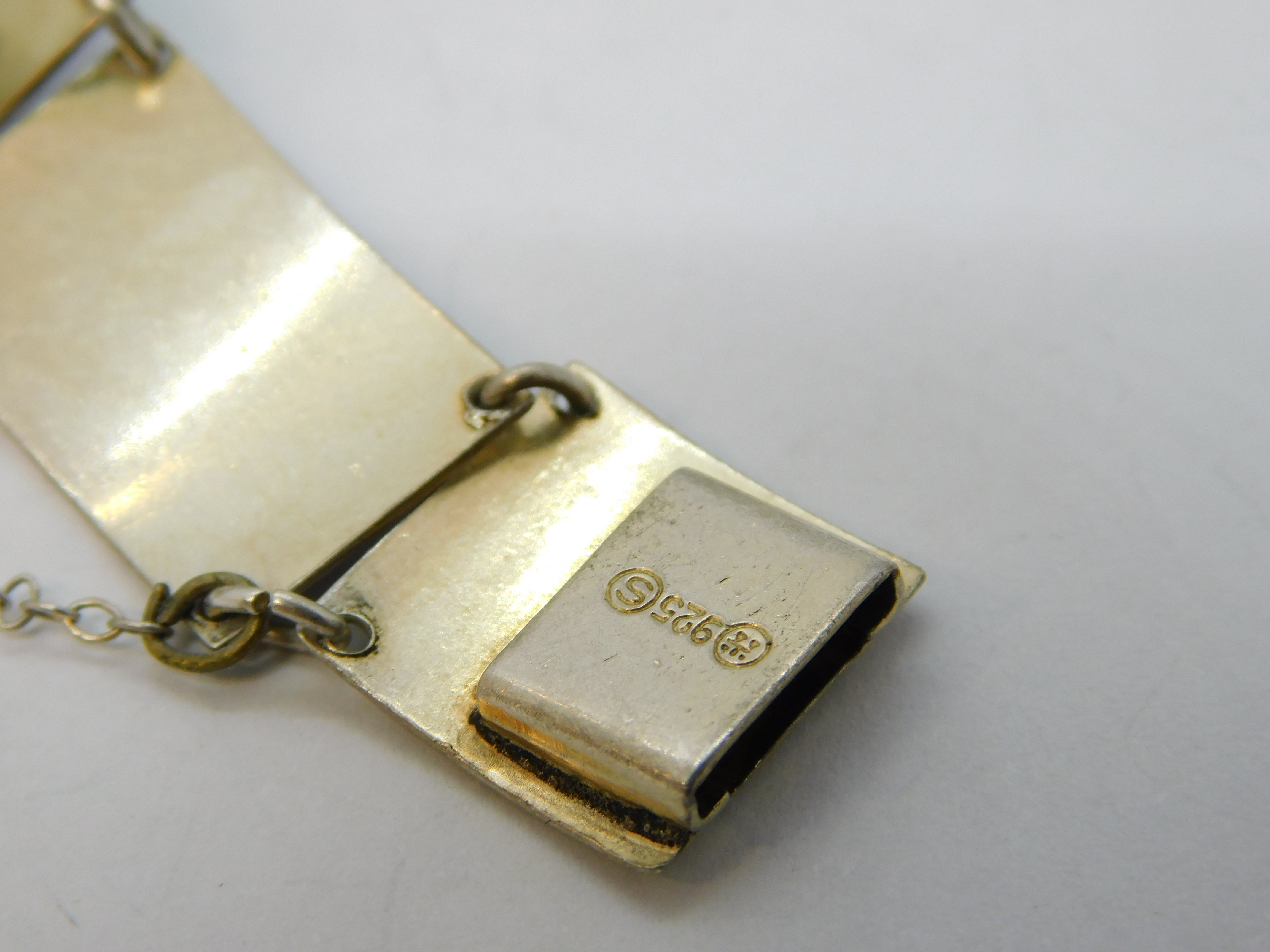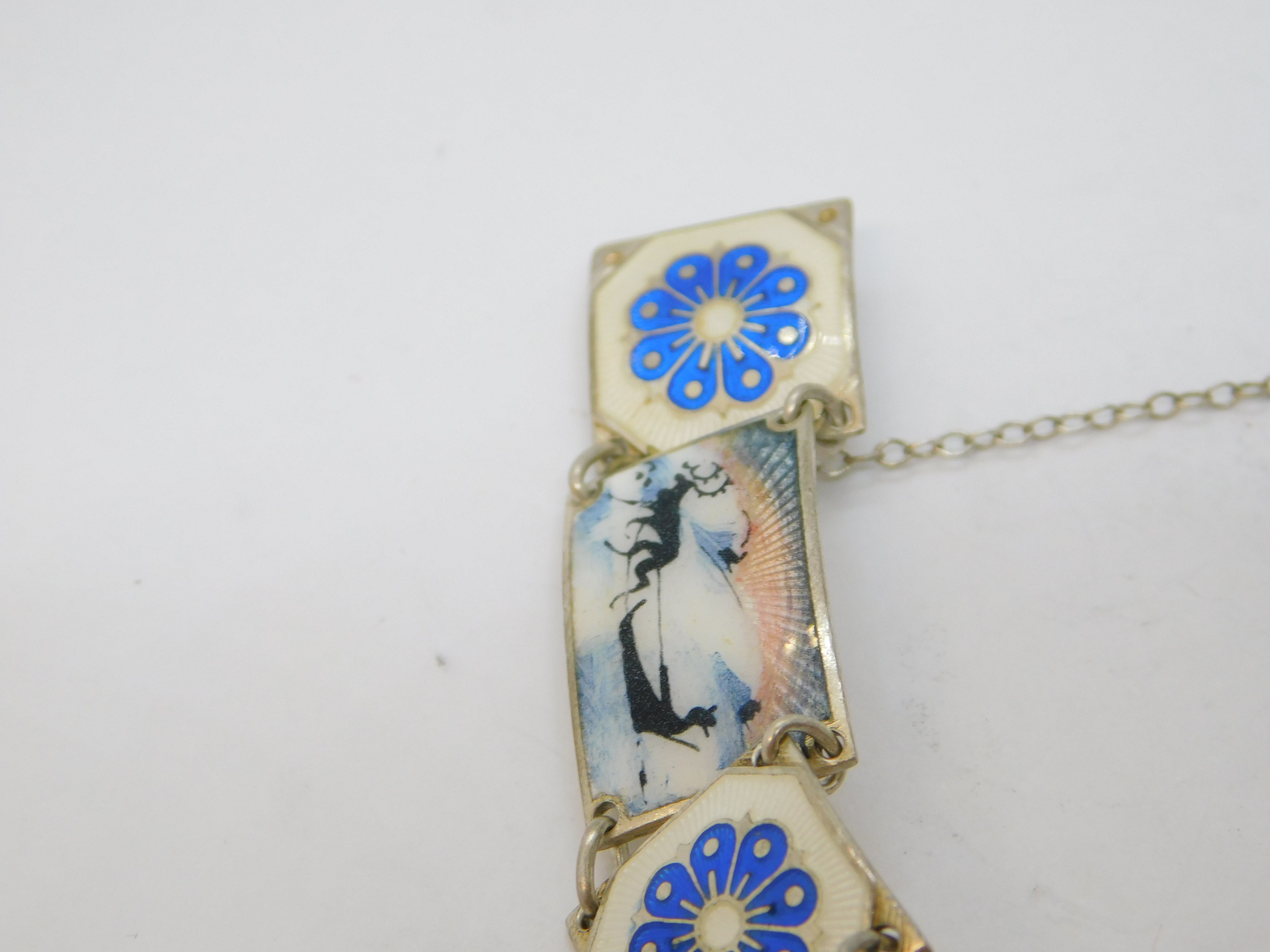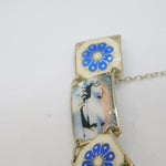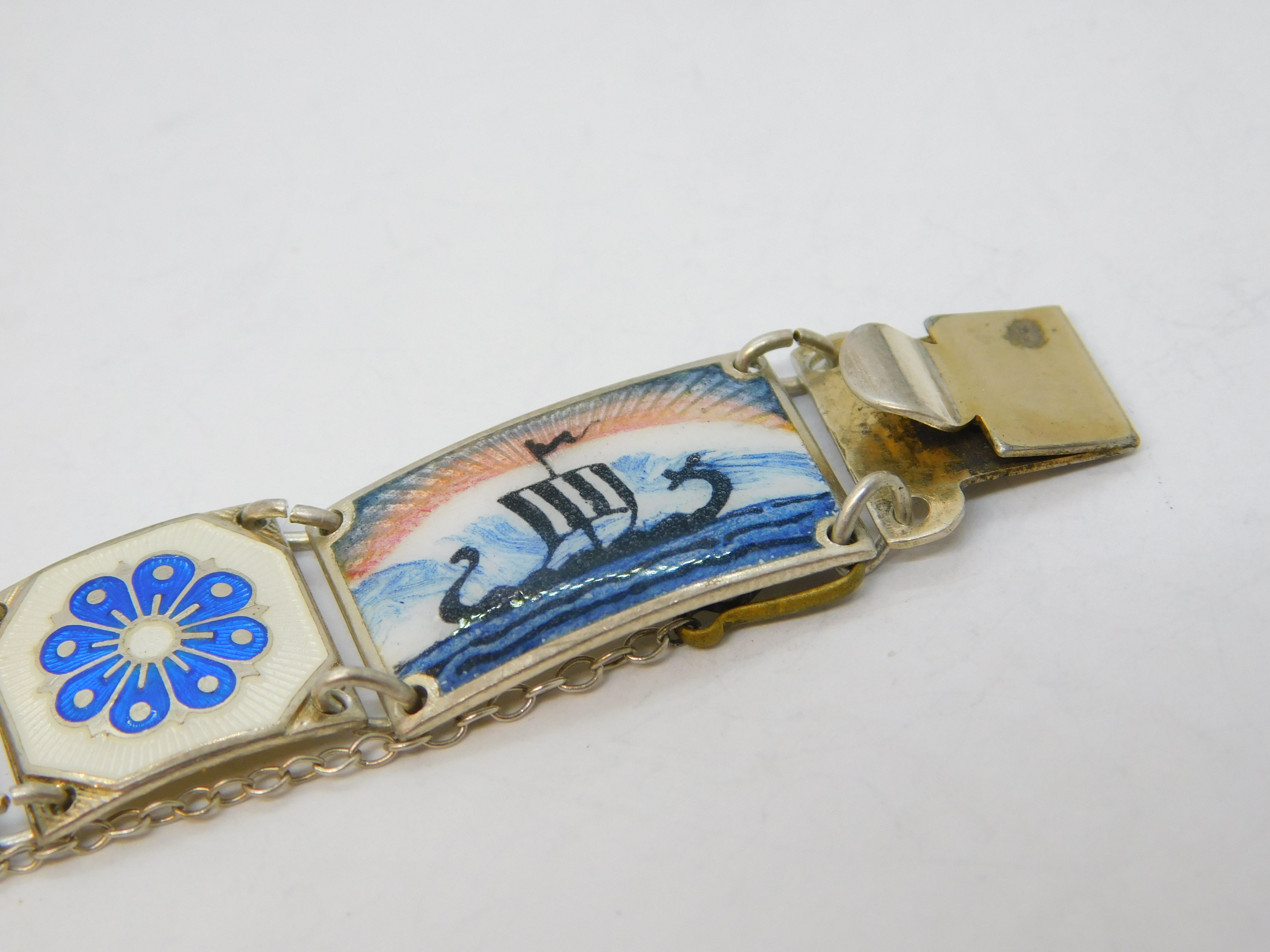 Norwegian Sterling Silver Enamel Winter Scenes Panel Bracelet Antique c1930