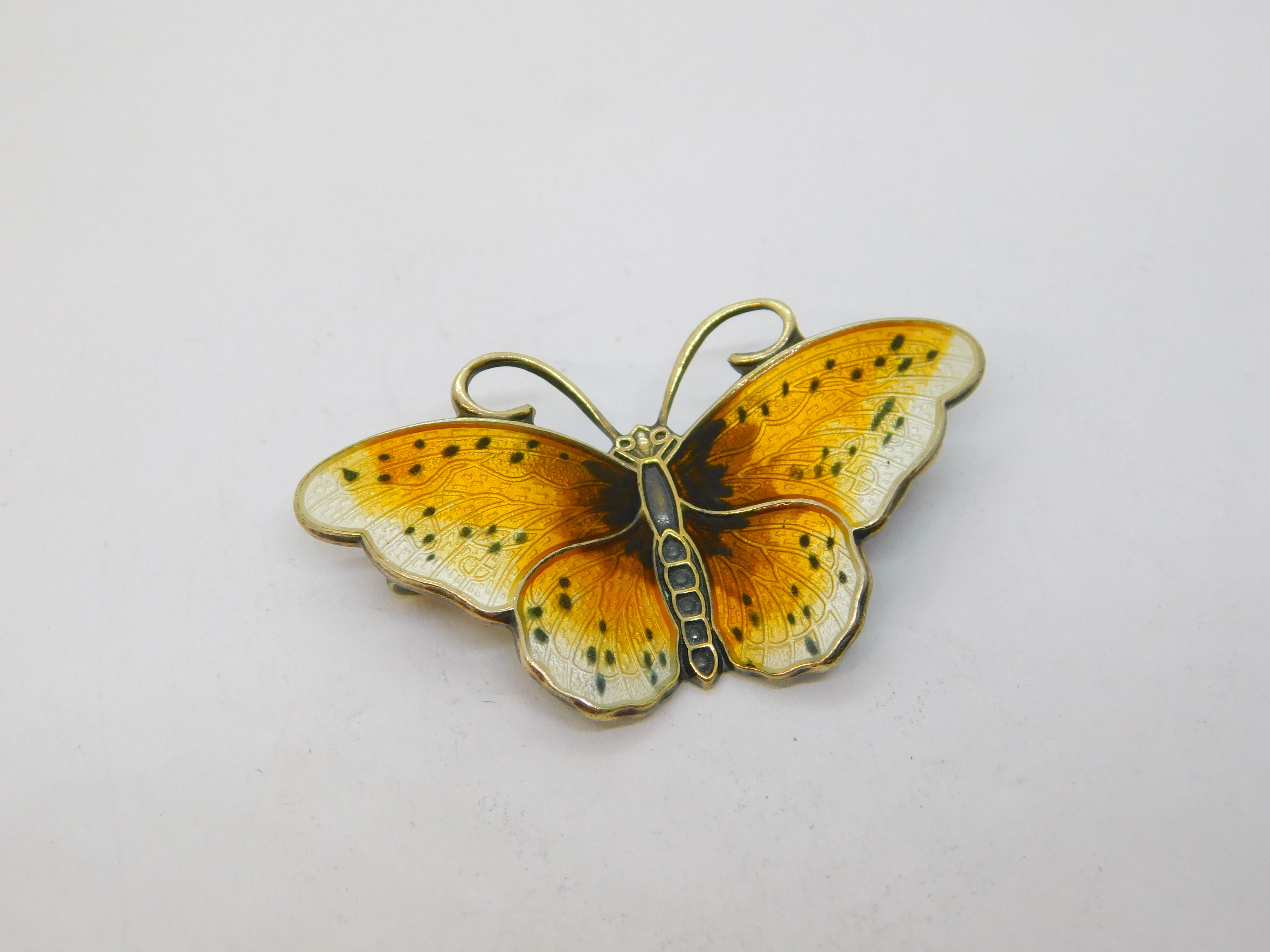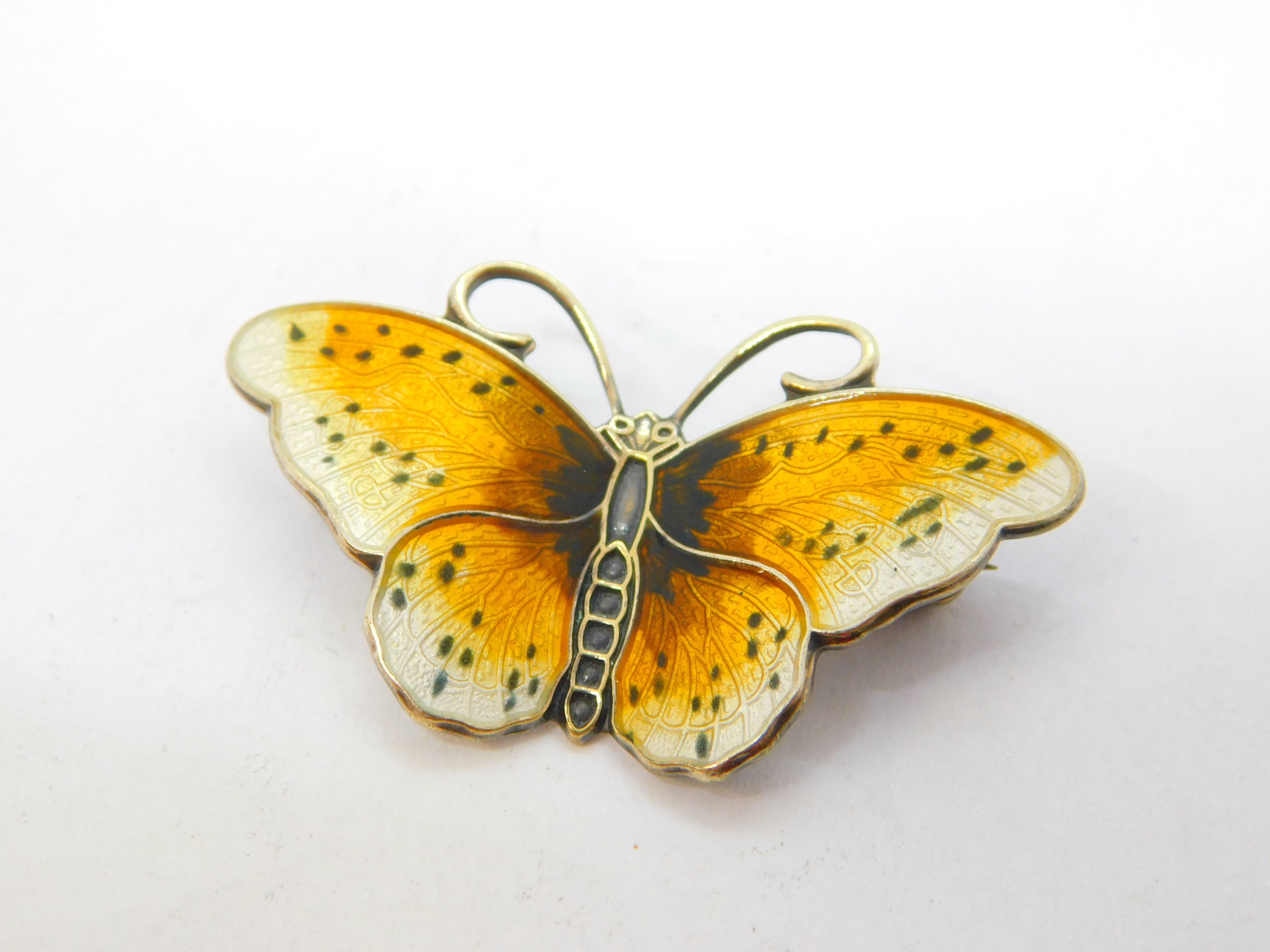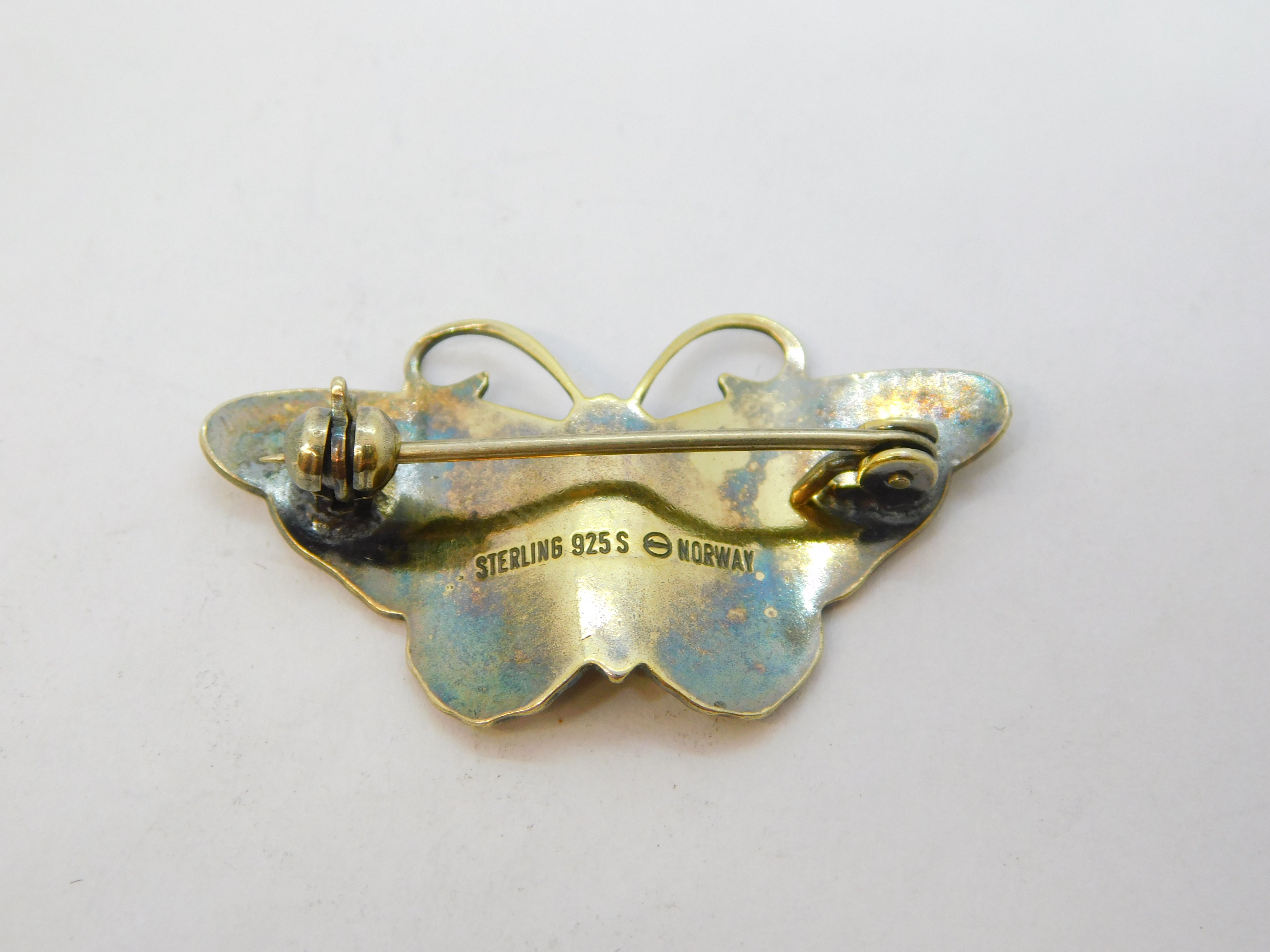 Norwegian Sterling Silver Gilt & Enamel Butterfly Brooch Pin Antique c1920 Deco