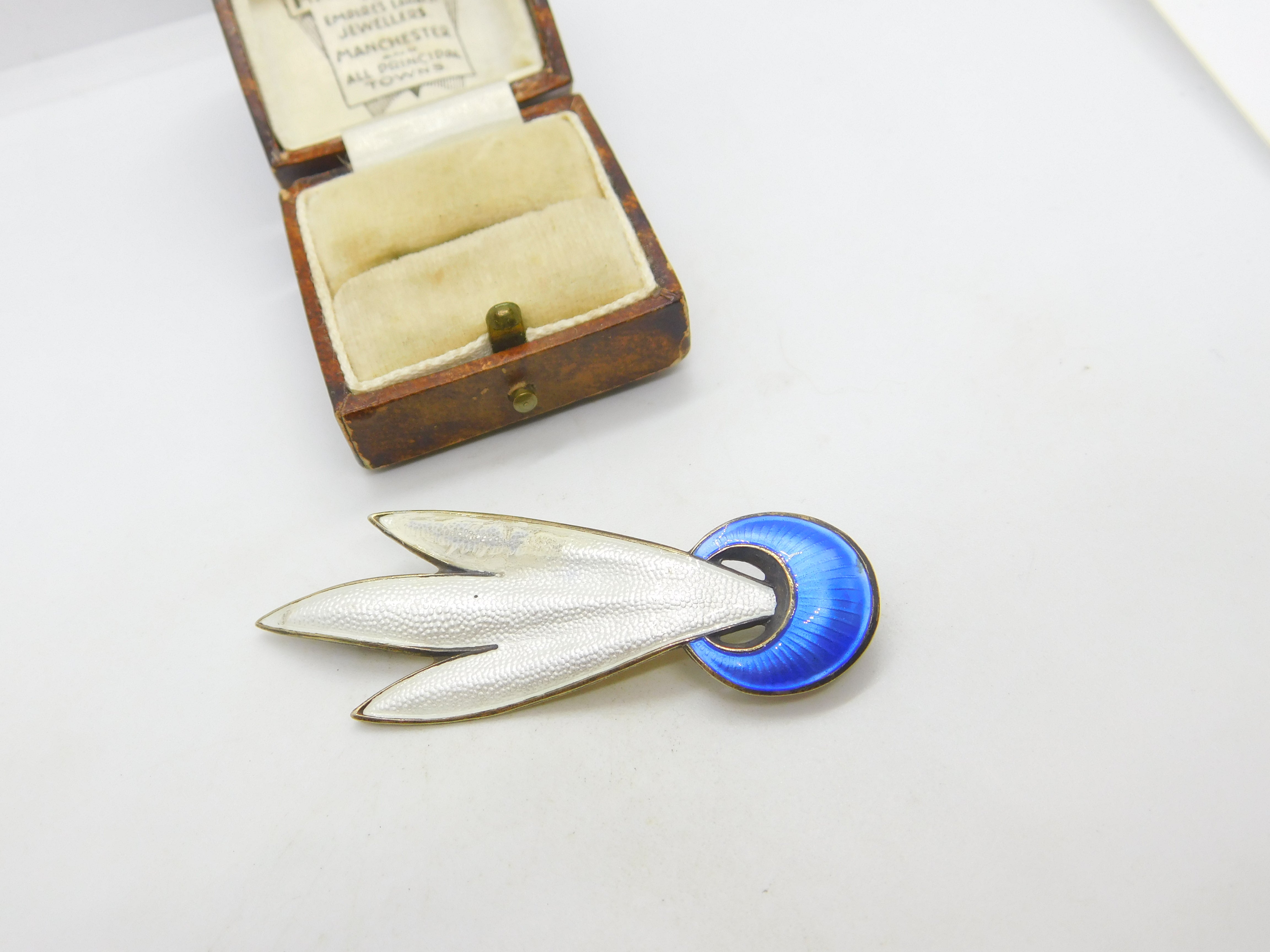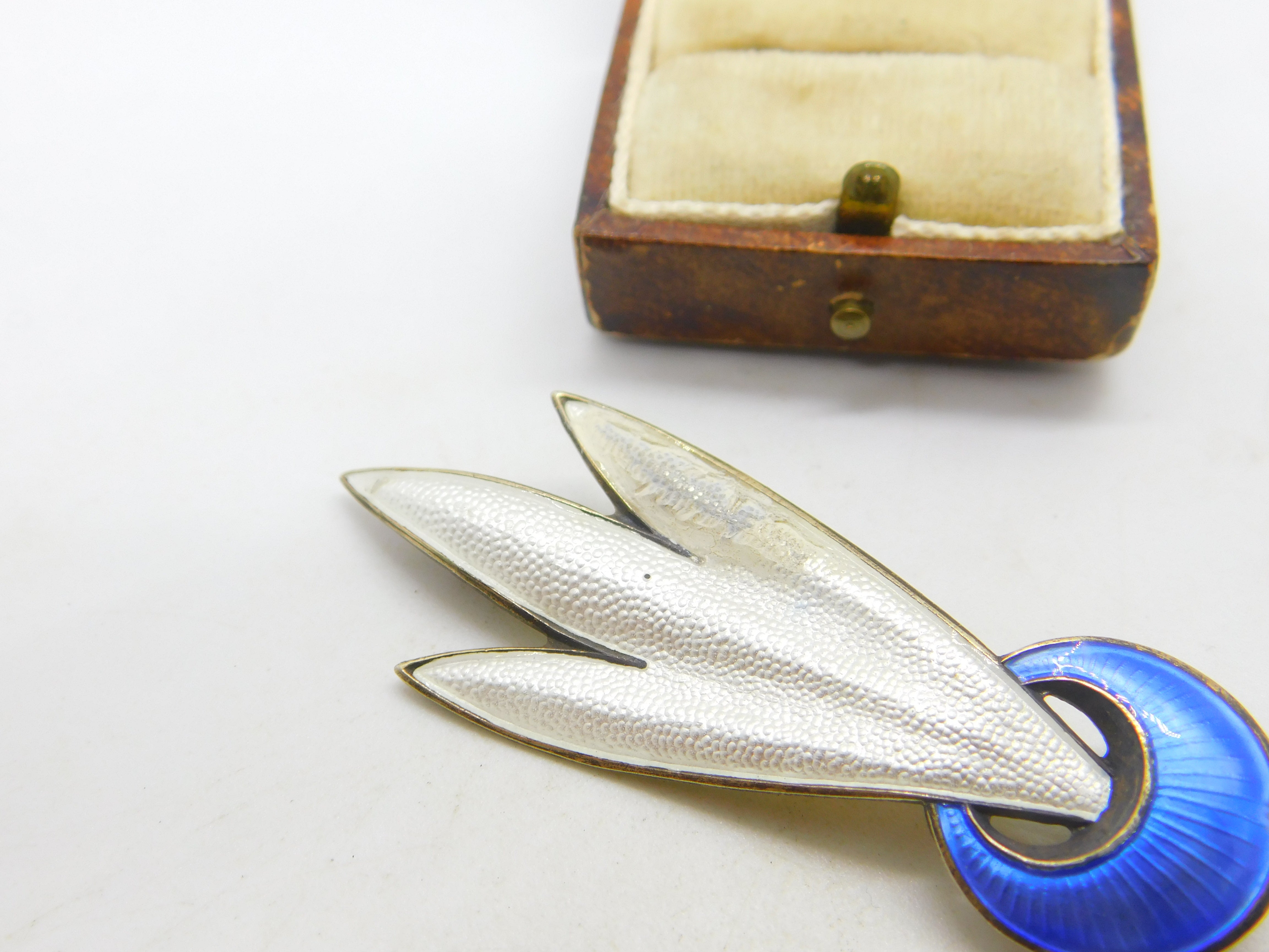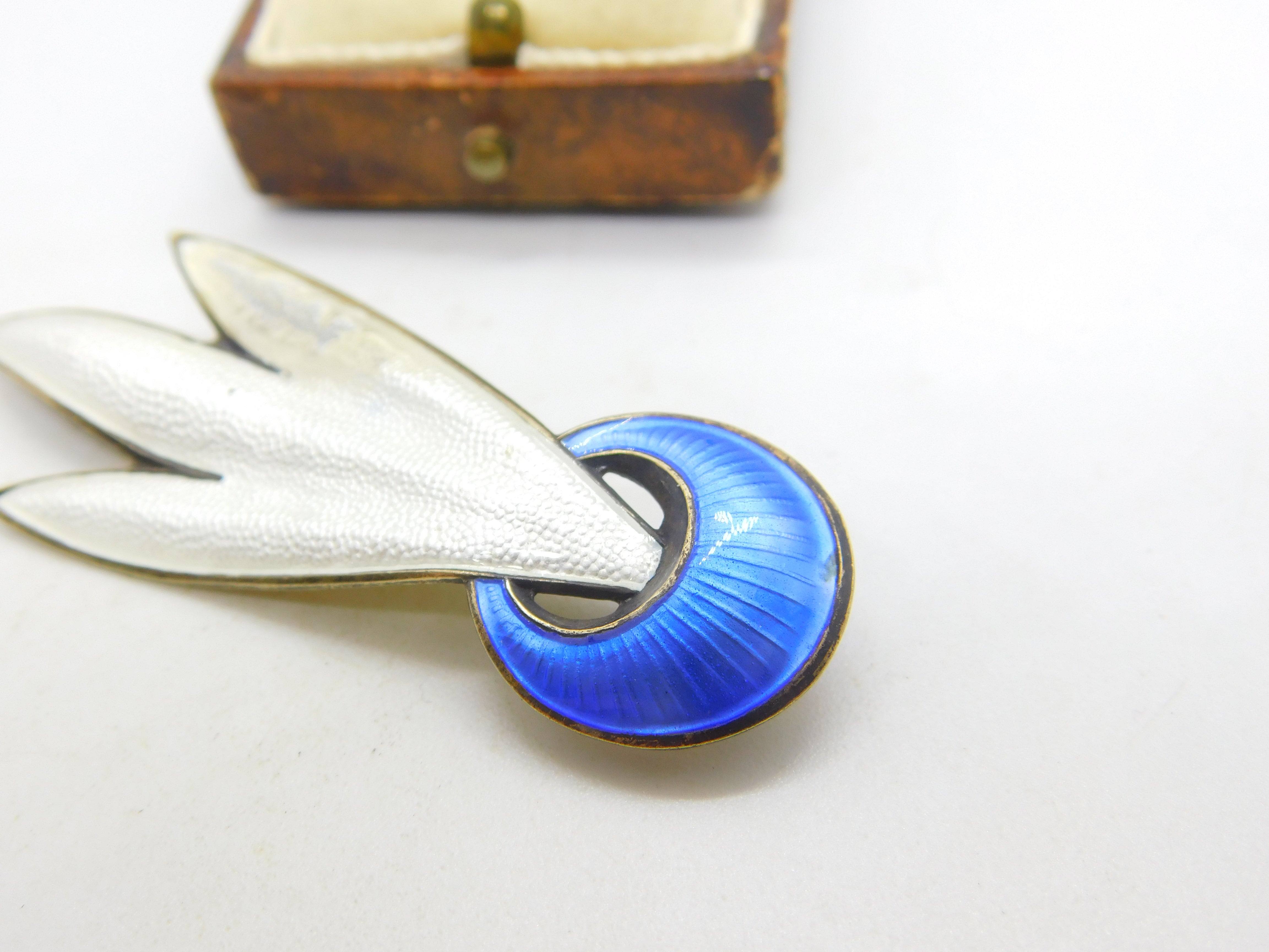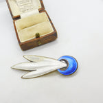 Details: A fantastic and wonderfully designed antique art deco Norwegian sterling silver gilt 'explosion' brooch with blue-white guilloche enamel hallmarked to the reverse by Aksel Holmsen c1940, enamel loss to the white area please note. This is a wonderful item that would make a perfect gift or addition to any collection. The BOX pictured is for PRESENTATION ONLY and is NOT included in the listings but used to frame the pictures unless specifically stated otherwise.