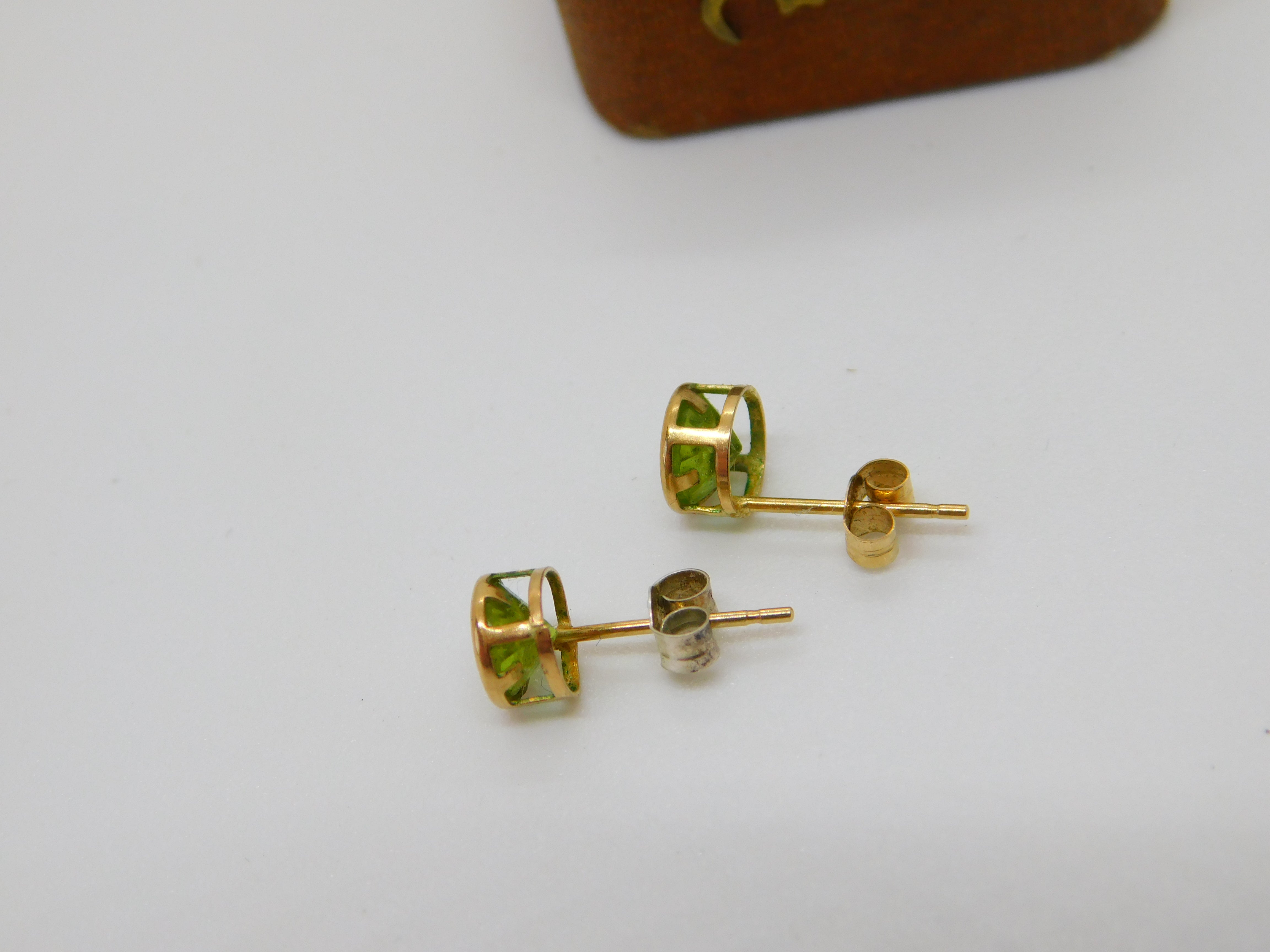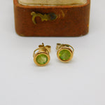 Pair of 10ct Yellow Gold Peridot Set Stud Earrings Vintage c1990