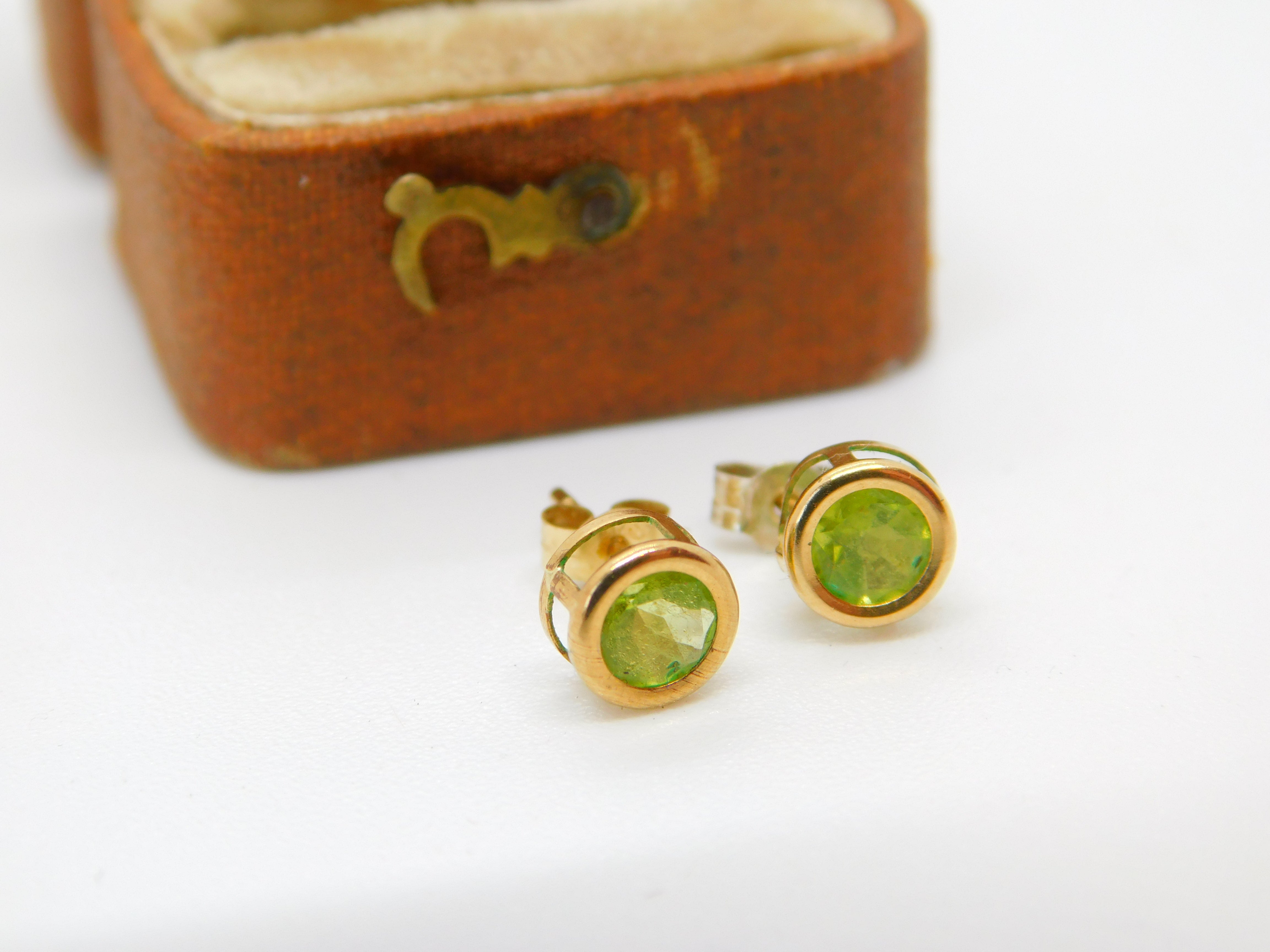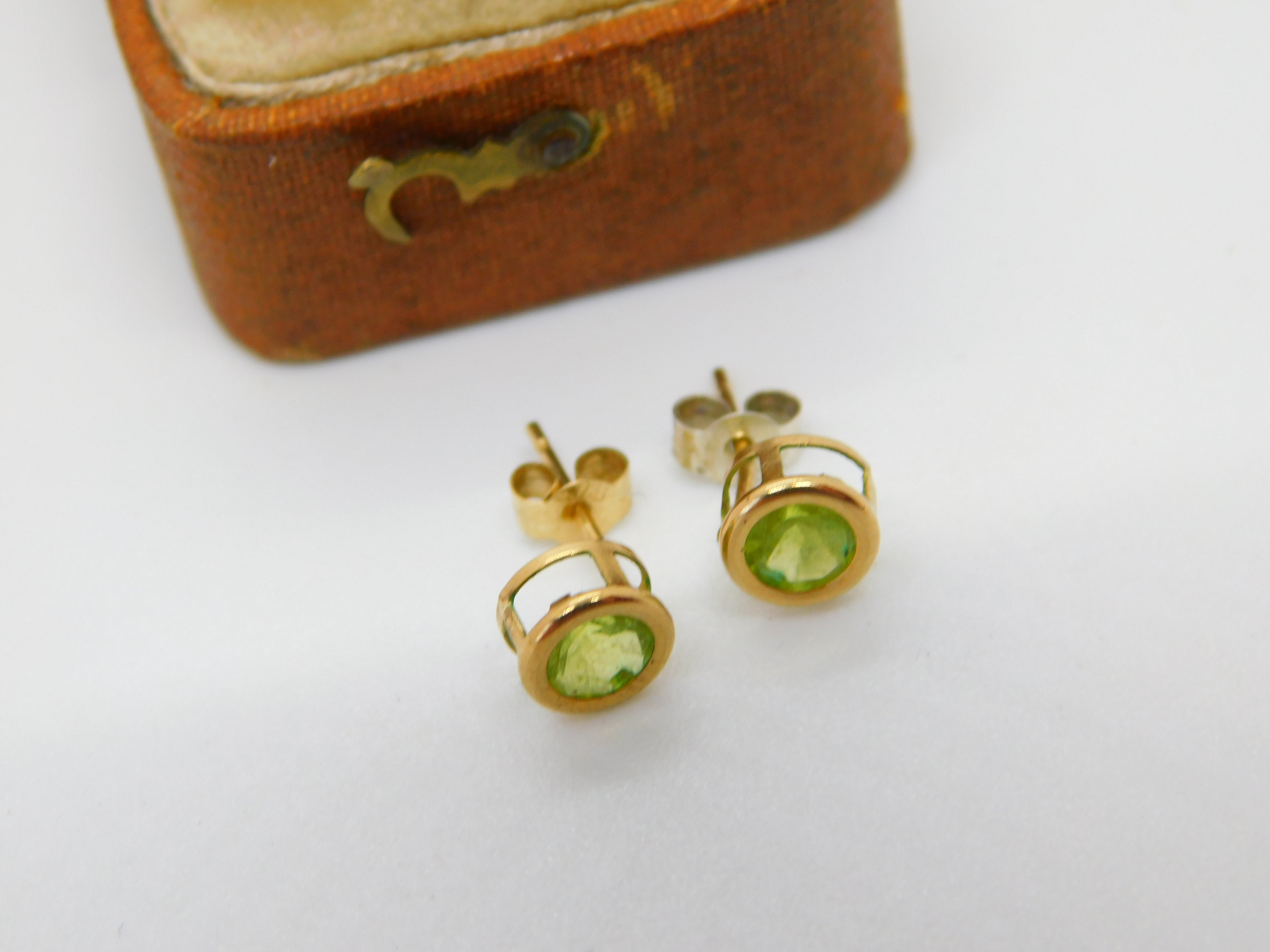 Details: A fantastic and wonderfully designed vintage 10ct yellow gold peridot set stud earrings with lovely detailing c1990. One of the backs is silver please note. This is a wonderful item that would make a perfect gift or addition to any collection. The BOX pictured is for PRESENTATION ONLY and is NOT included in the listings but used to frame the pictures unless specifically stated otherwise.