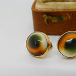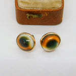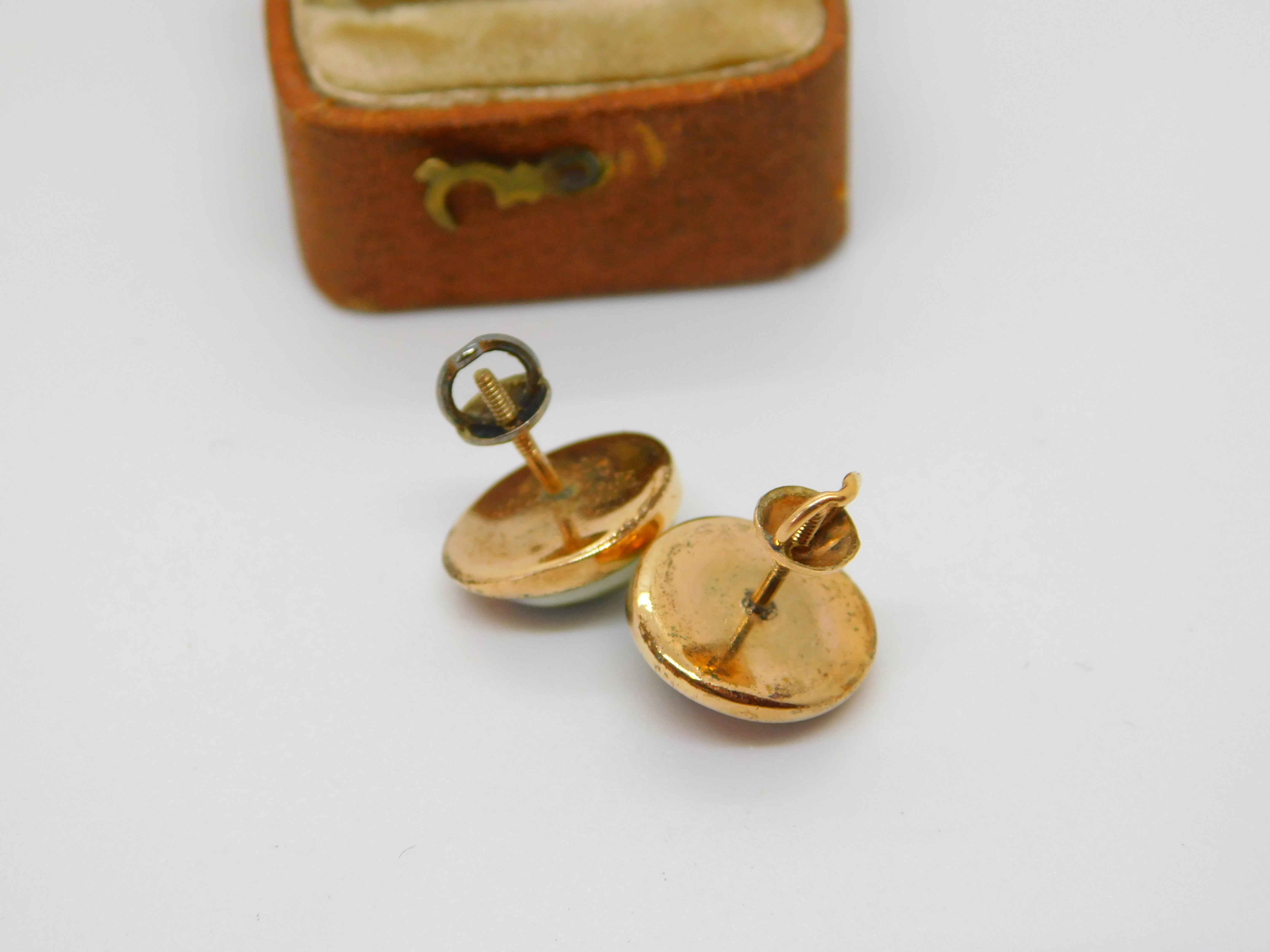 Pair of 10ct Yellow Gold Shell Set Stud Earrings Vintage c1970