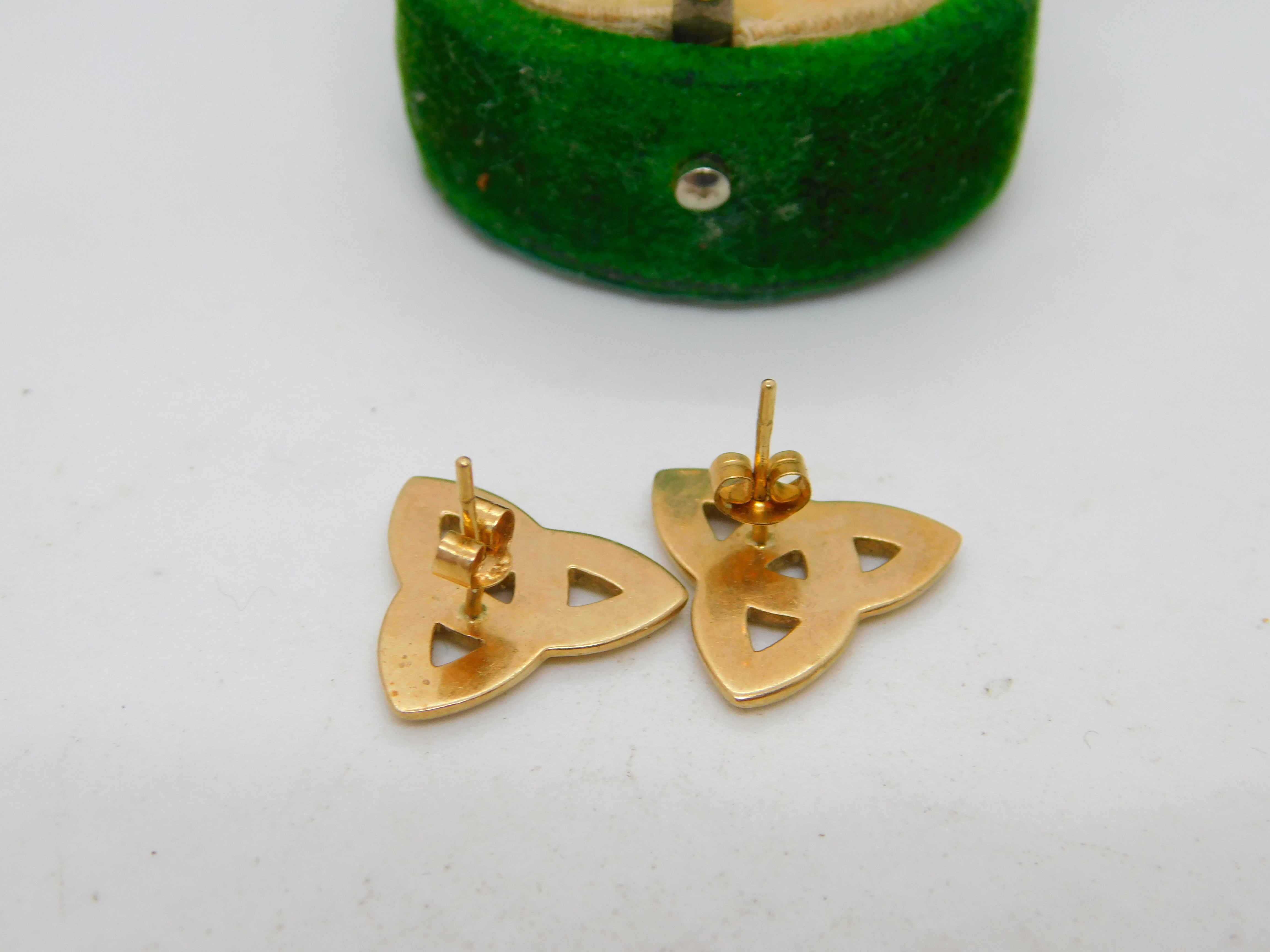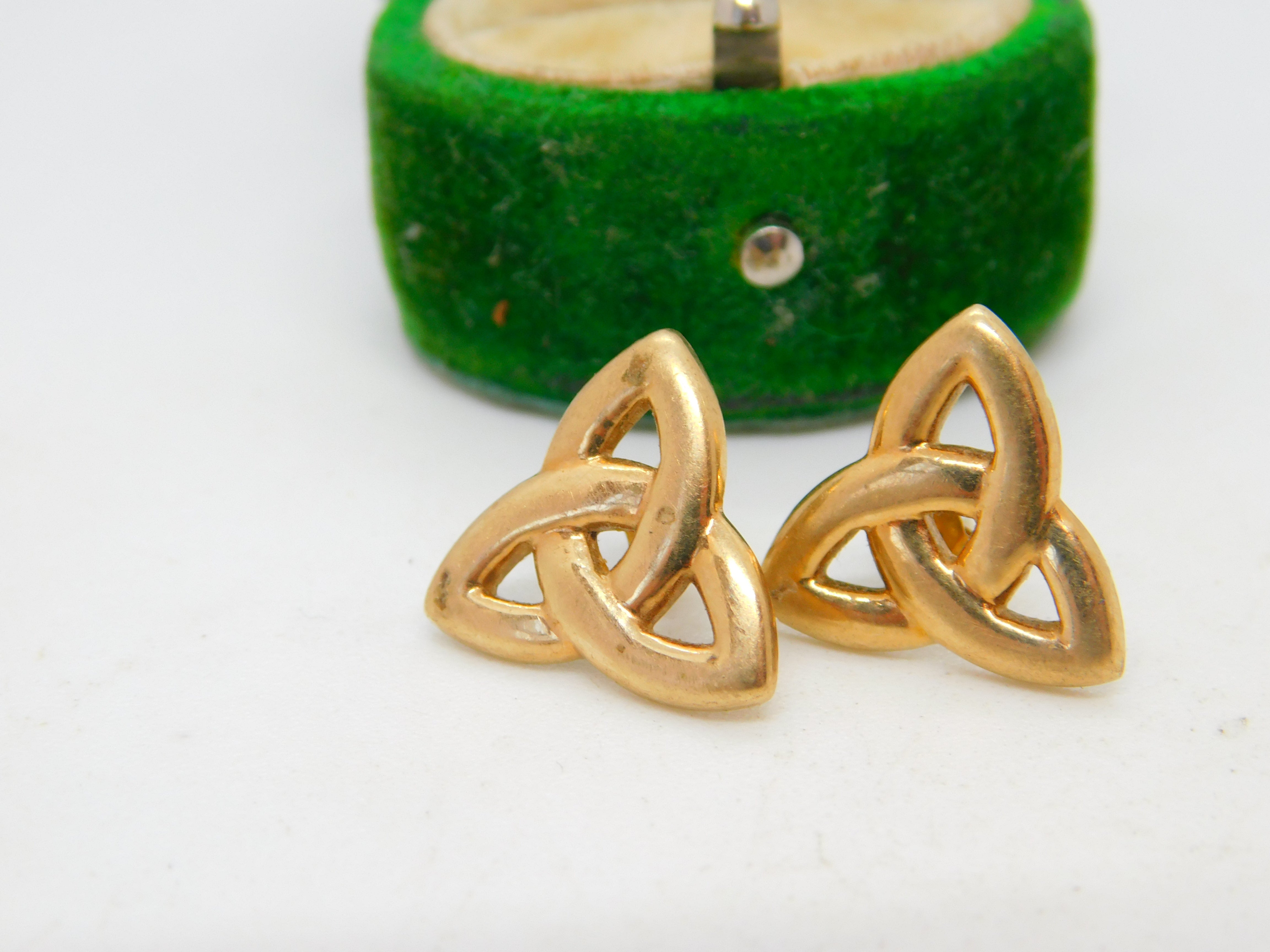 Pair of 9ct Yellow Gold Celtic Knot Stud Earrings Vintage c1980 Birmingham
