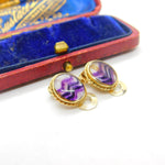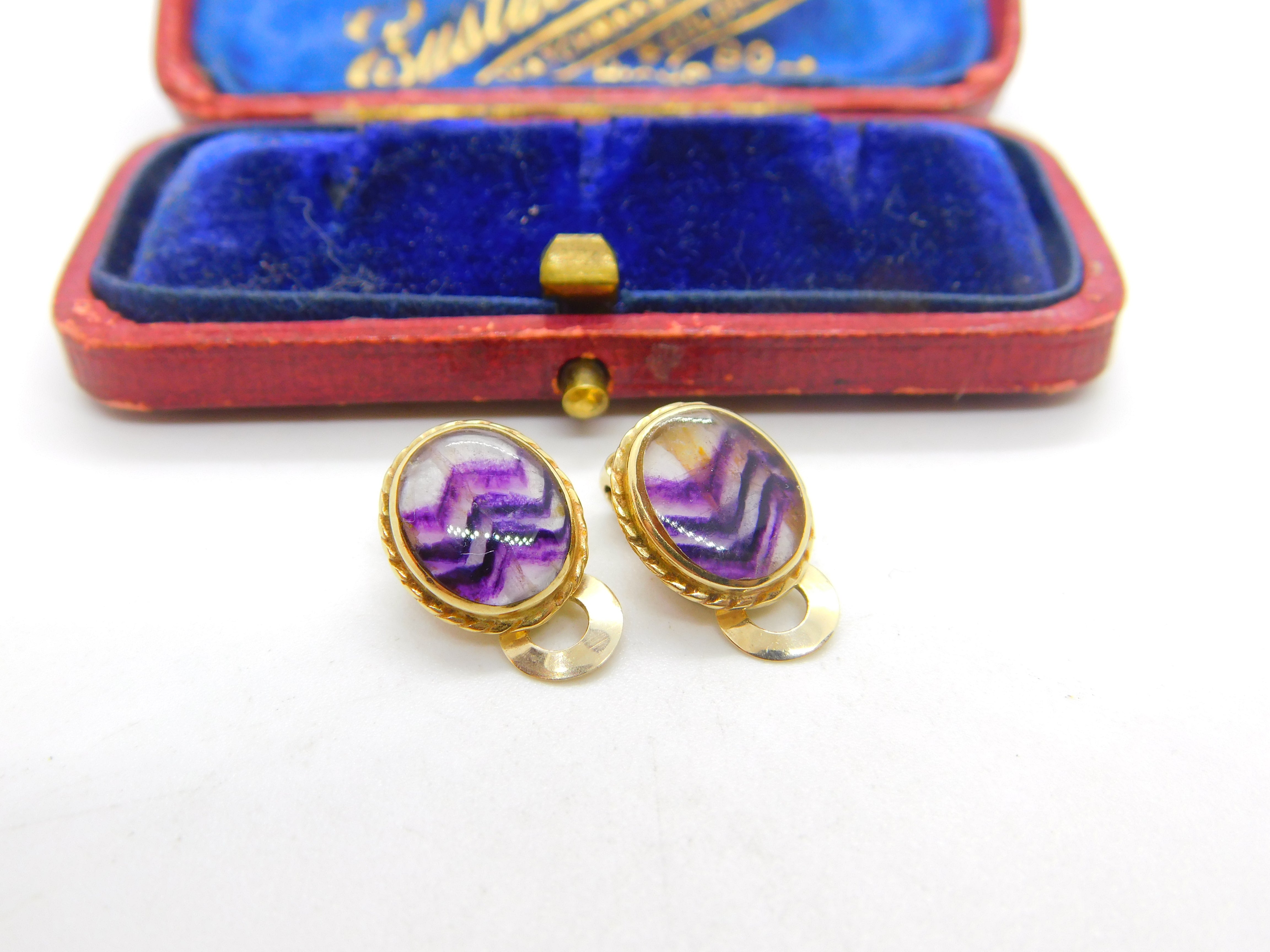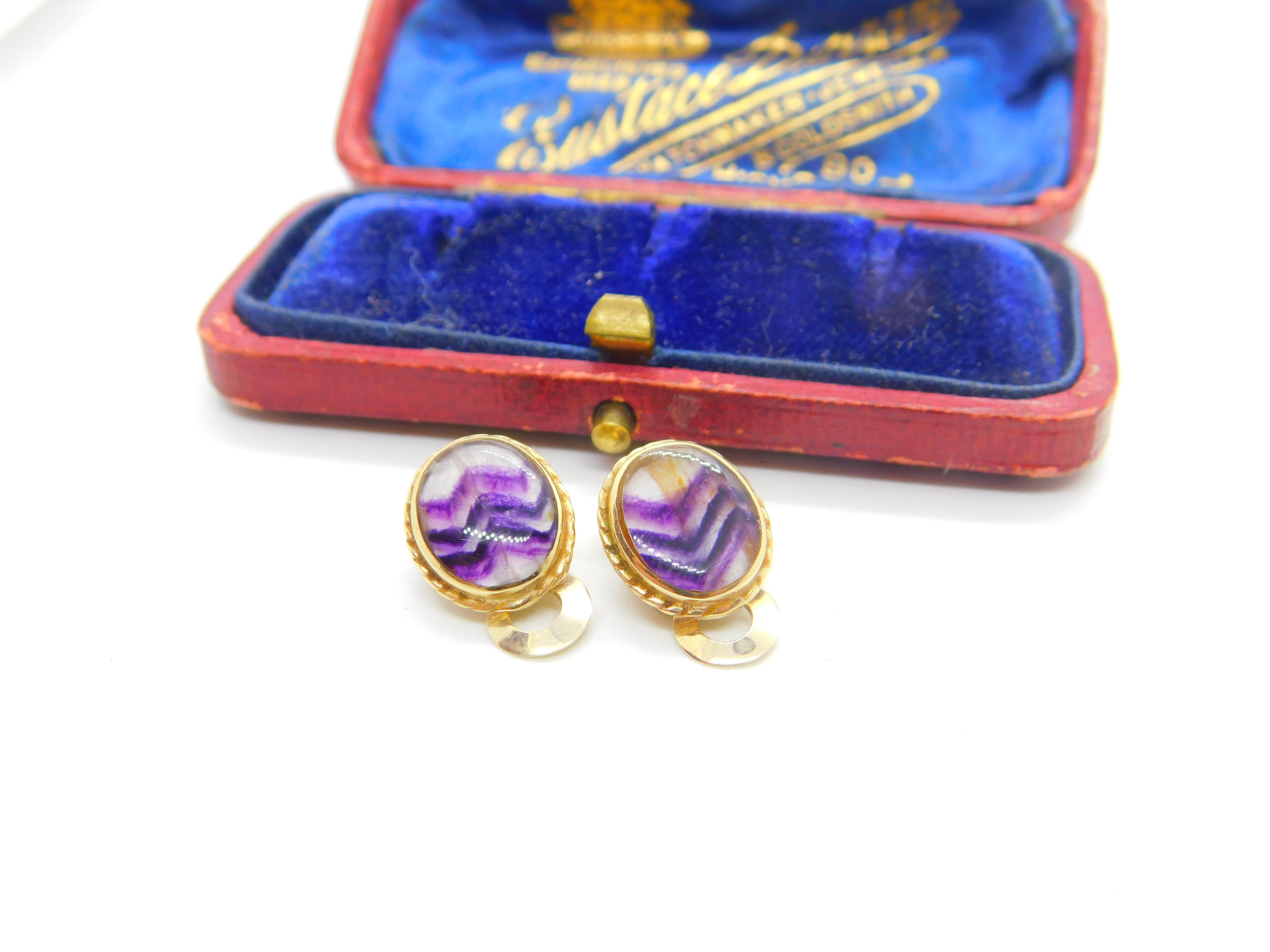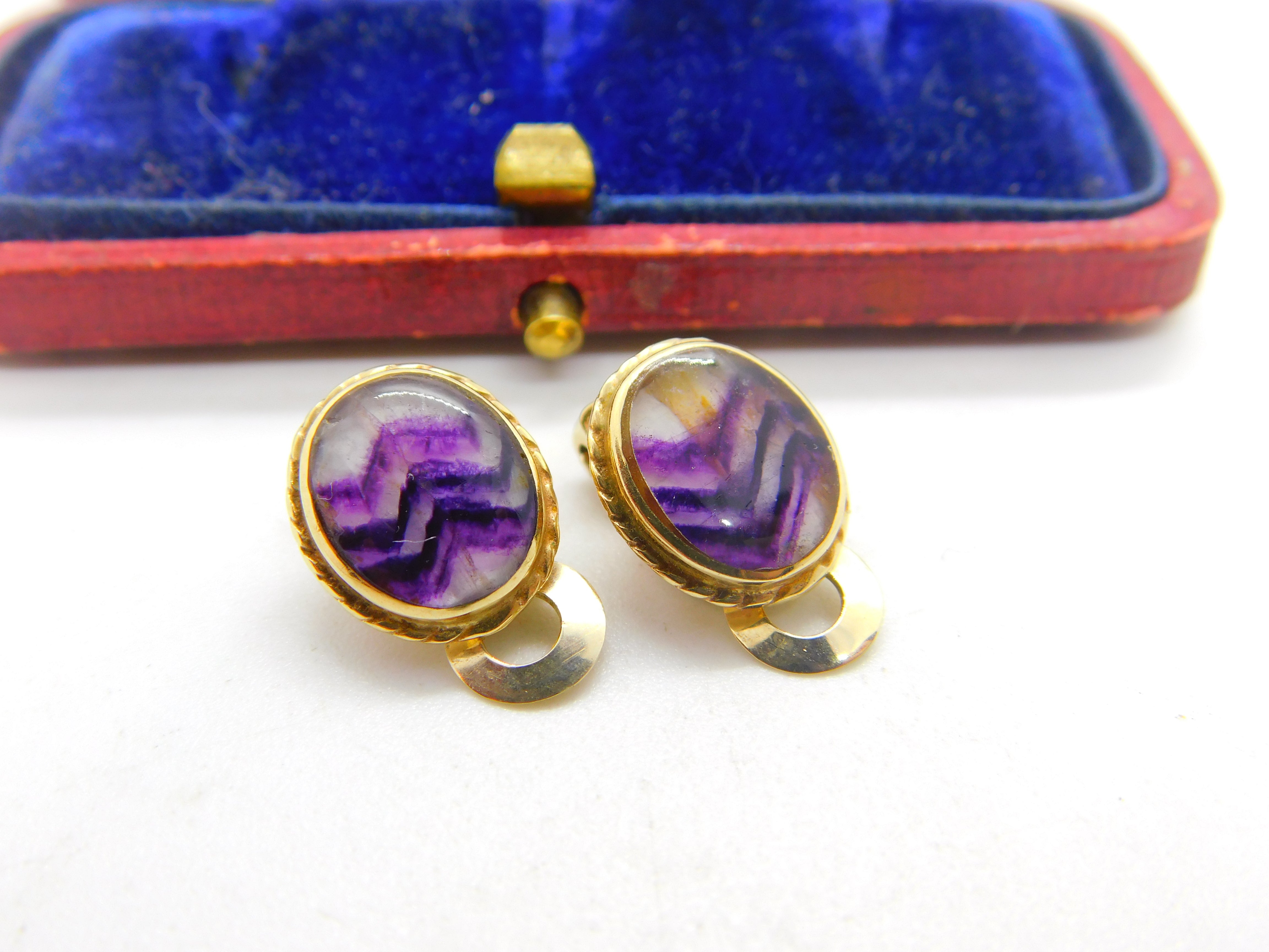 Pair of 9ct Yellow Gold & Derbyshire Blue John Clip-On Earrings 1996 Sheffield