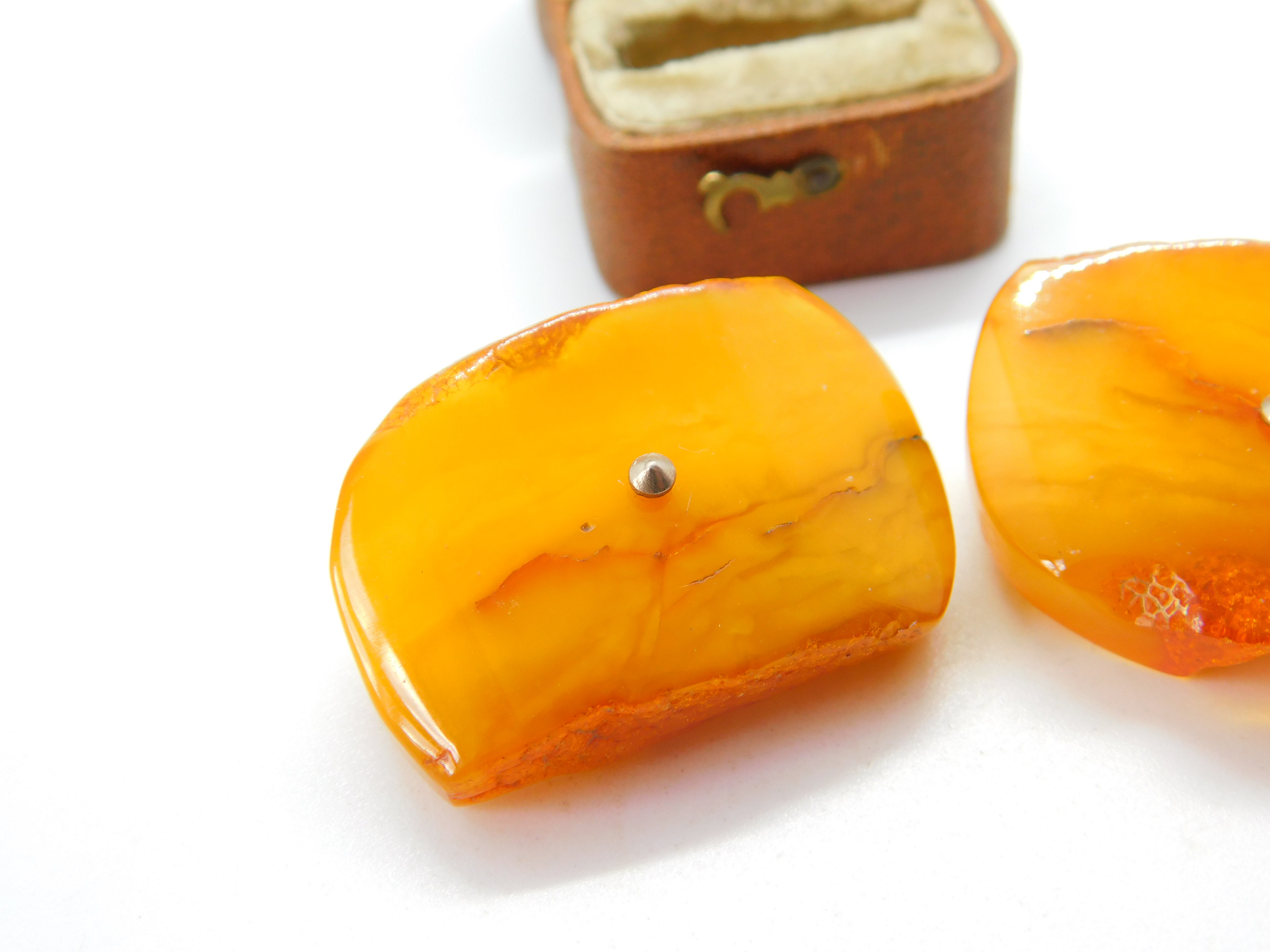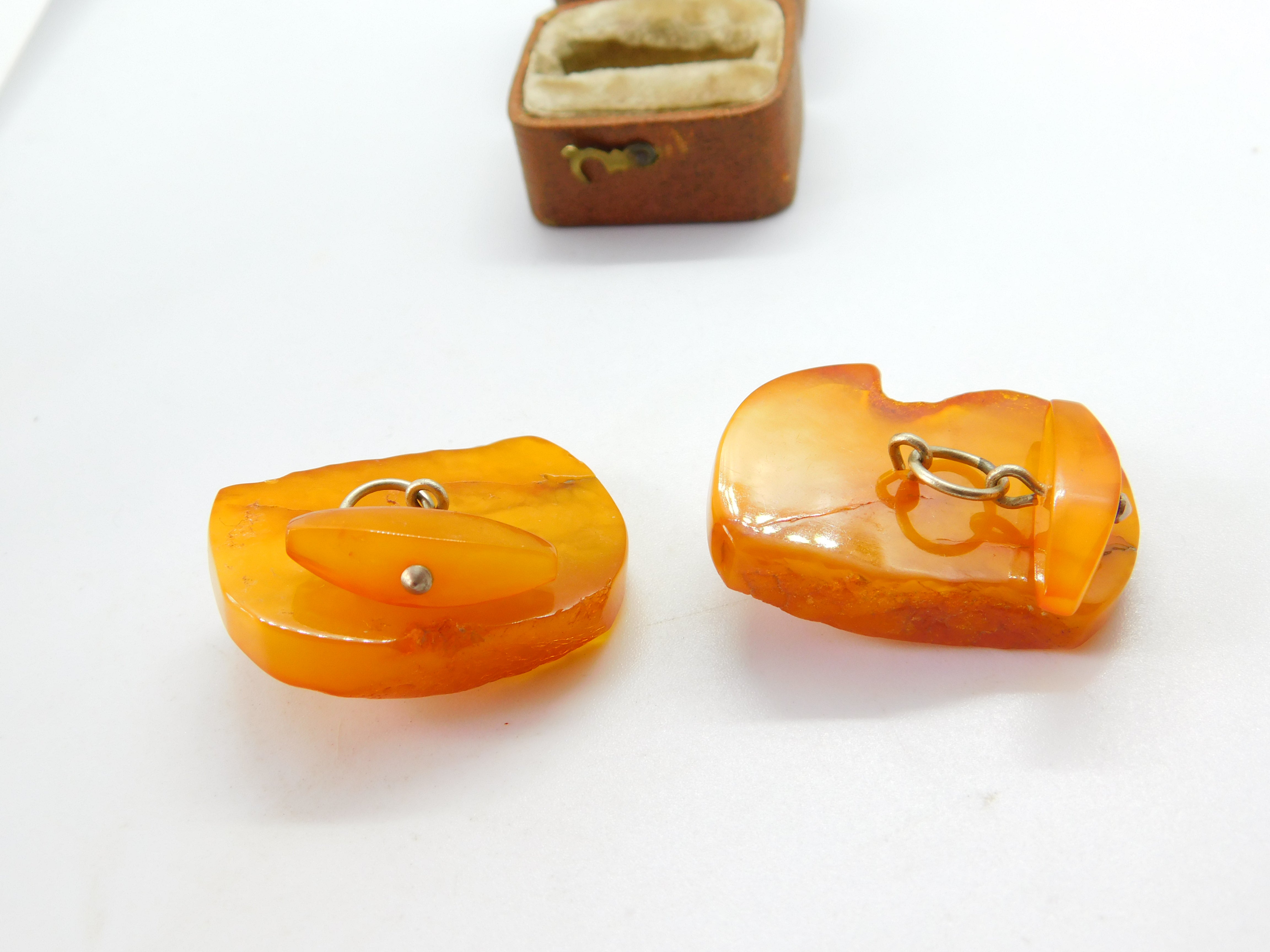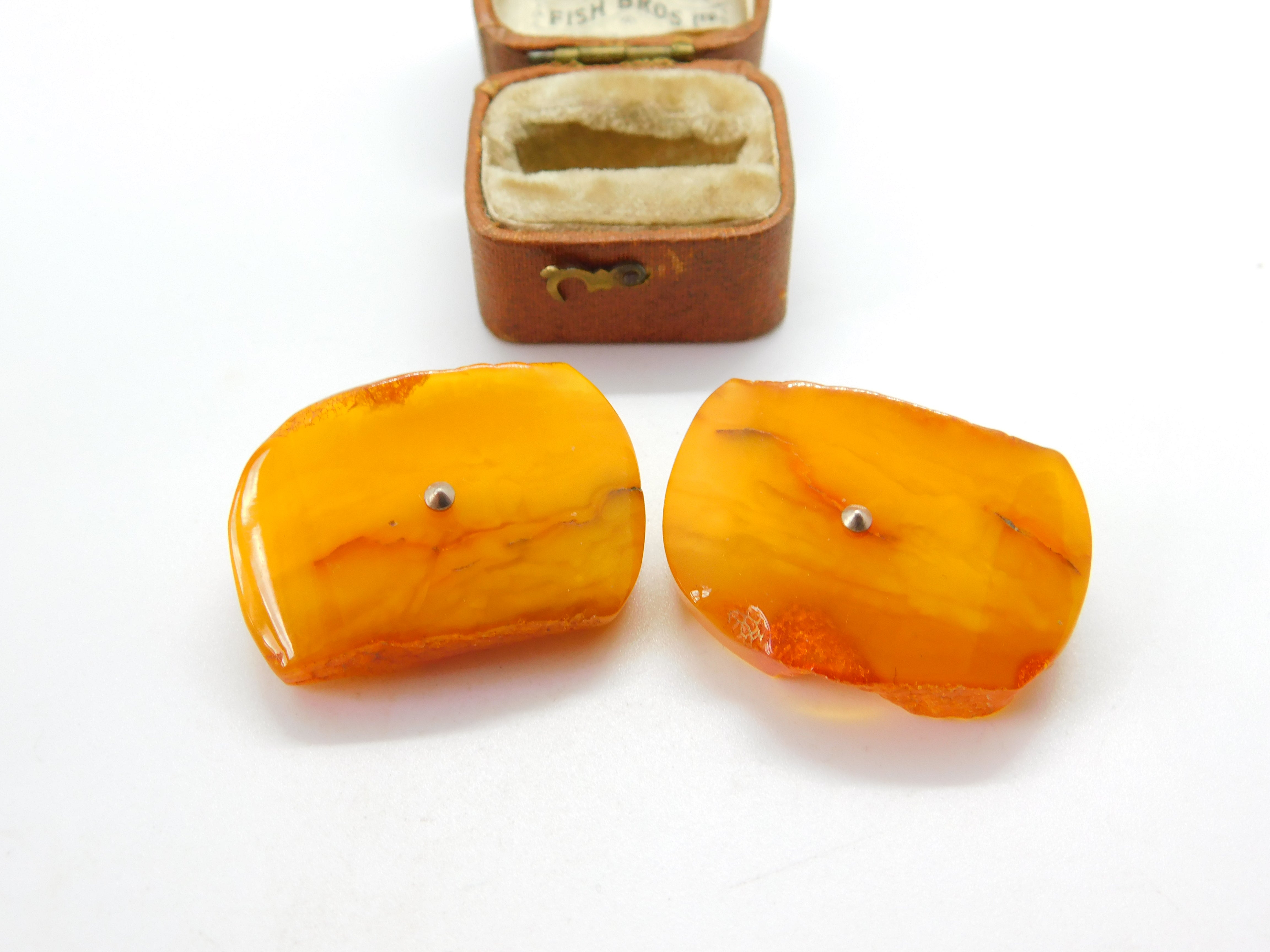 Pair of Carved Natural Baltic Amber & Sterling Silver Statement Cufflinks c1920