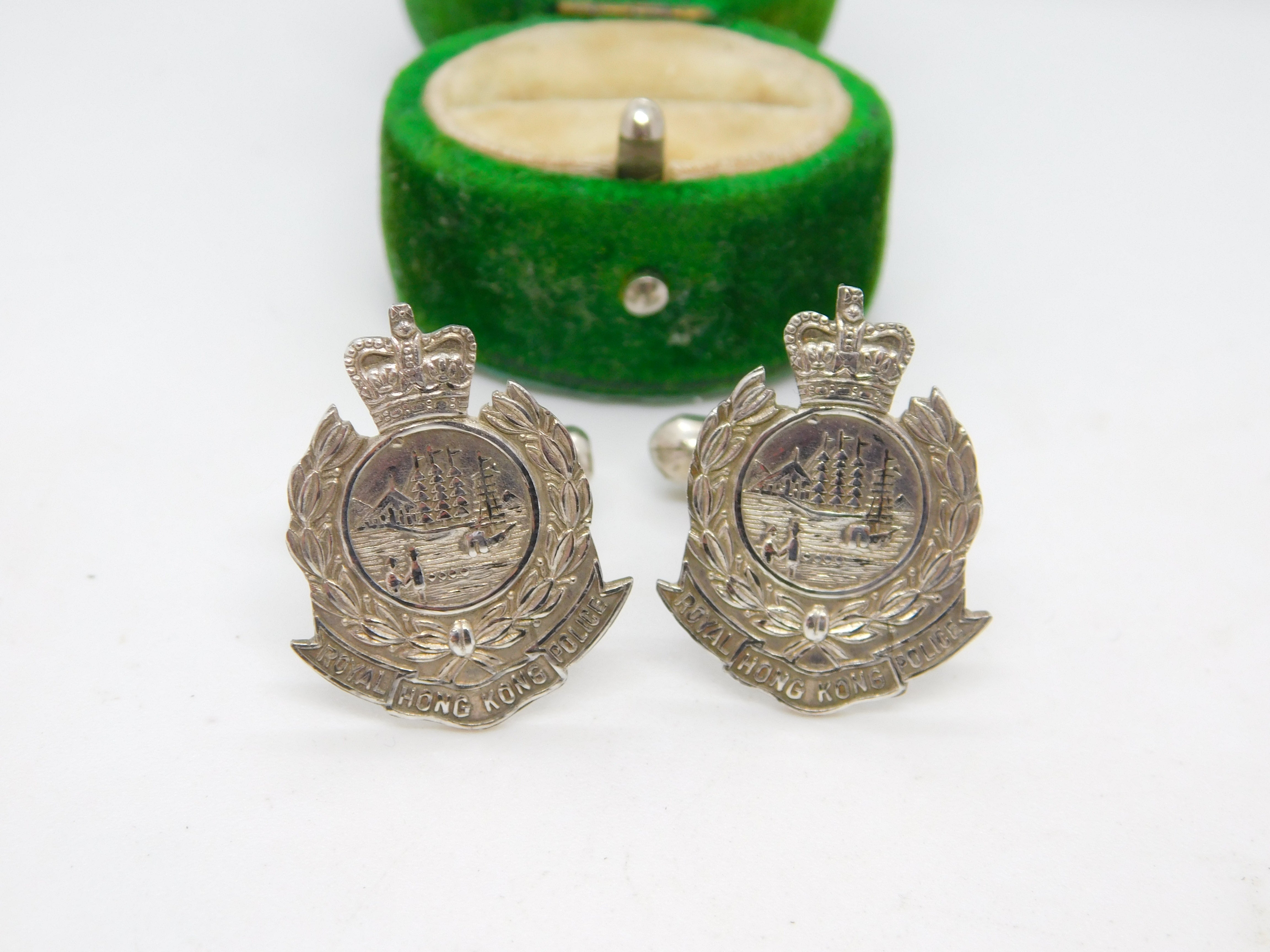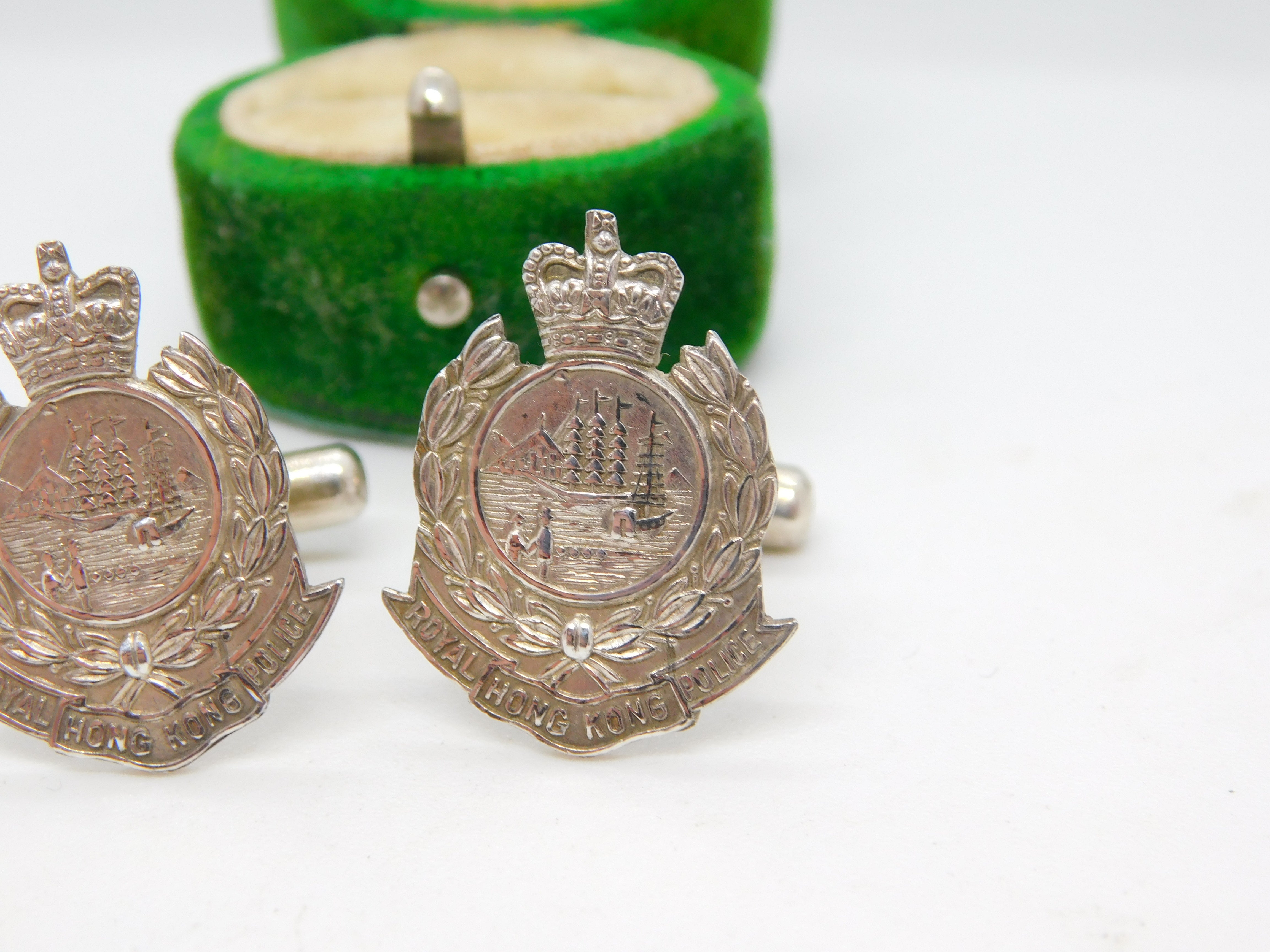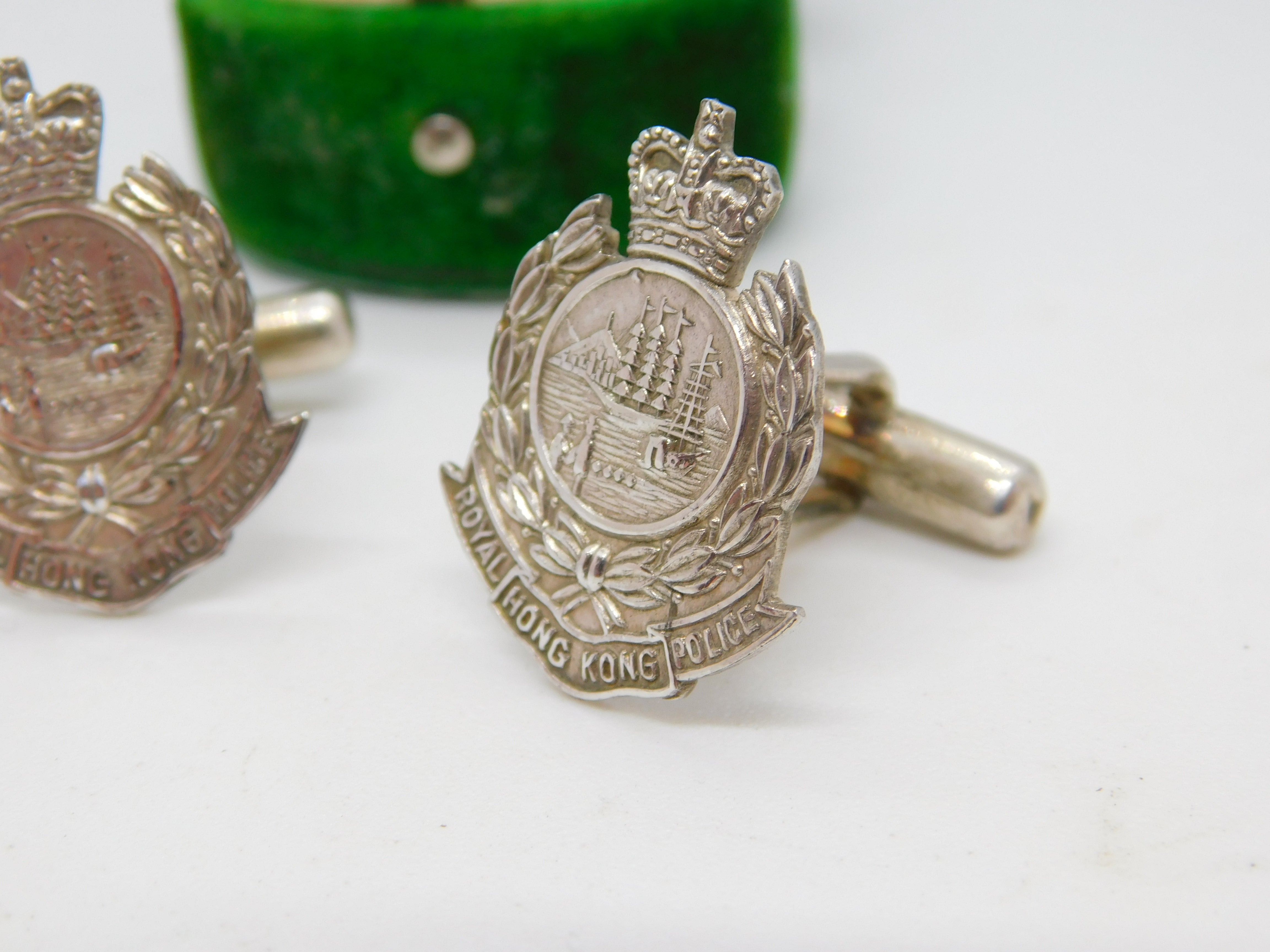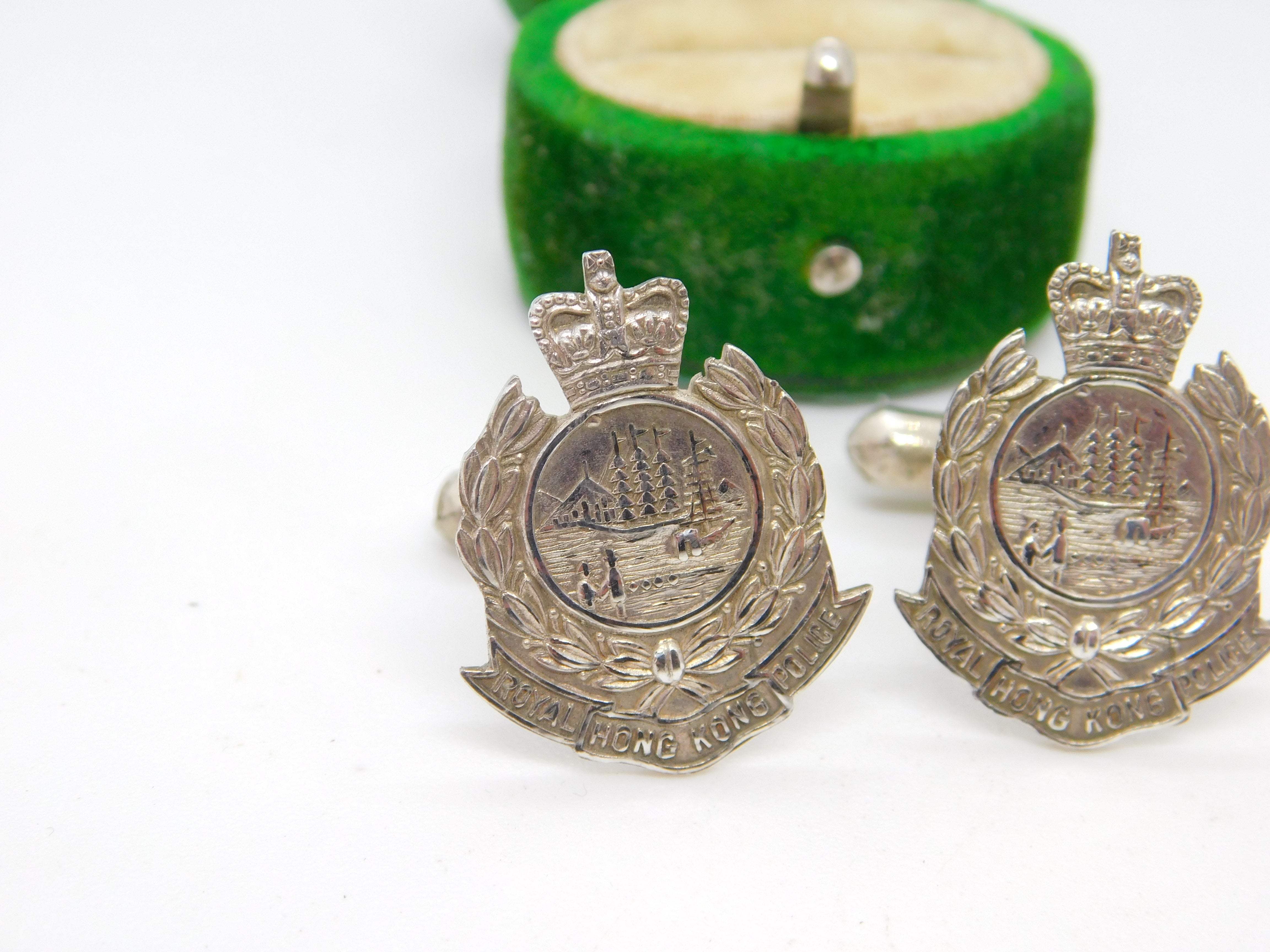 Pair of Sterling Silver 'Royal Hong Kong Police' Officers Cufflinks Vintage 1960