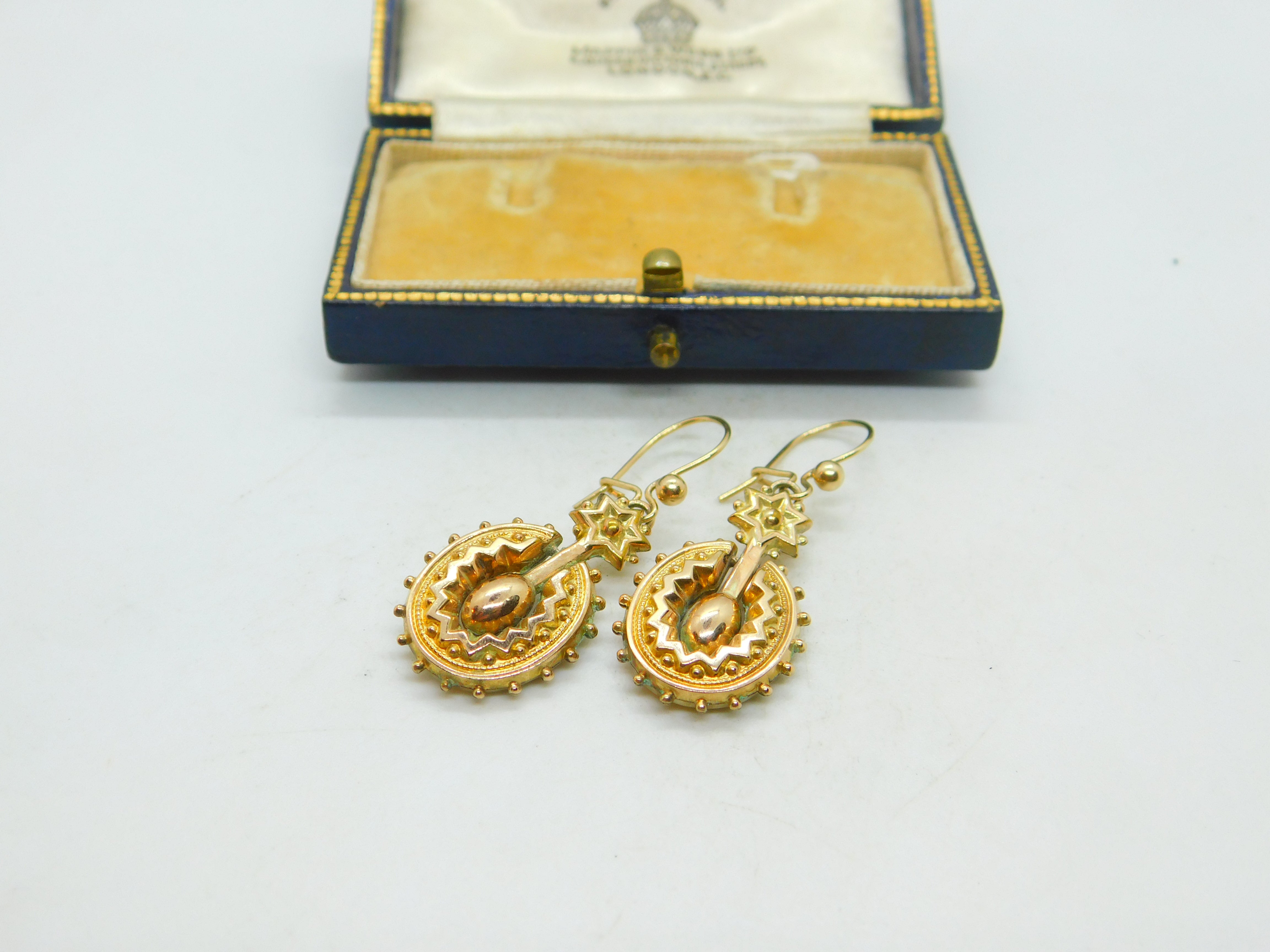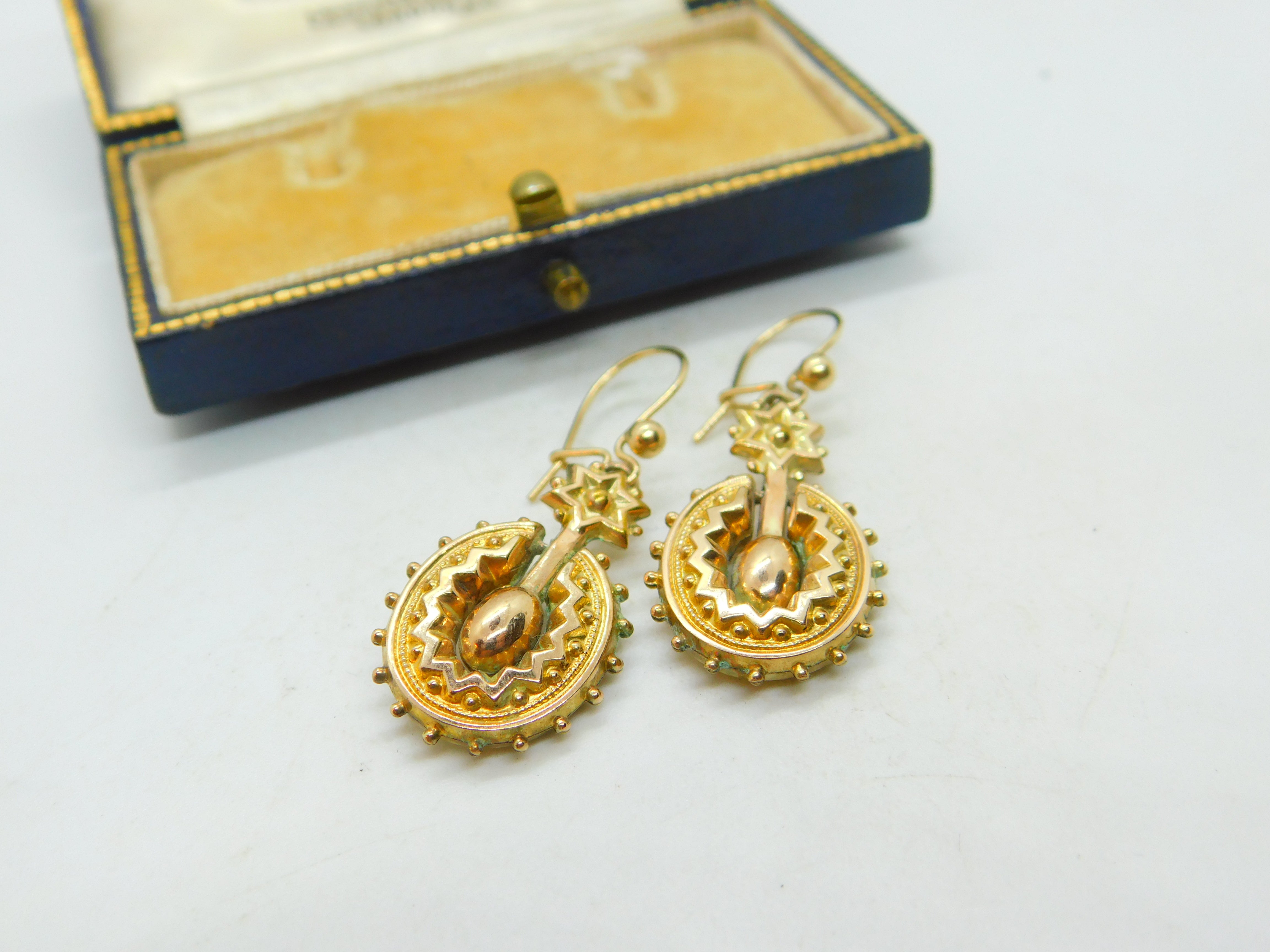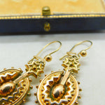 Pair Of Victorian 9ct Yellow Gold Etruscan Style Starburst Earrings Antique 1860