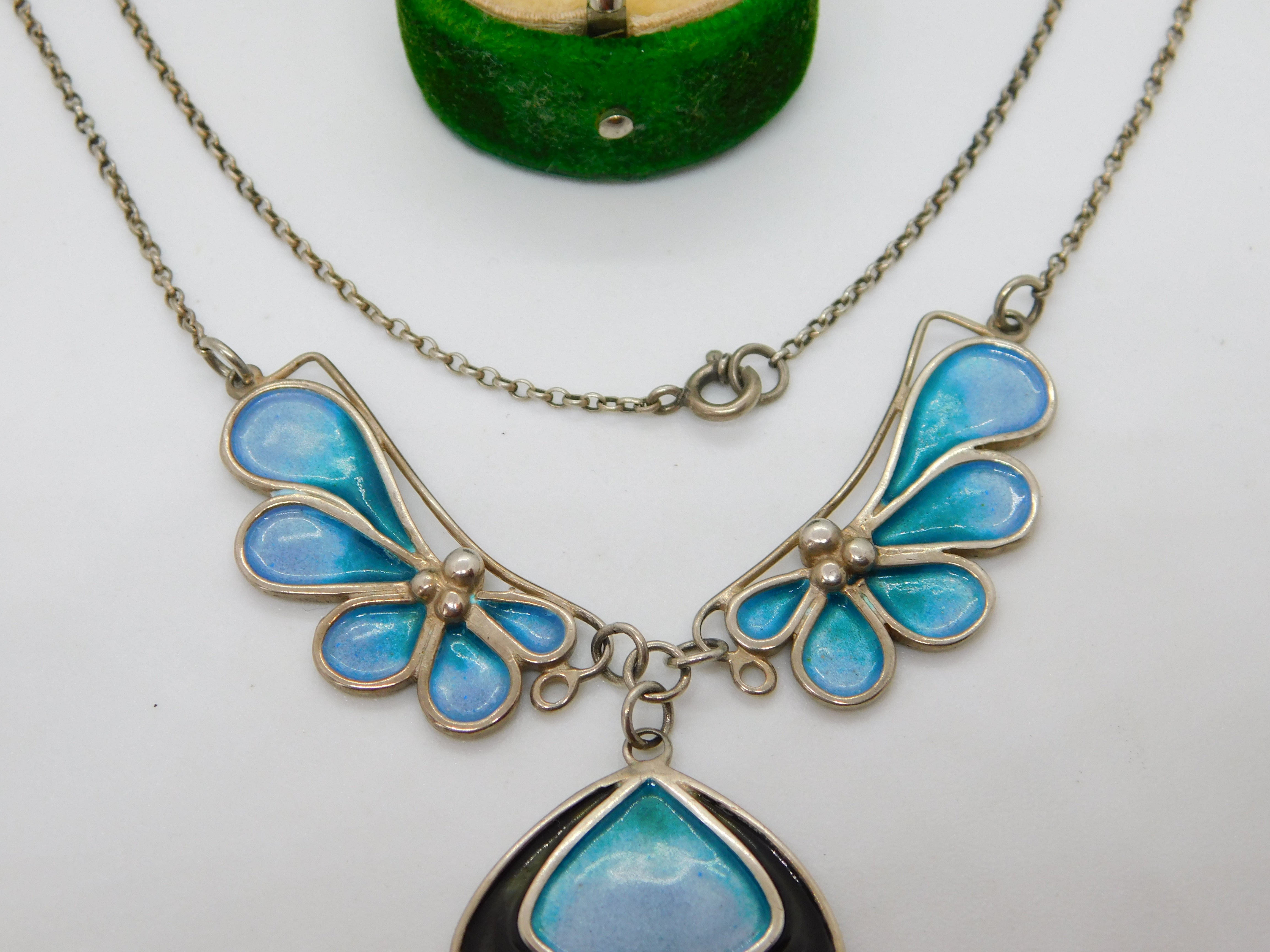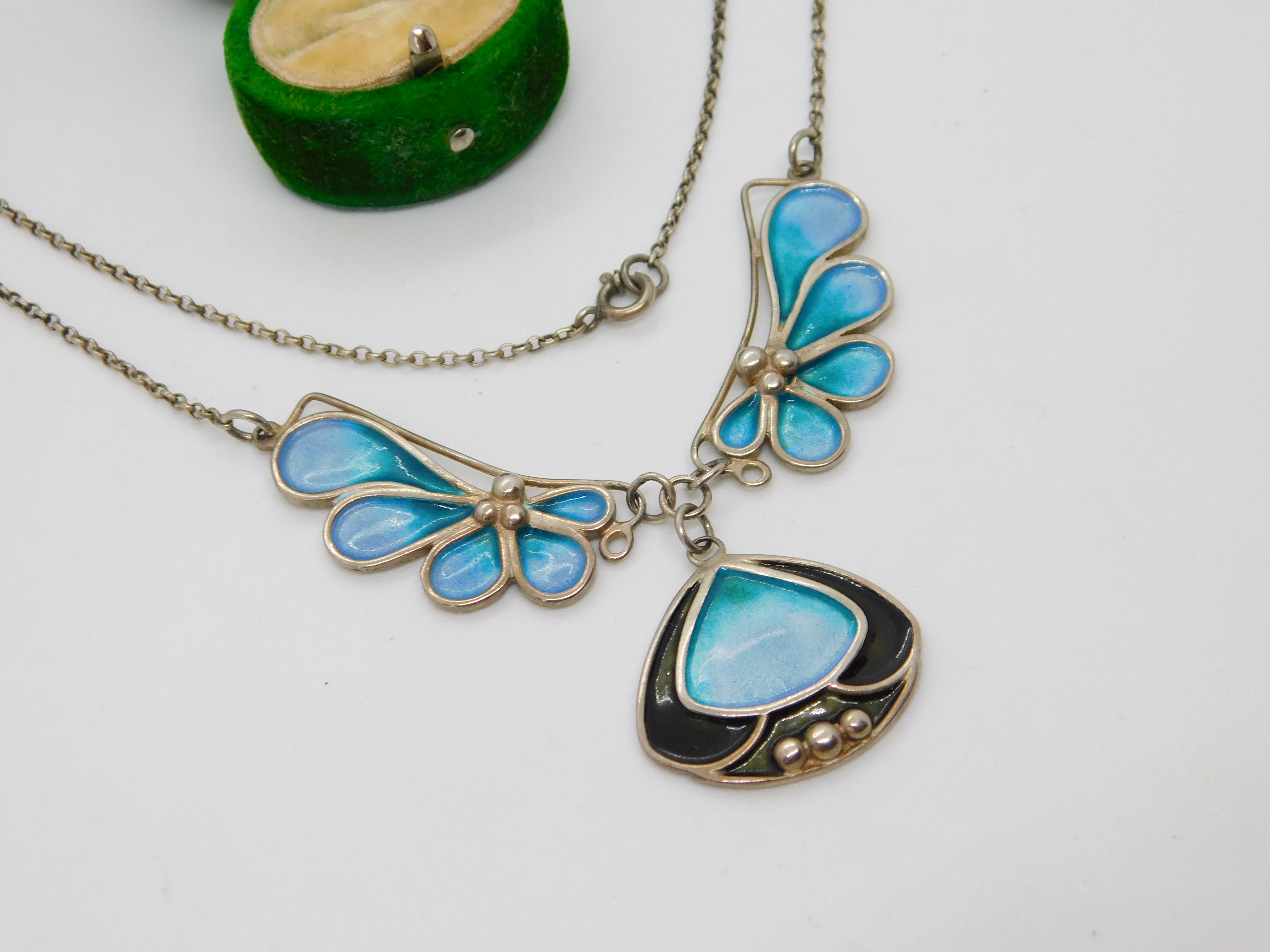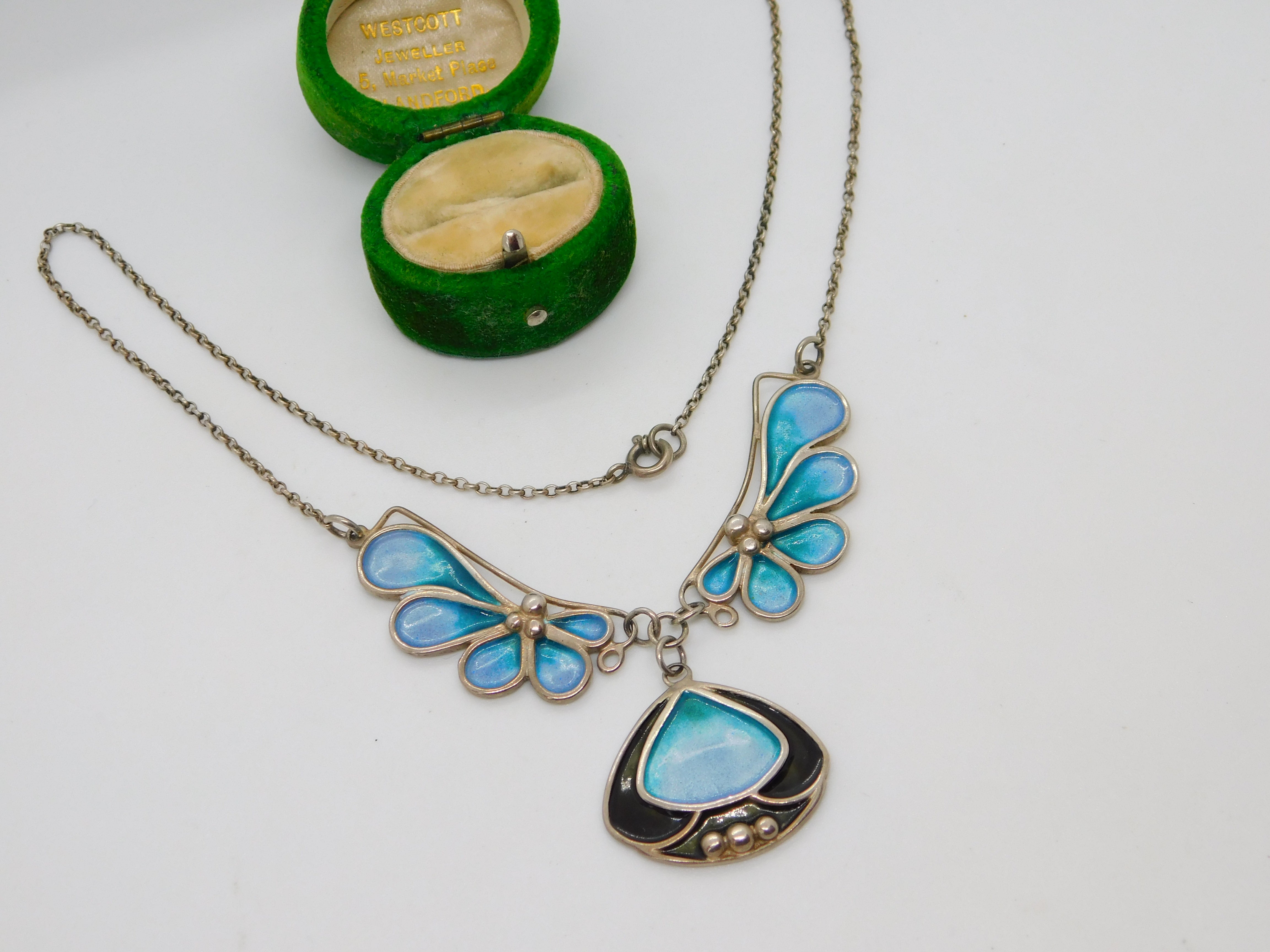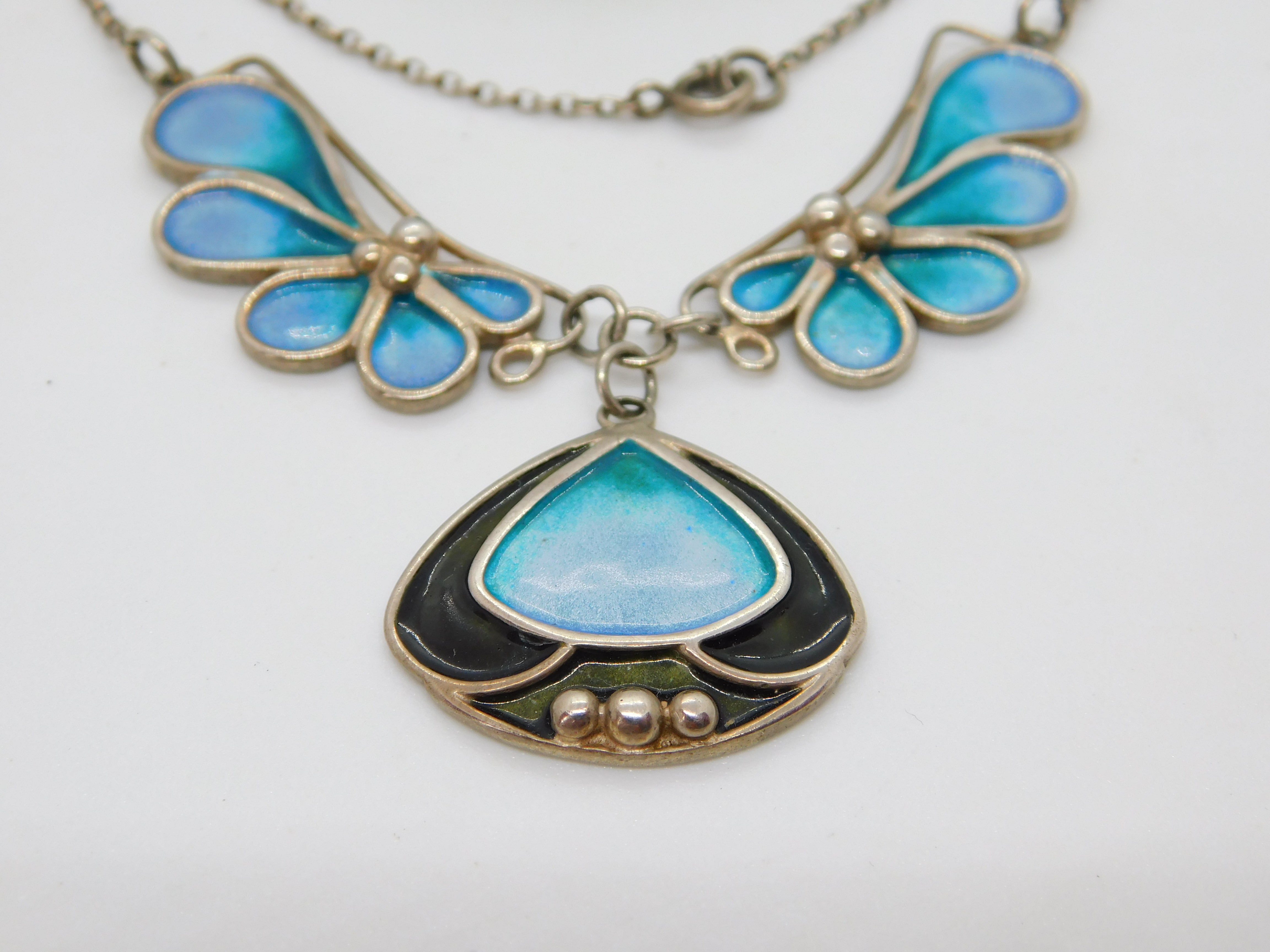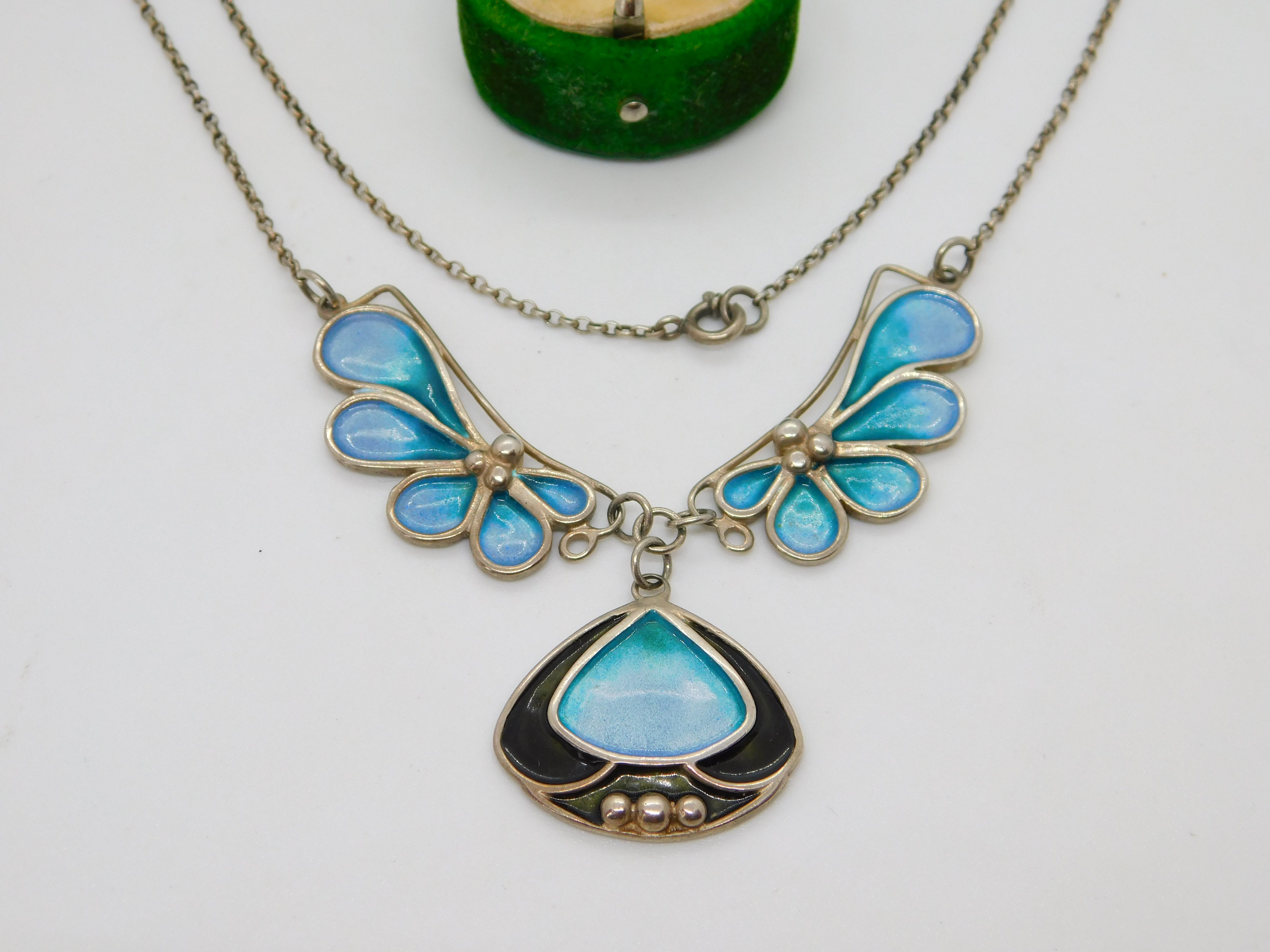 Pat Cheney Scottish Sterling Silver Art Nouveau Style Enamel Necklace Vintage