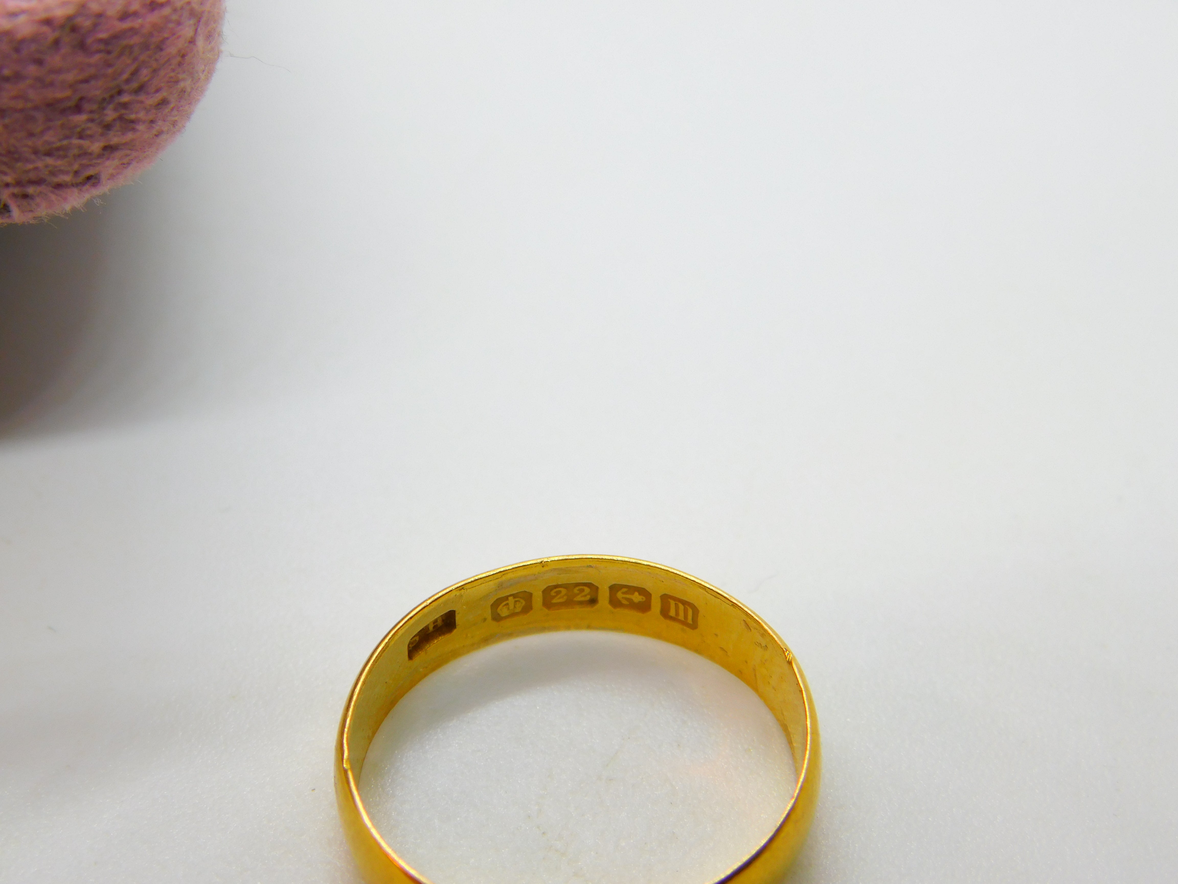Plain Wedding Band Ring English 22k Gold Antique 1911 Edwardian Birmingham