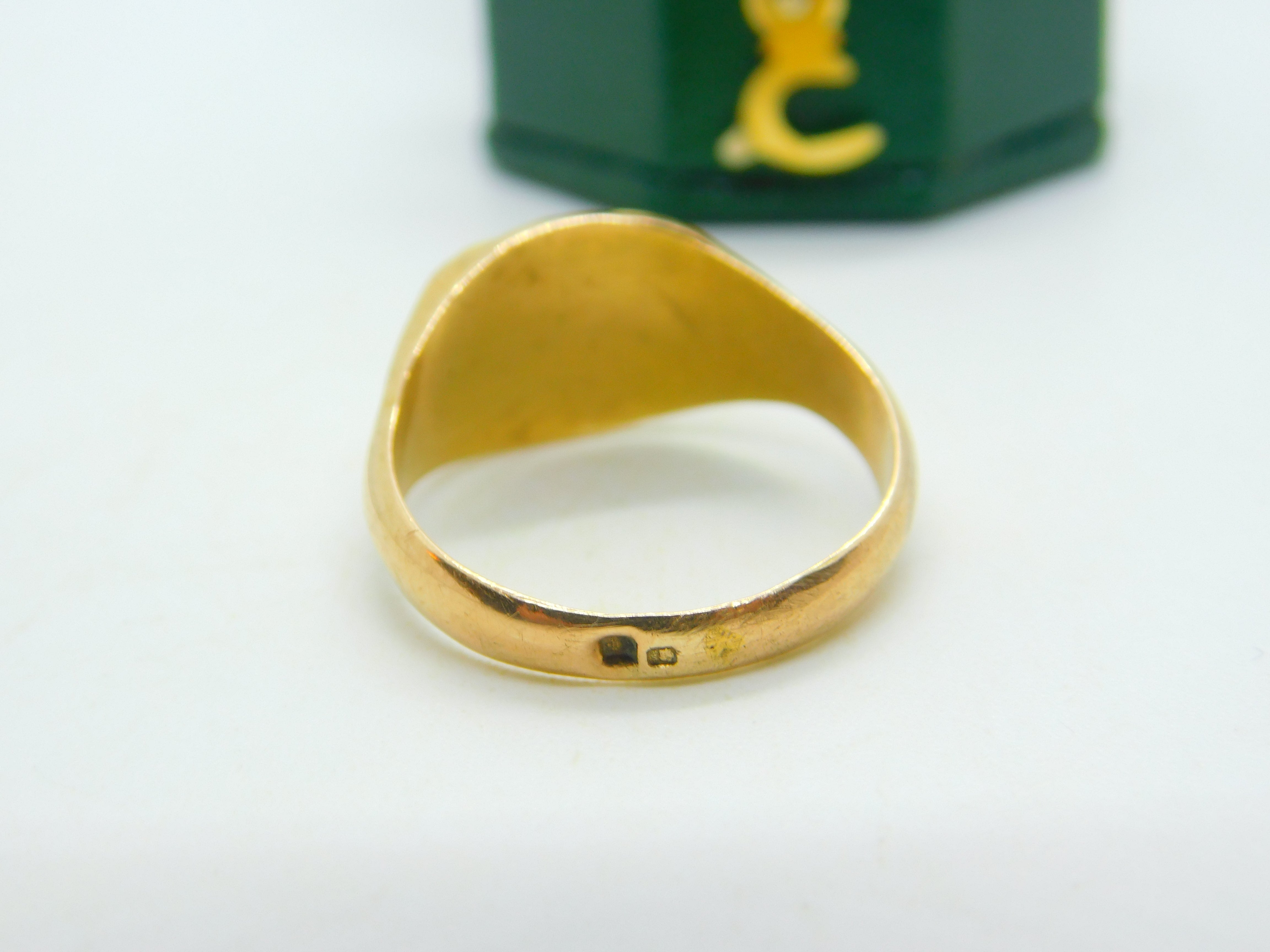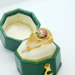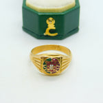 Portuguese 19ct Yellow Gold & Enamel Flag Signet Ring Antique c1930 Art Deco