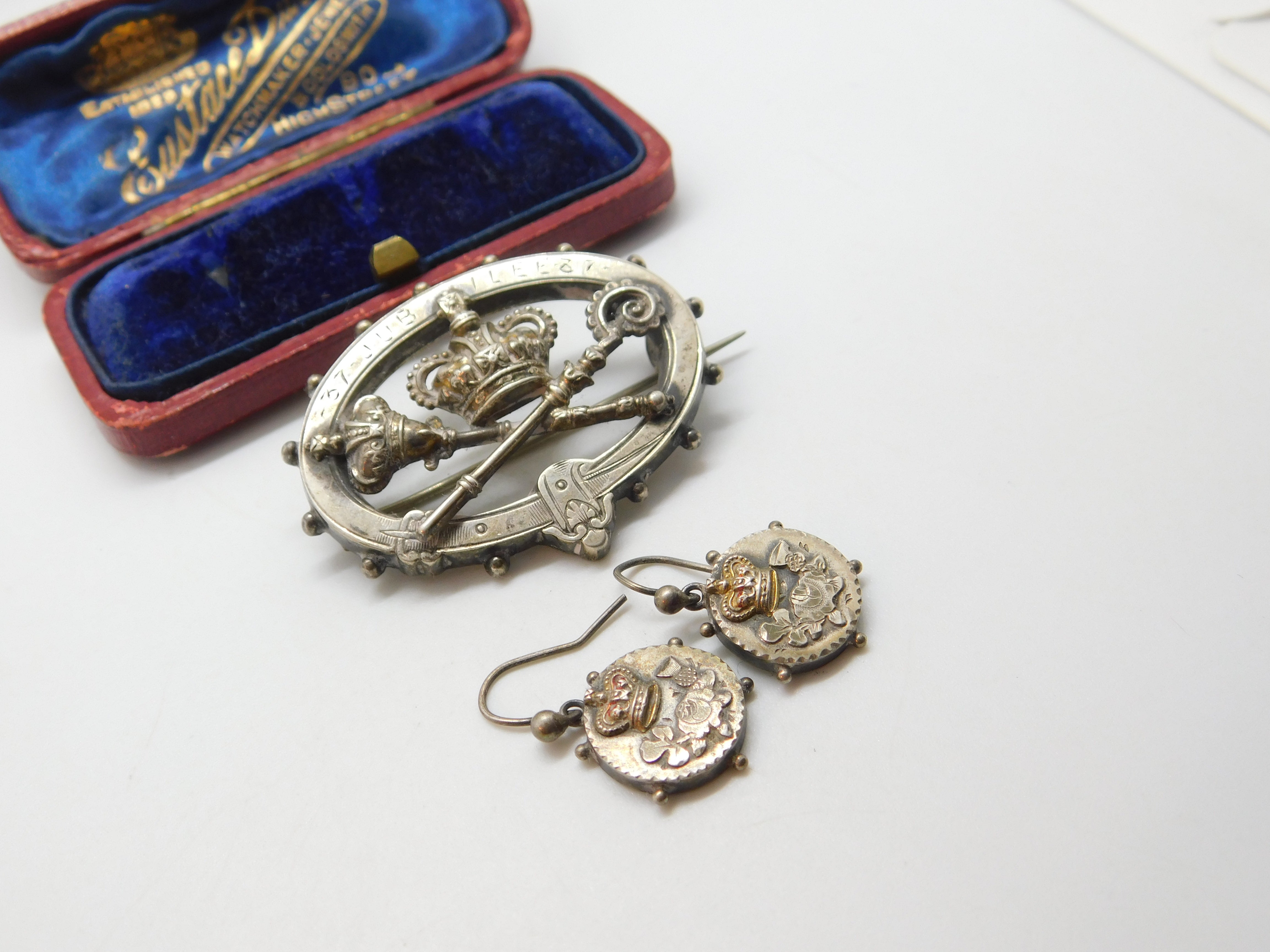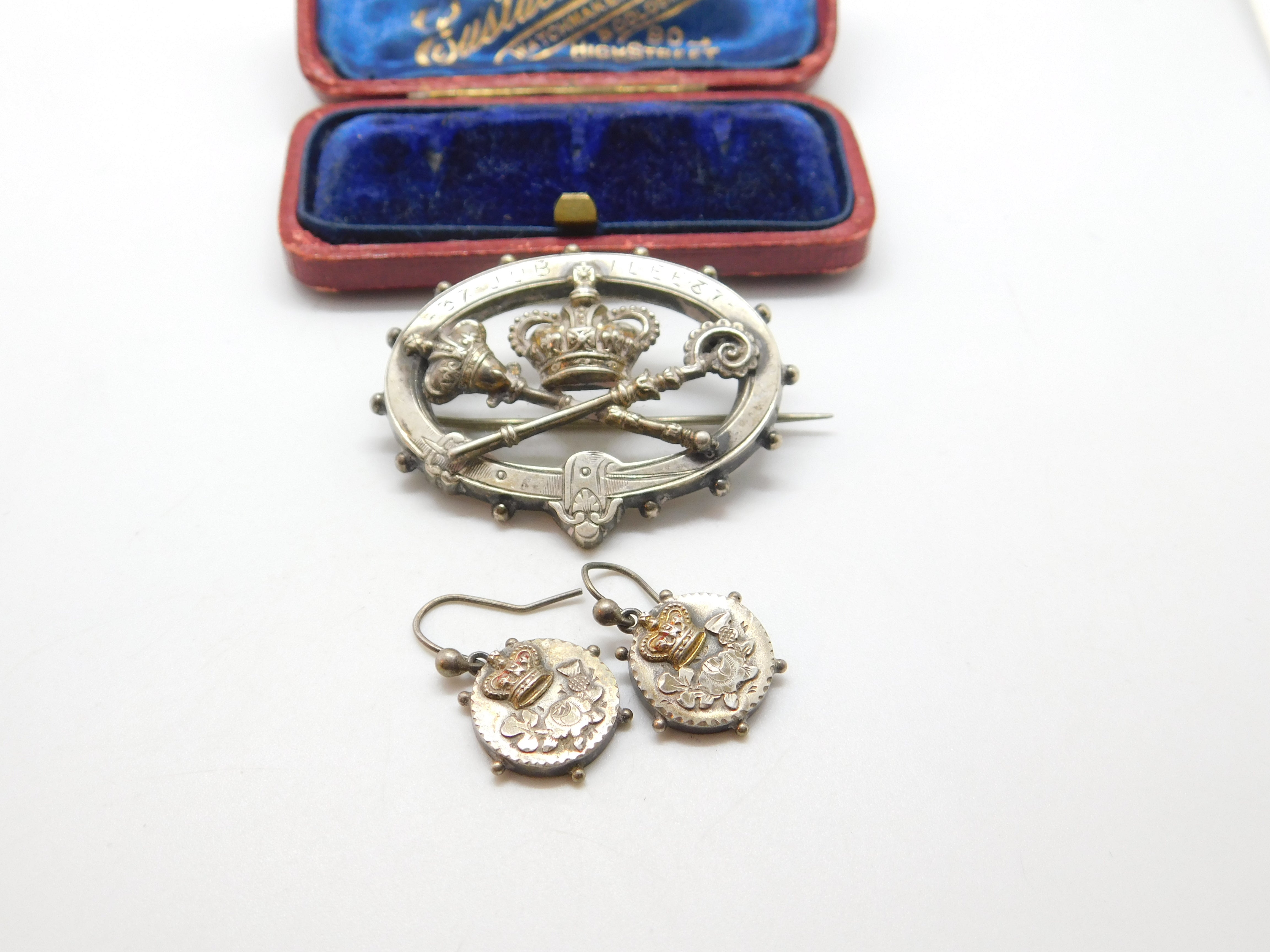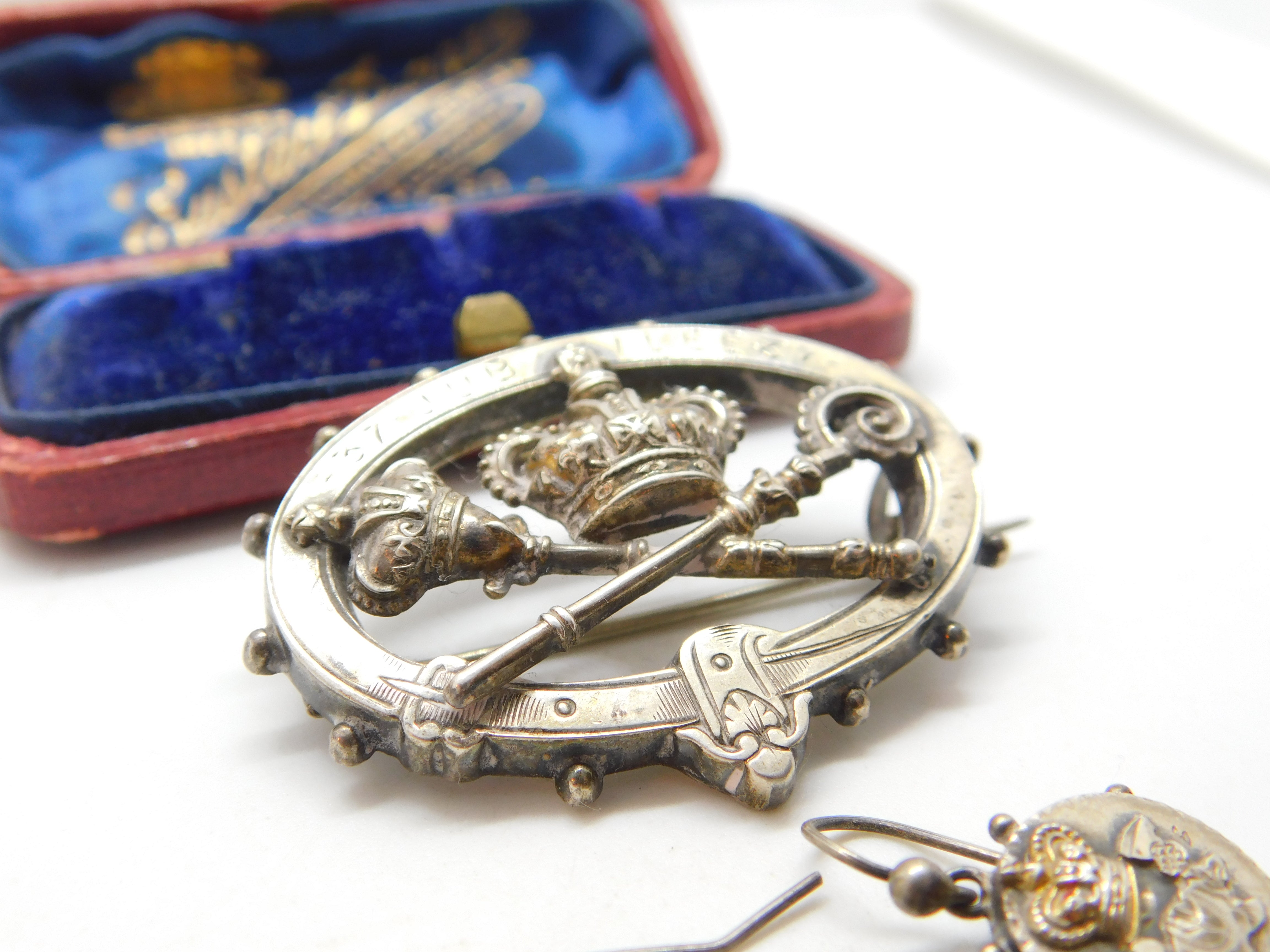 Queen Victoria Sterling Silver Golden Jubilee Brooch Earring Set Antique 1887