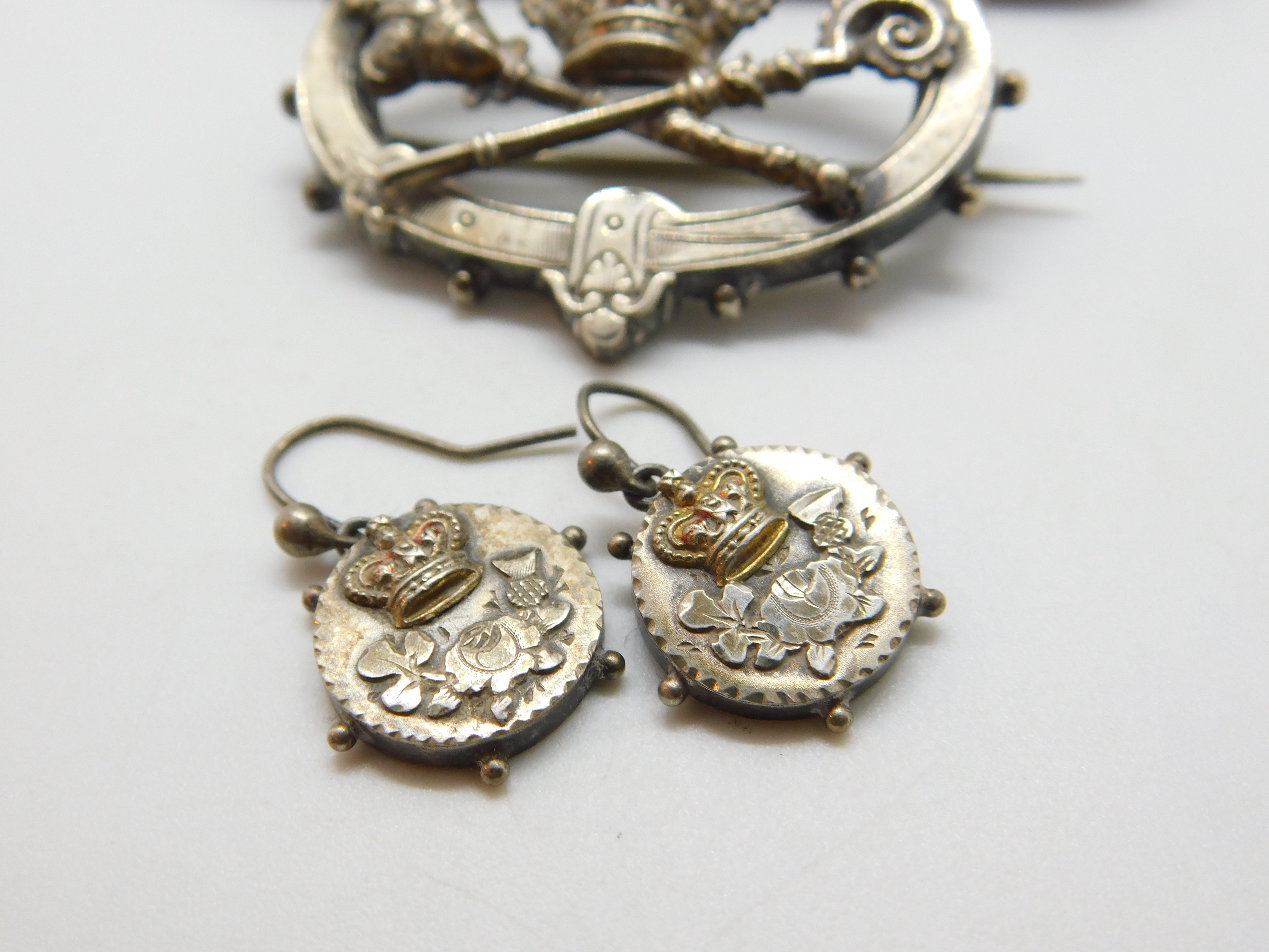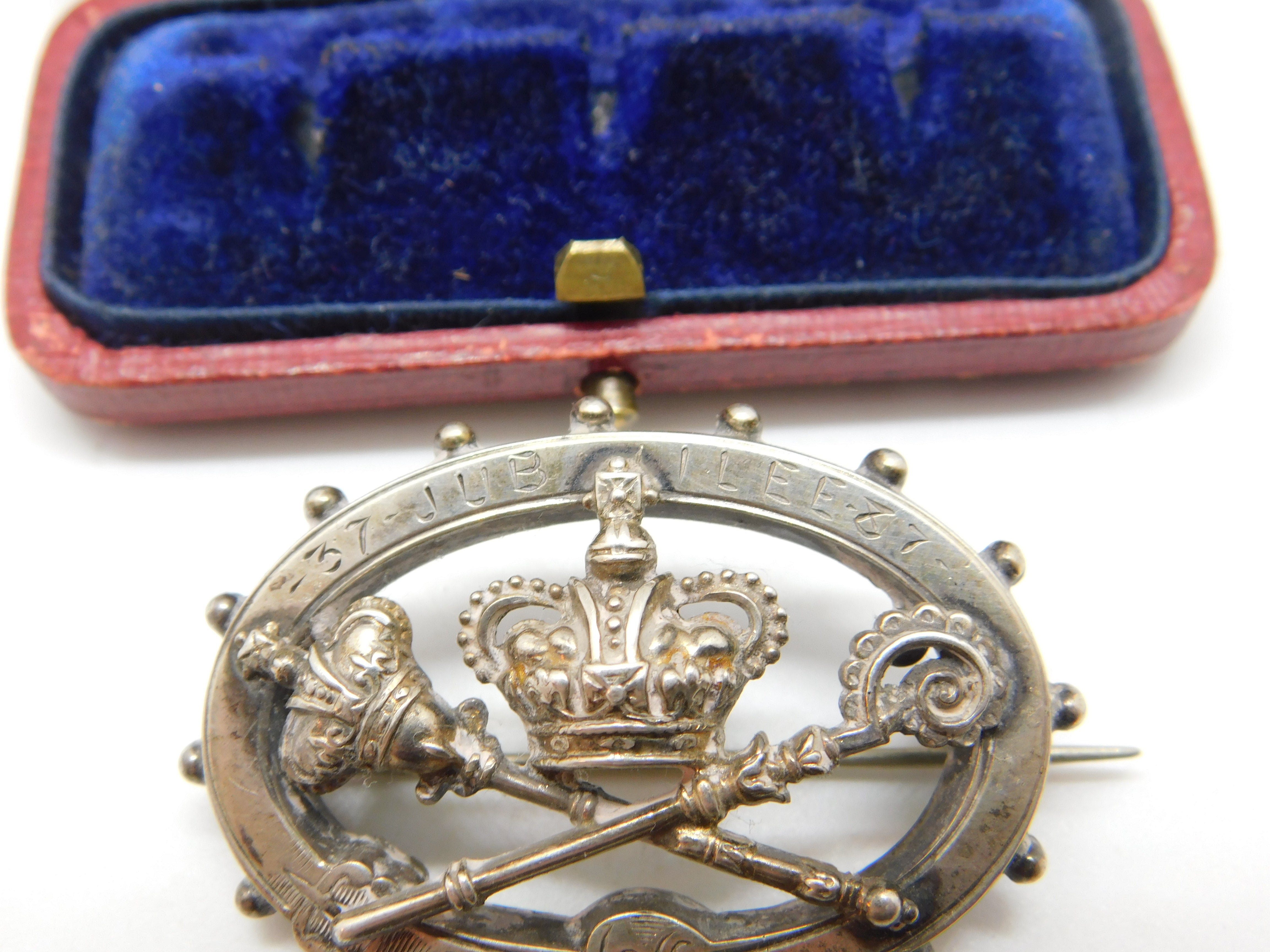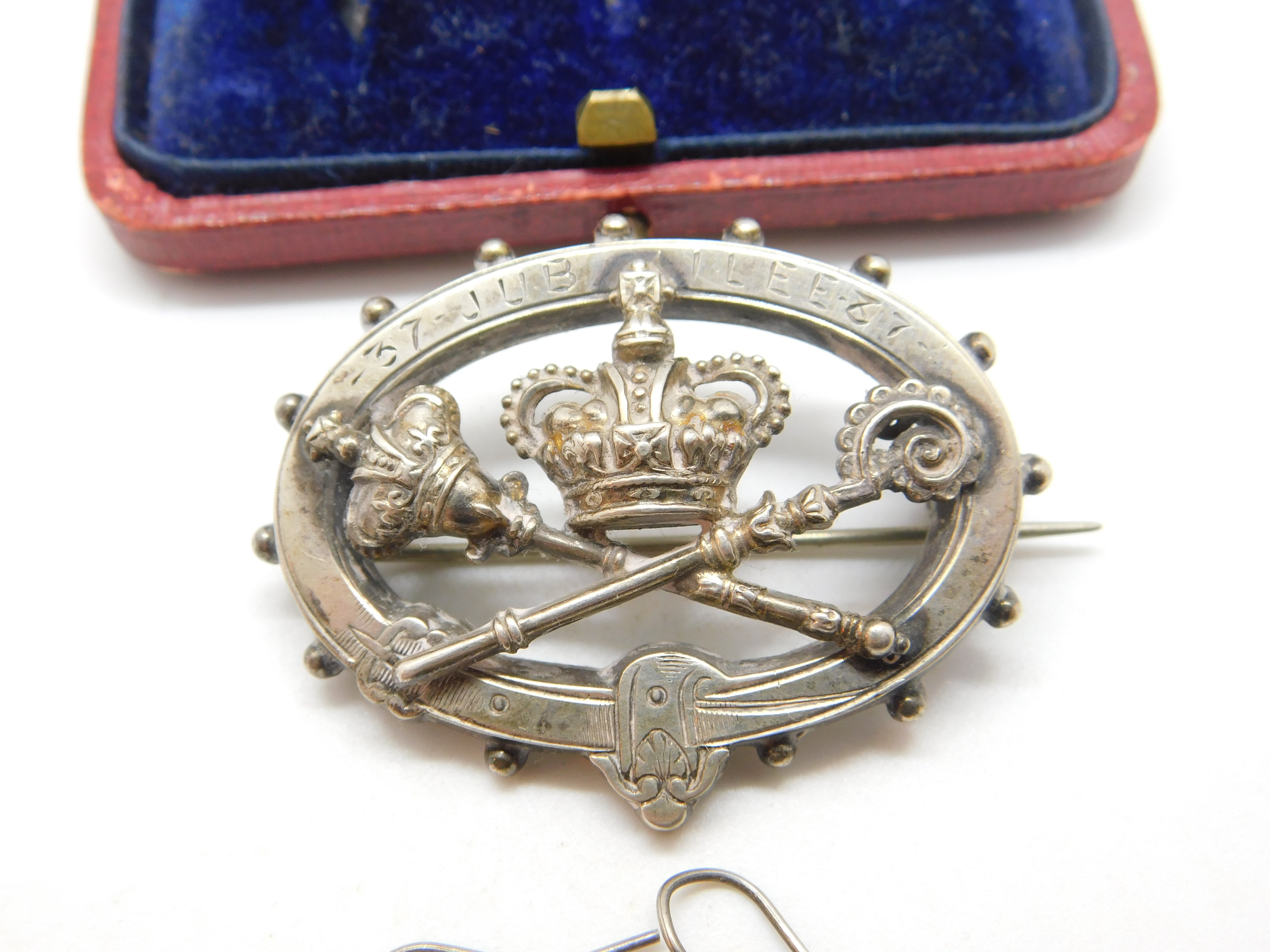 Queen Victoria Sterling Silver Golden Jubilee Brooch Earring Set Antique 1887