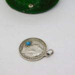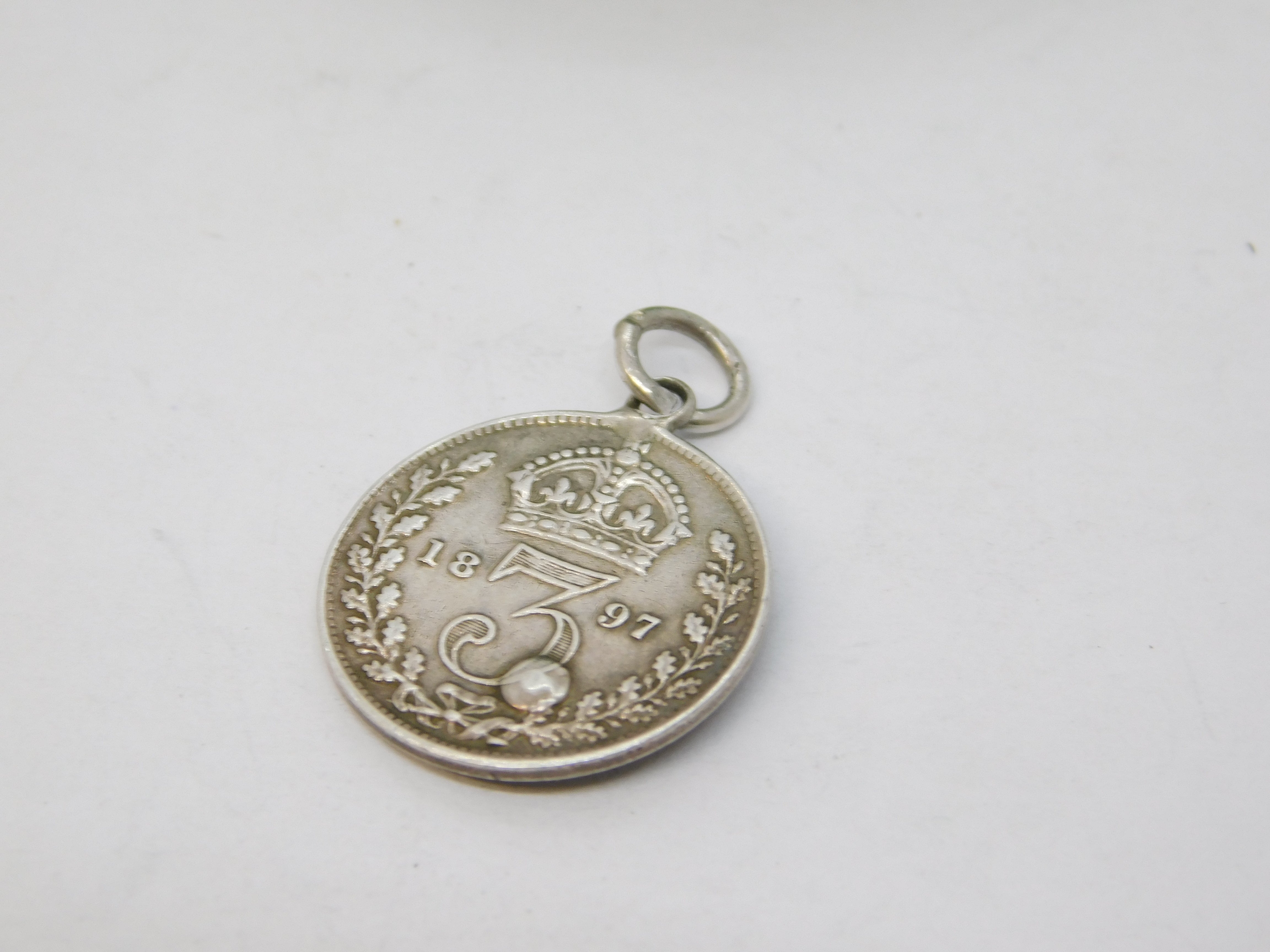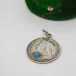 Queen Victoria Sterling Silver Turquoise Threepence Coin Charm Antique 1897