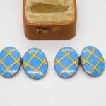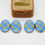 Ralph Lauren Sterling Silver Blue-Yellow Enamel Tweed Cufflinks 2003 London