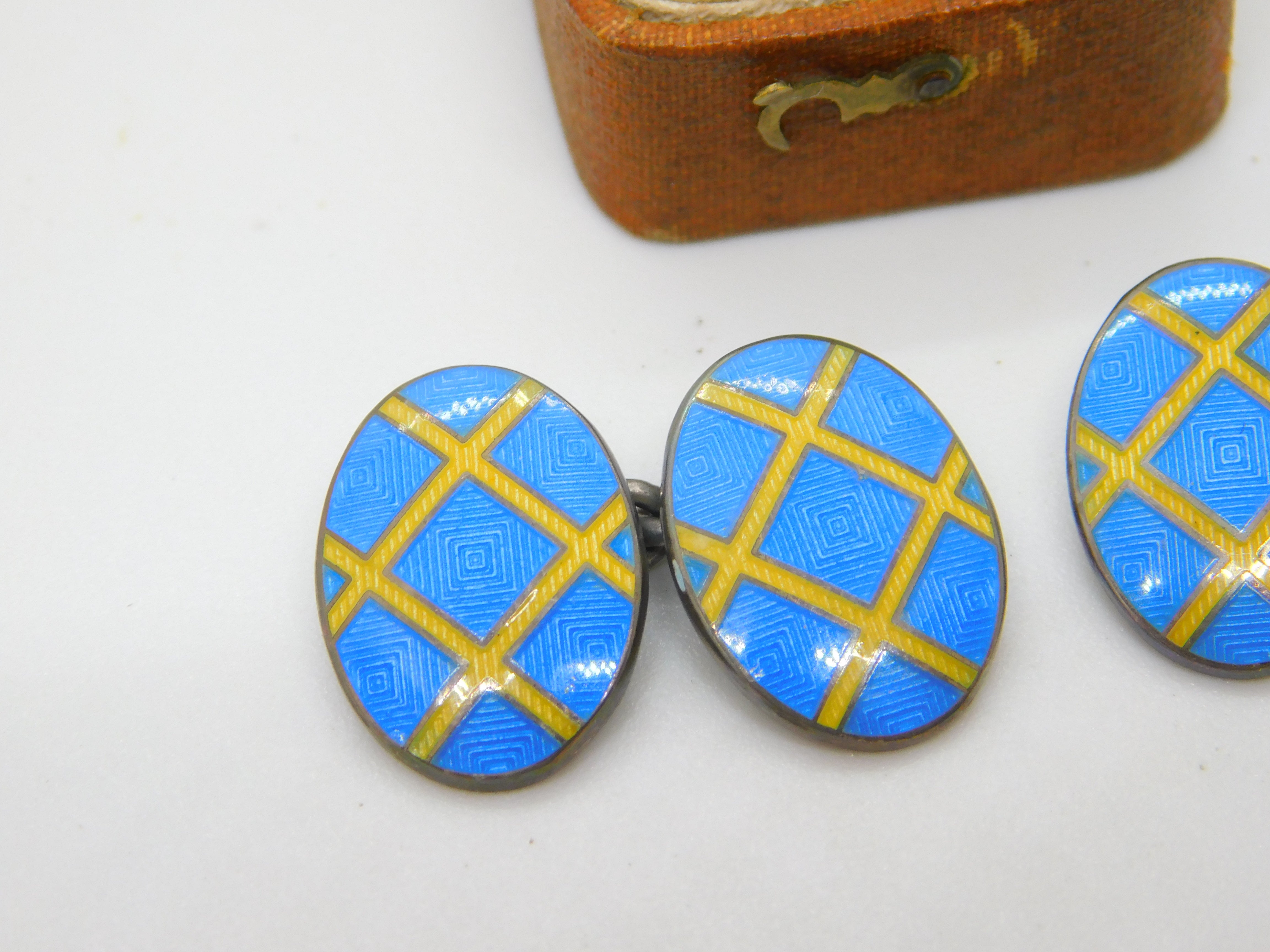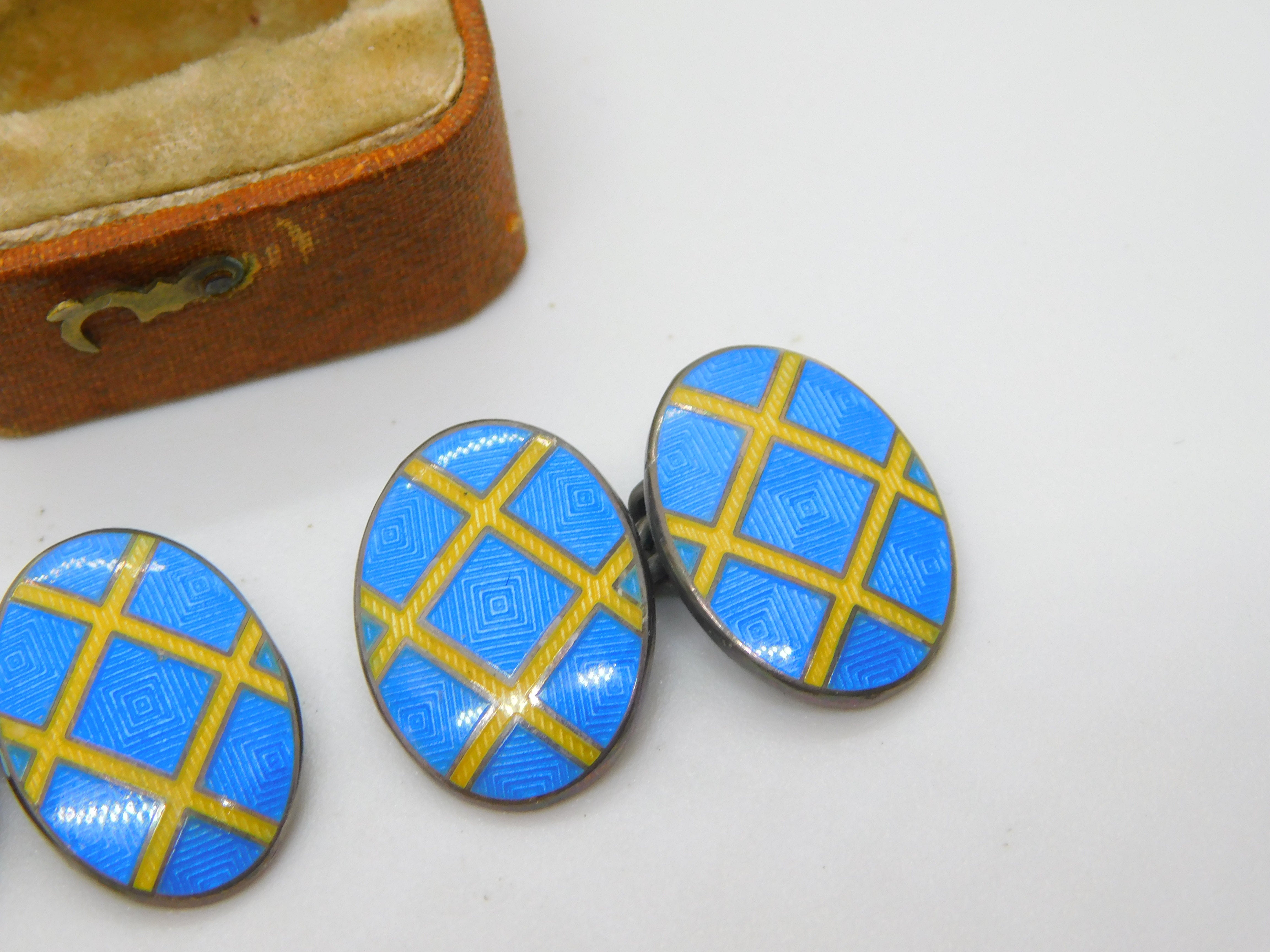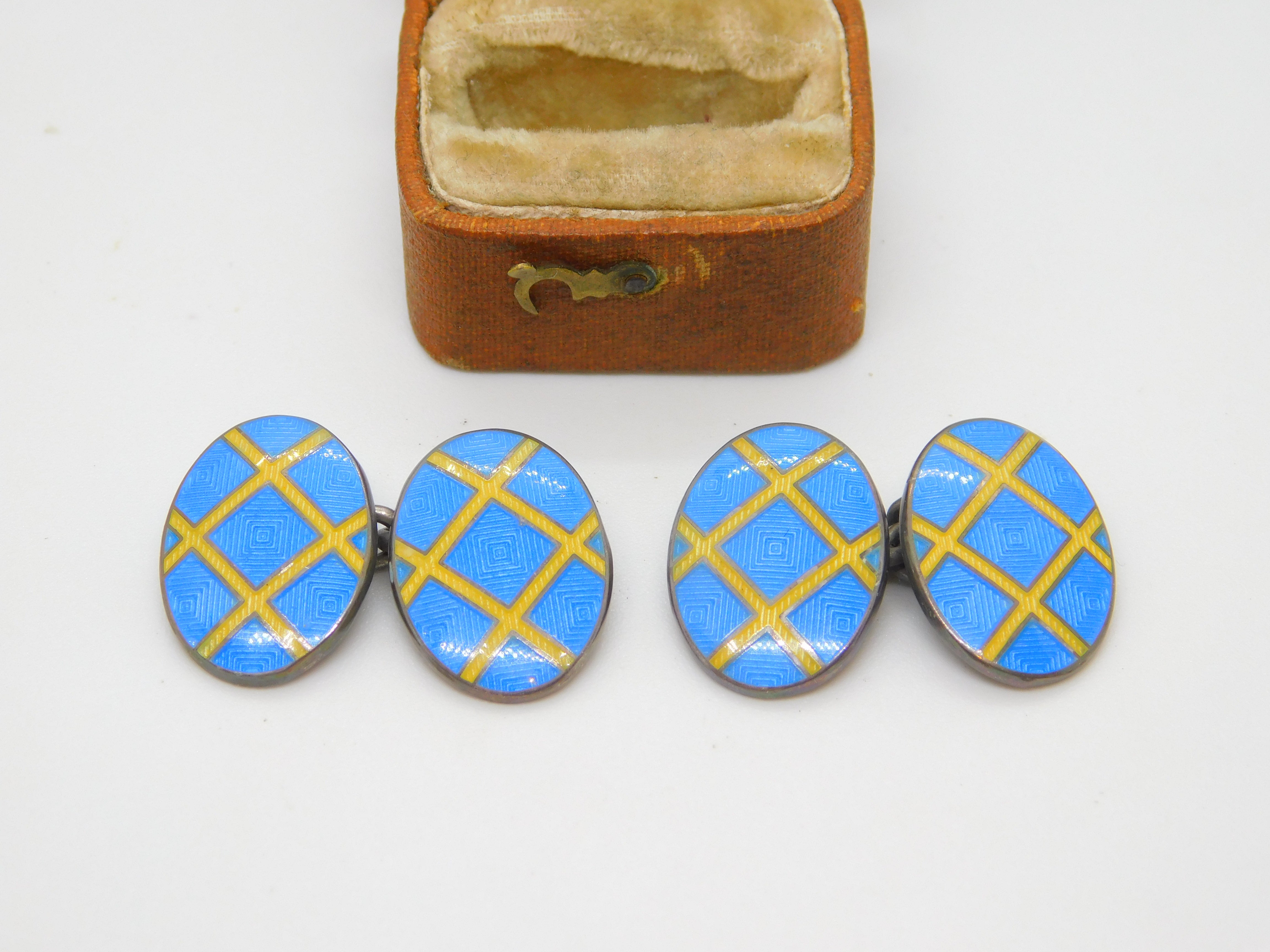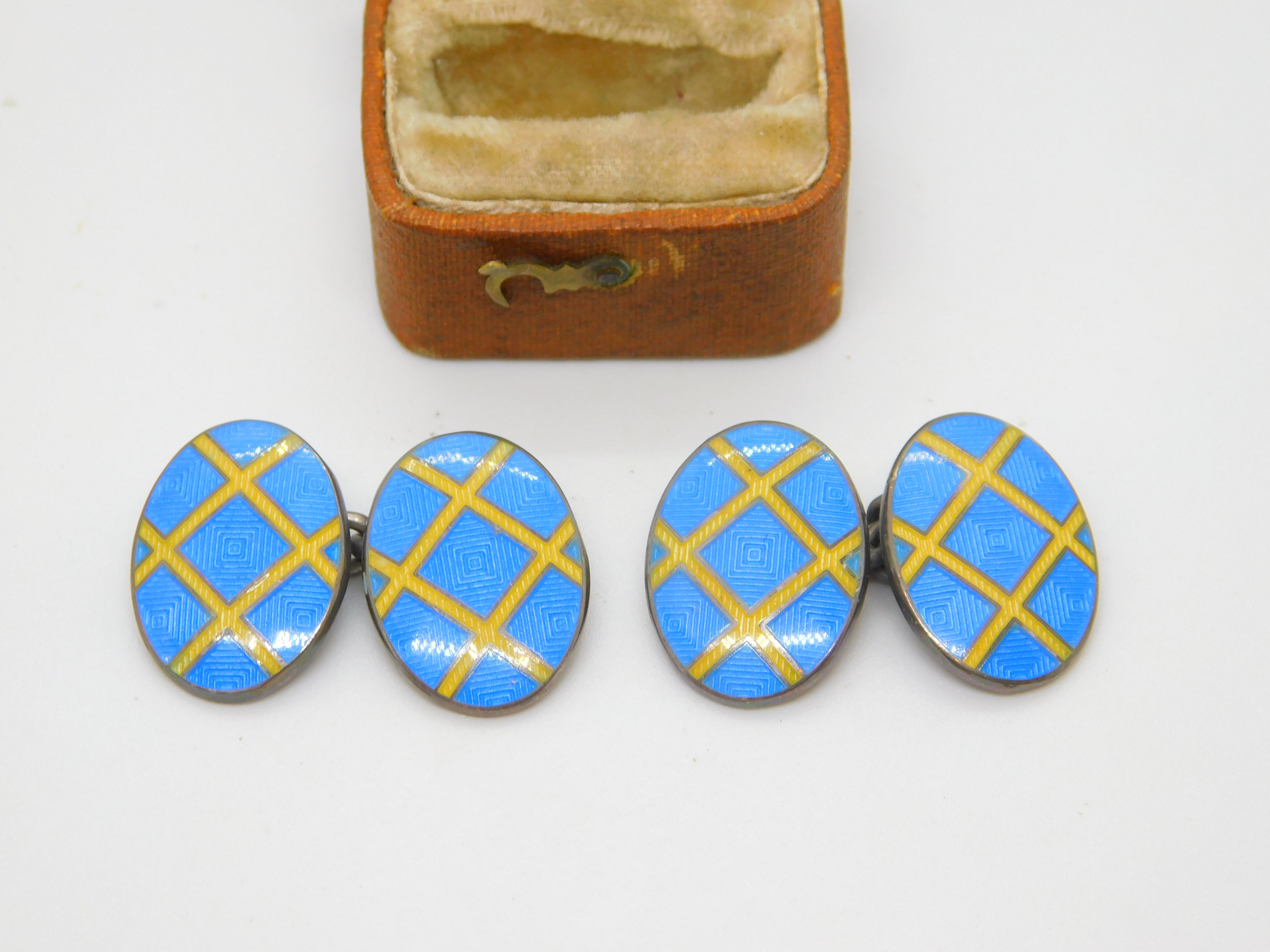 Details: A fantastic and wonderfully designed vintage sterling silver & blue-yellow guilloche enamel tweed pattern gents cufflinks hallmarked London 2002 by Ralph Lauren. This is a wonderful item that would make a perfect gift or addition to any collection. The BOX pictured is for PRESENTATION ONLY and is NOT included in the listings but used to frame the pictures unless specifically stated otherwise.