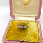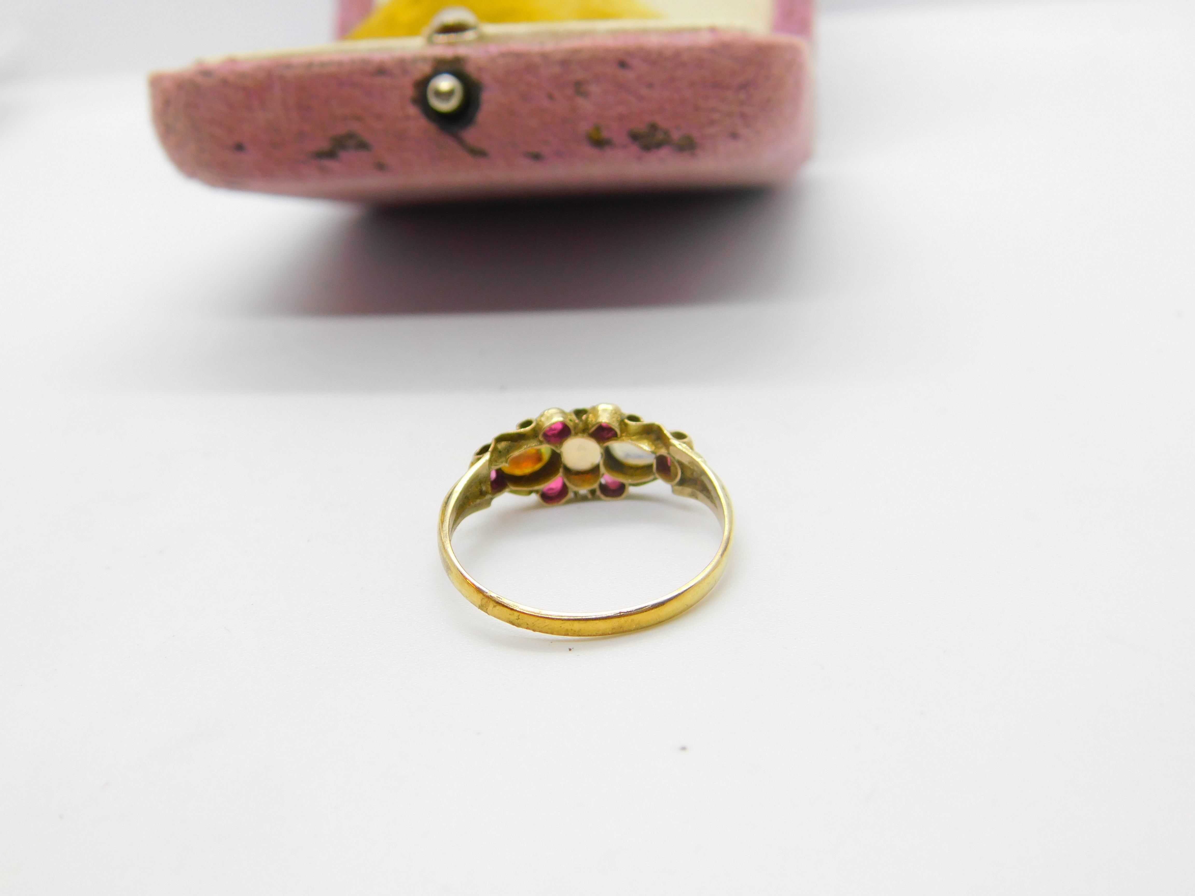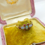 Regency 18ct Yellow Gold, Water Opal & Ruby Floral Band Ring Antique c1840