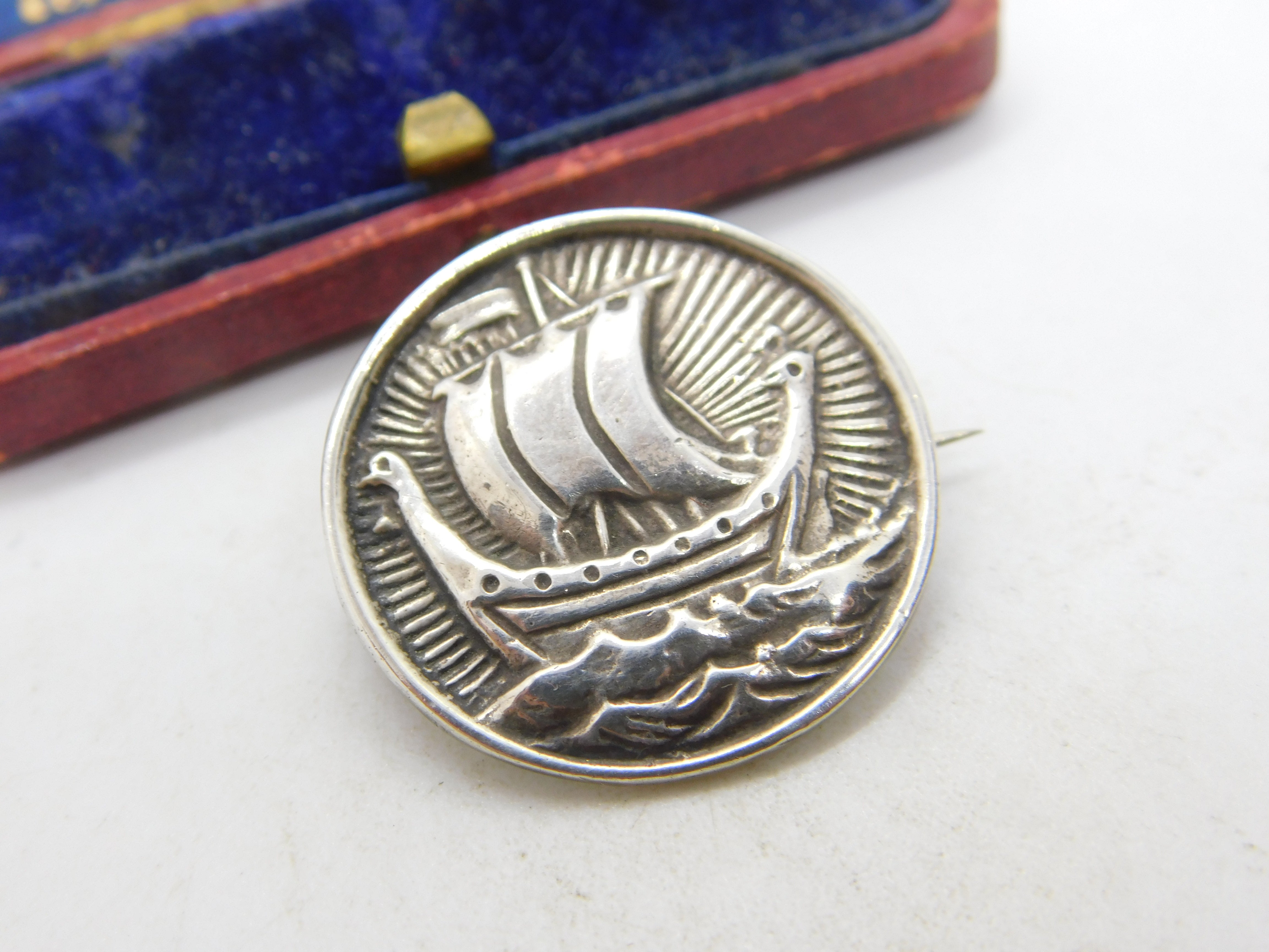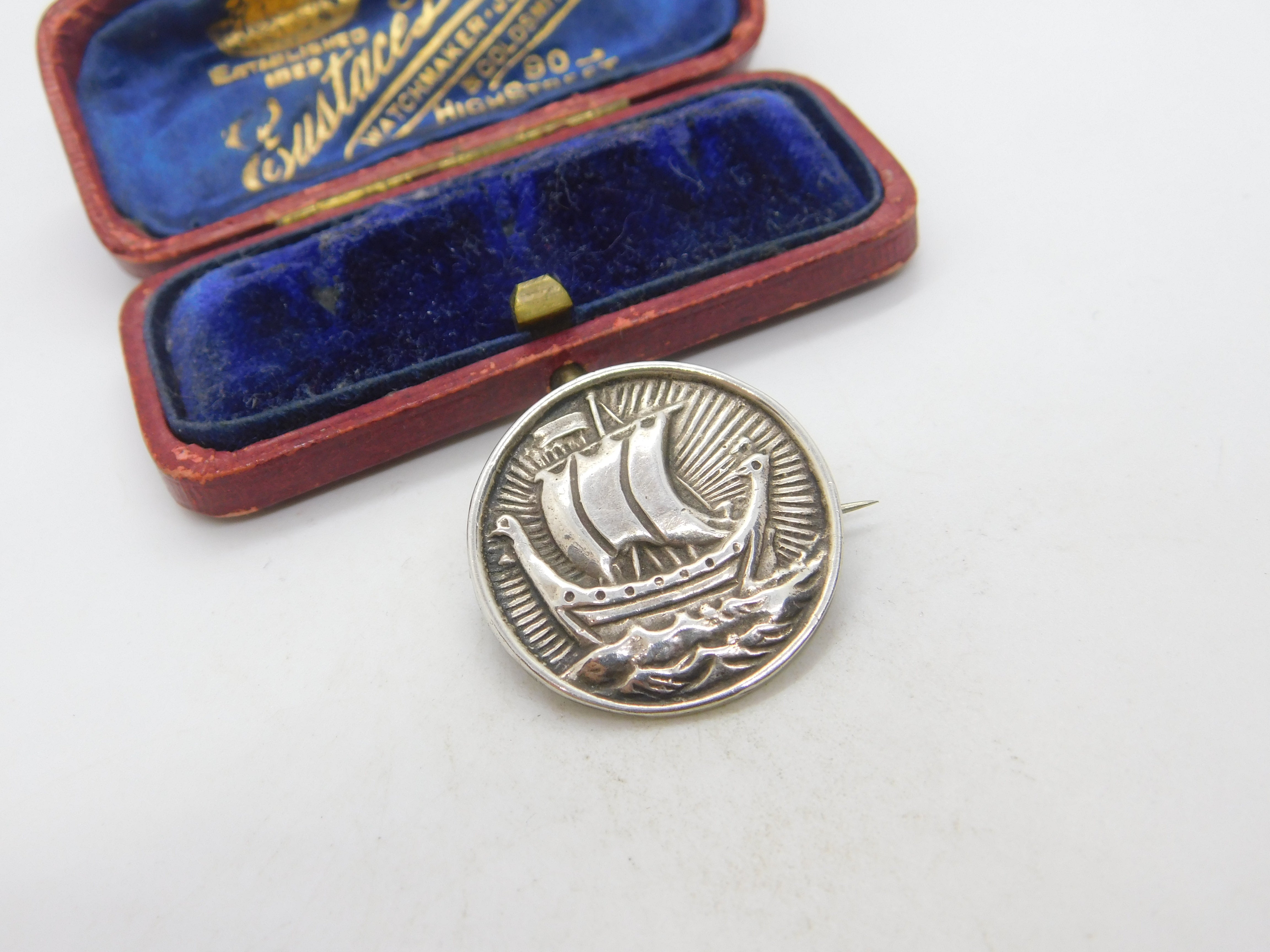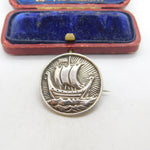 Robert Allison Scottish Sterling Silver Viking Ship Brooch 1952 Glasgow Vintage