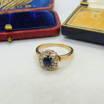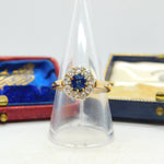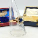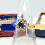 Sapphire and 2ct Diamond 14ct Yellow Gold Cluster Ring Vintage Art Deco c1920