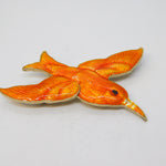 Scandinavian Sterling Silver Orange Enamel Bird Brooch Pin Antique c1920
