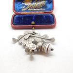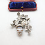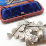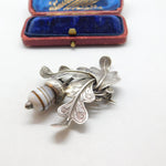 Scottish Victorian Sterling Silver Oak Leaf & Banded Agate Acorn Brooch c1860
