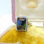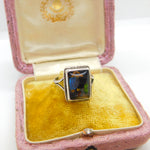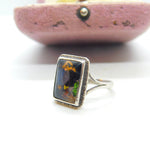 Sterling Silver & Butterfly Wing Bird Scene Dress Ring Antique c1920 Art Deco